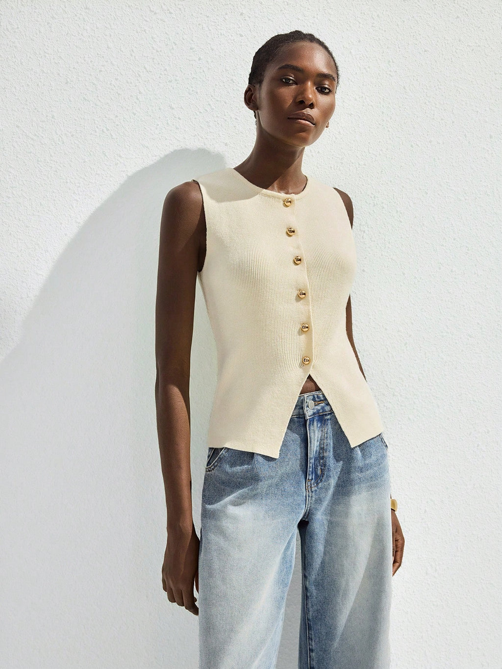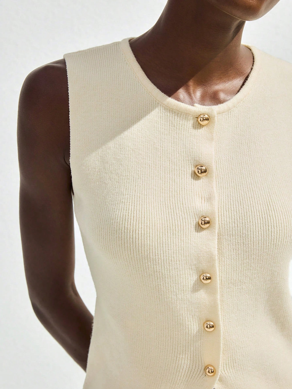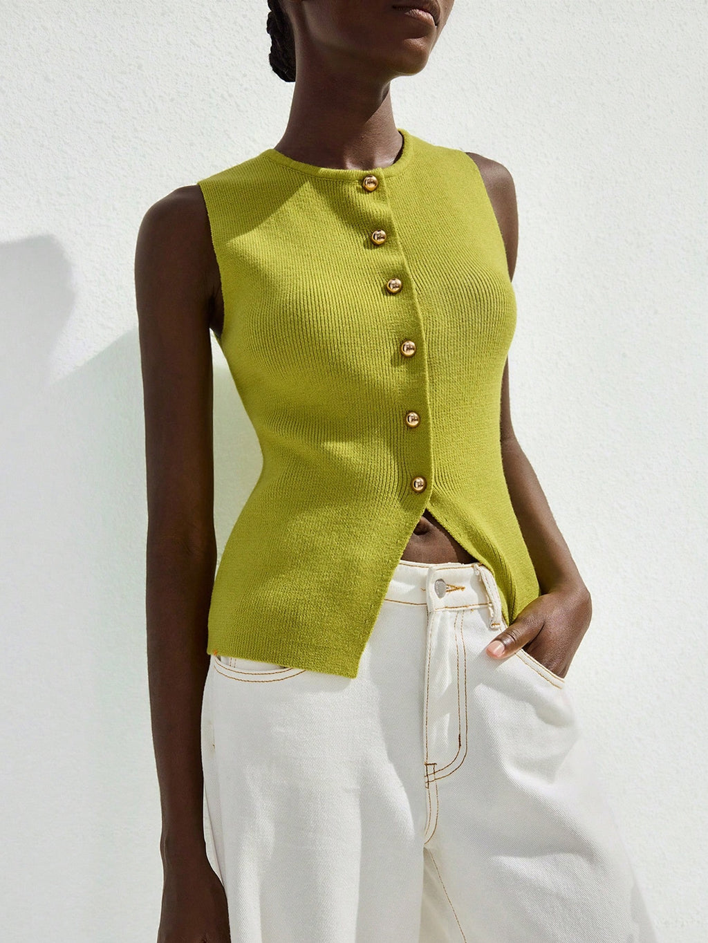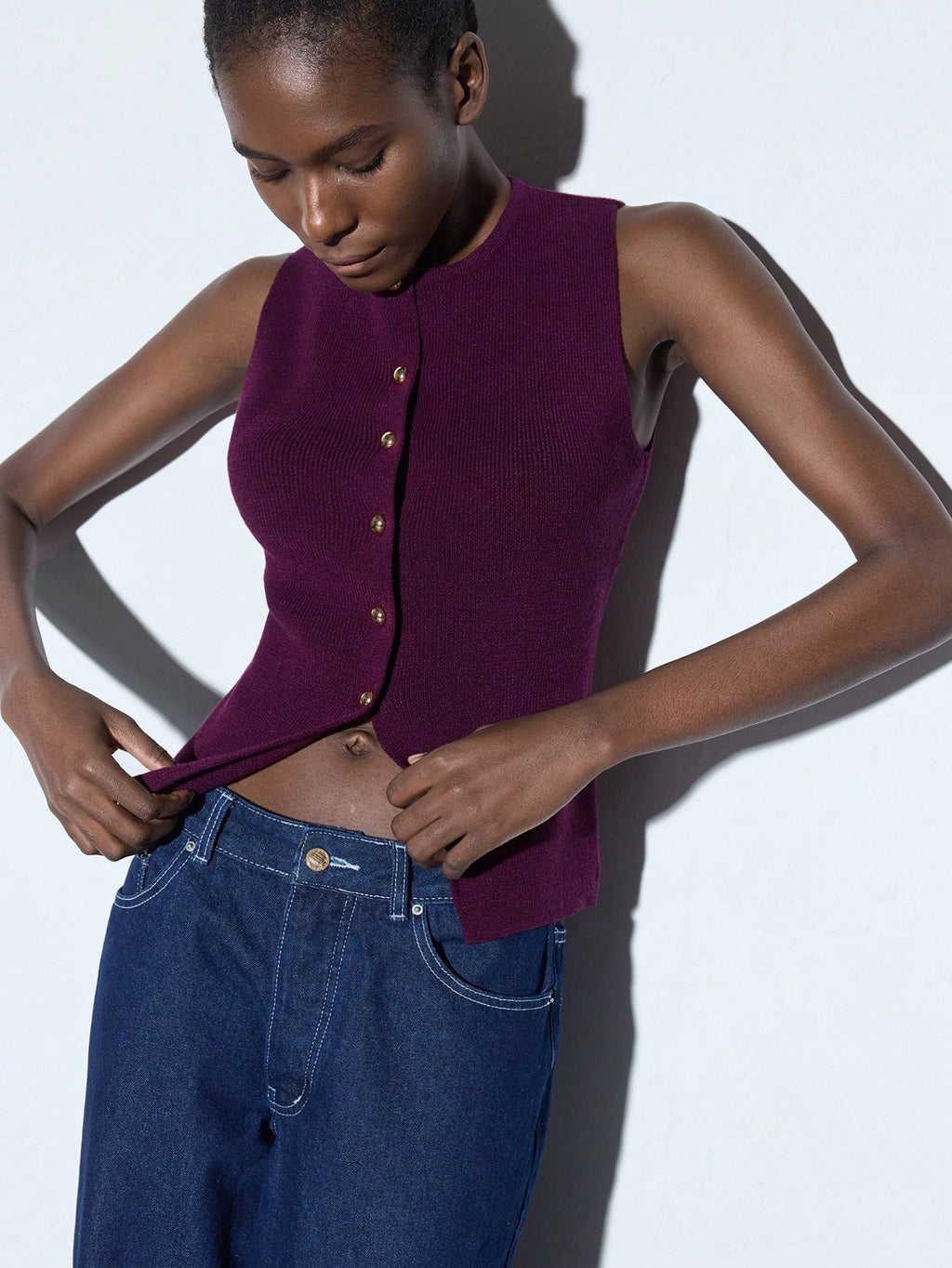 MiuVogue Women's Casual Solid Color Front Button Sleeveless Knit Top, Summer Women Summer Clothing