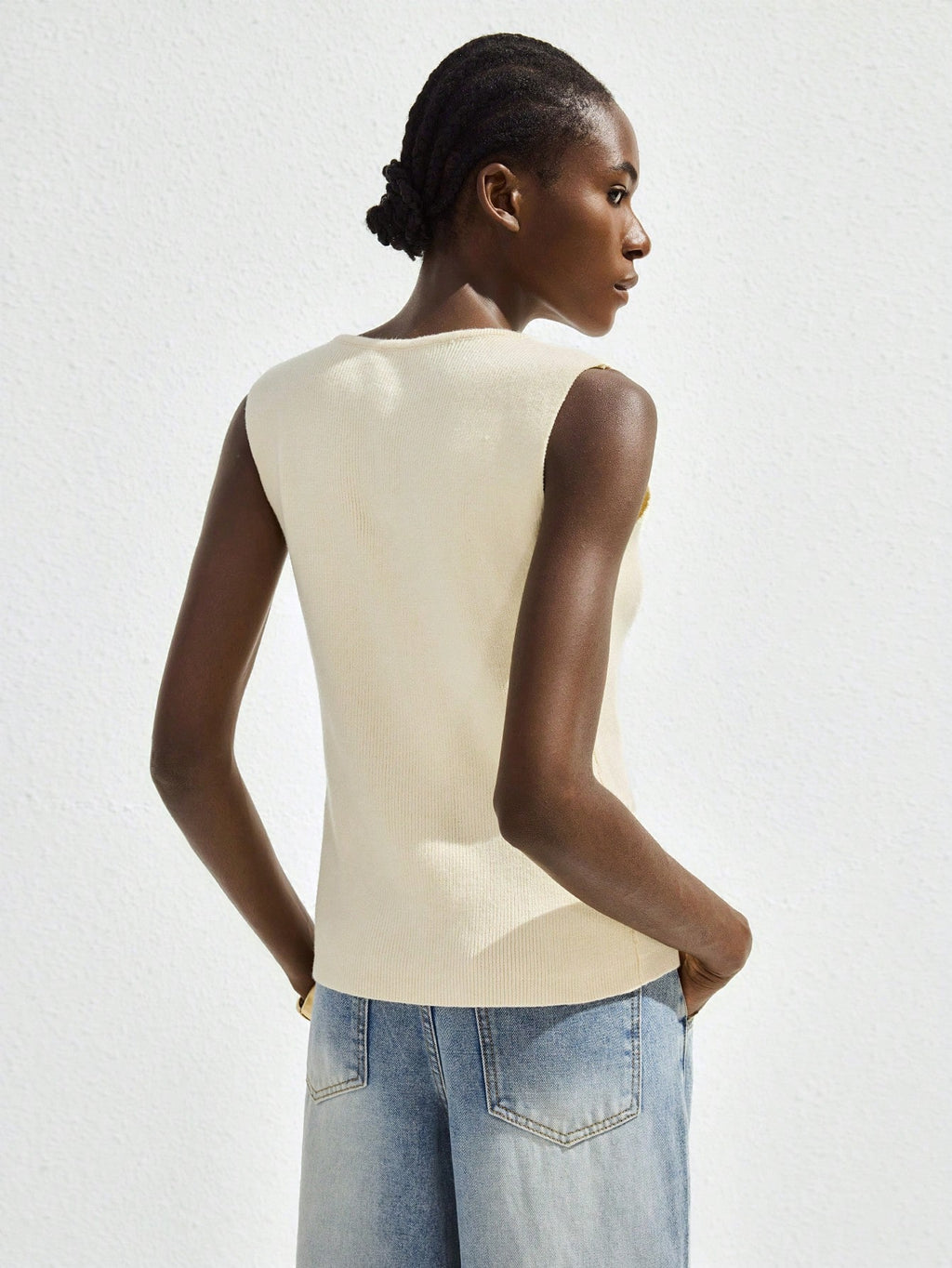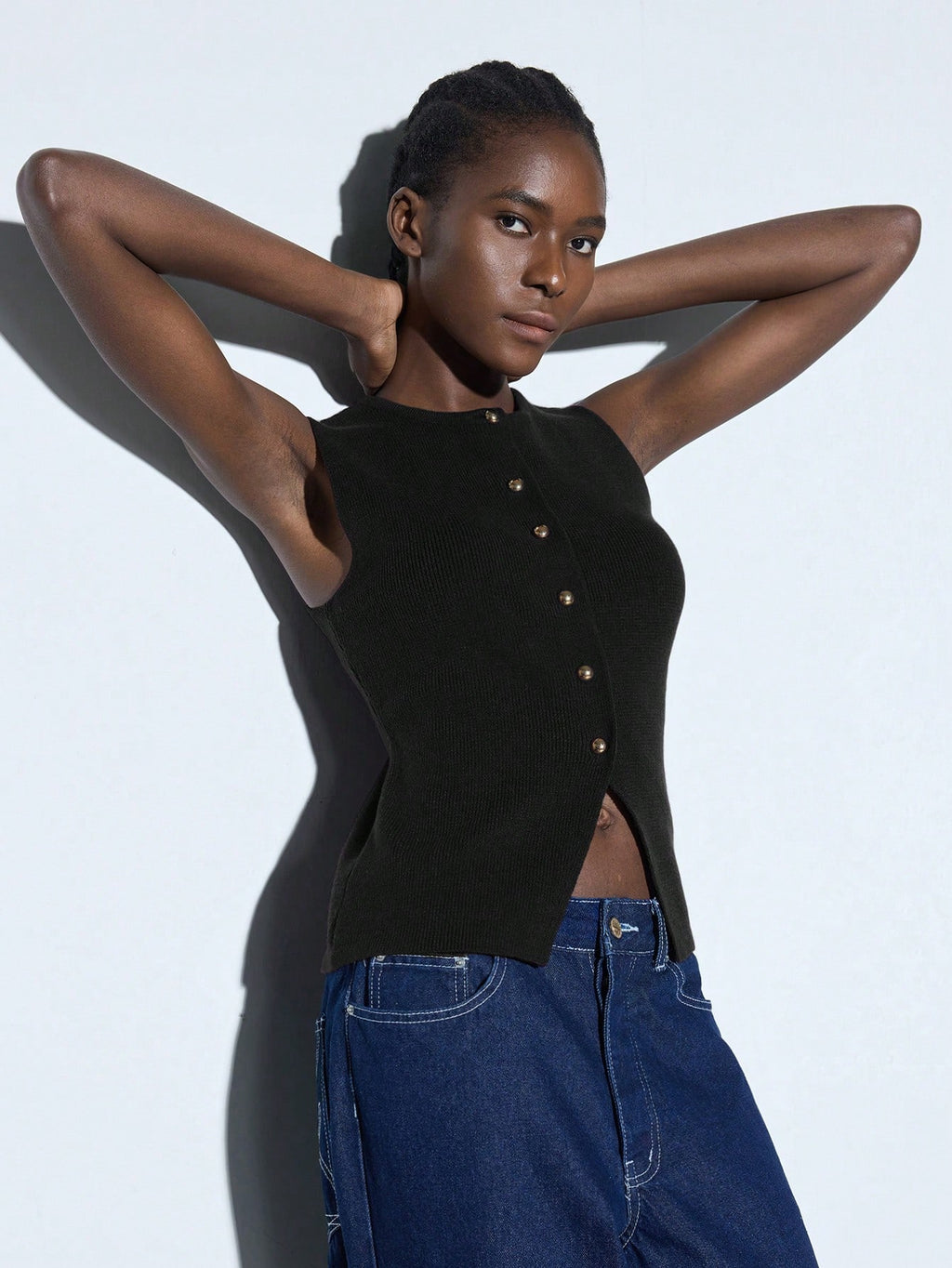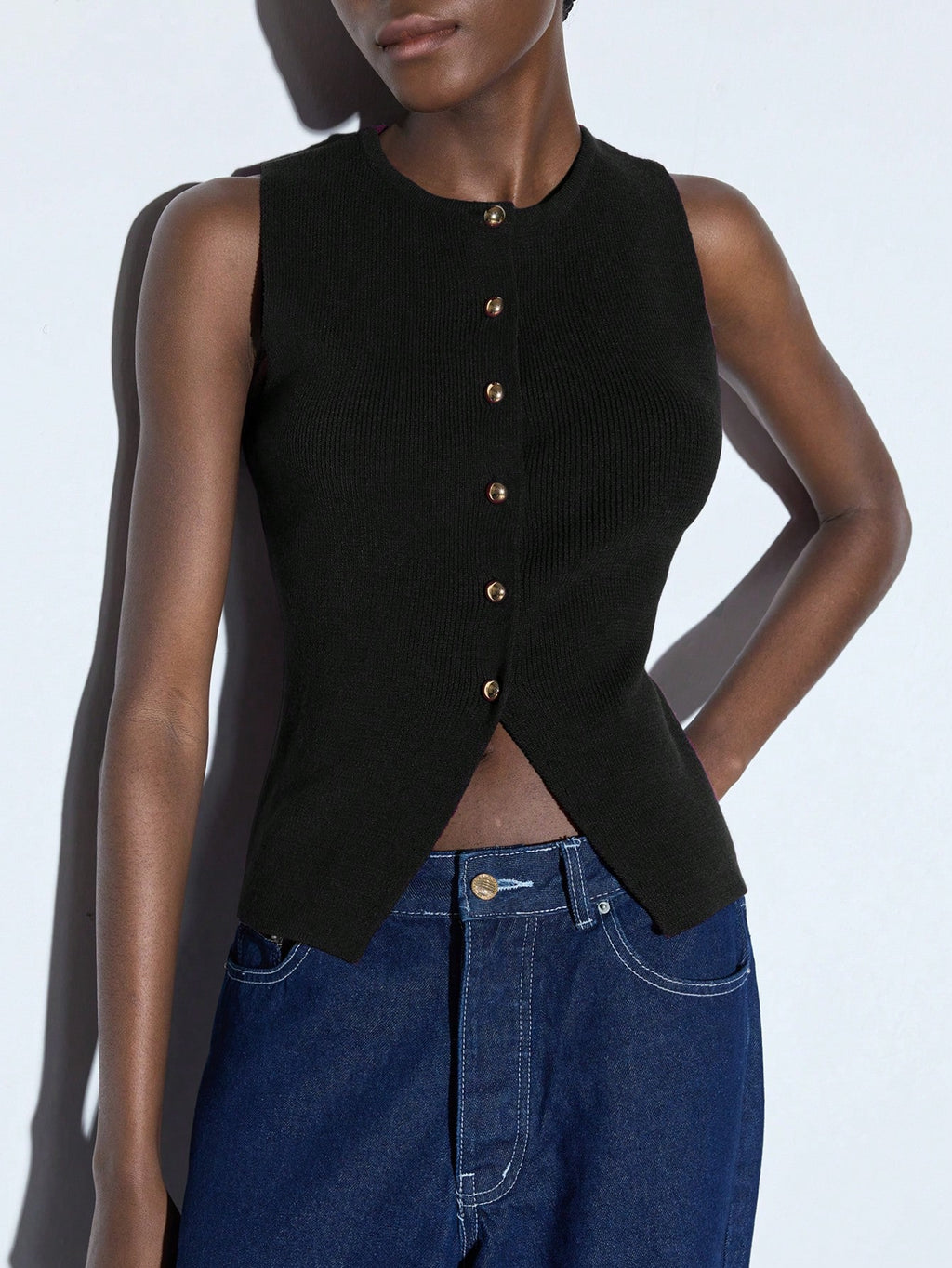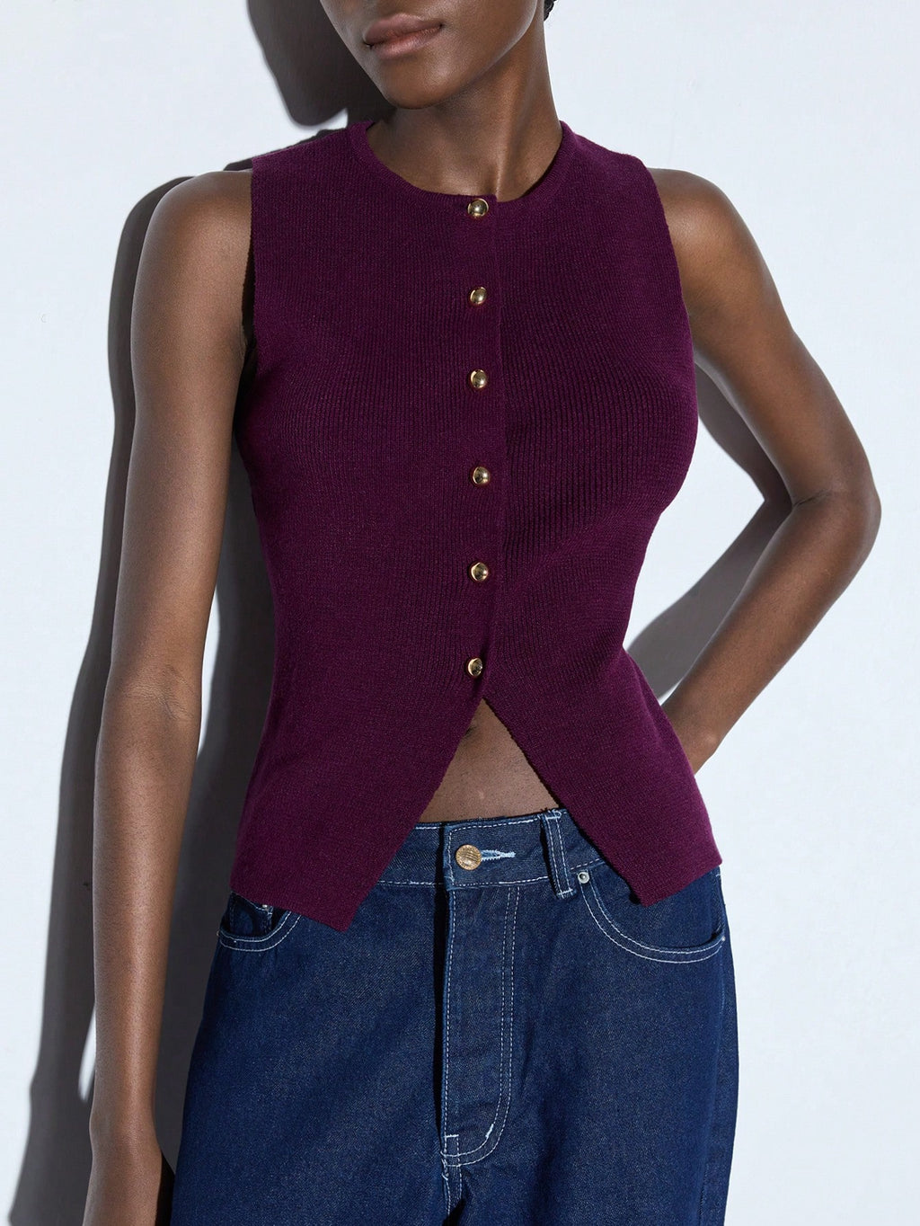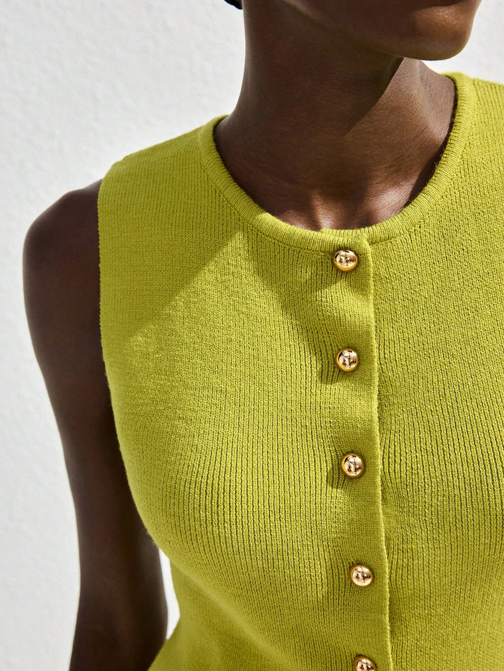 MiuVogue Women's Casual Solid Color Front Button Sleeveless Knit Top, Summer Women Summer Clothing