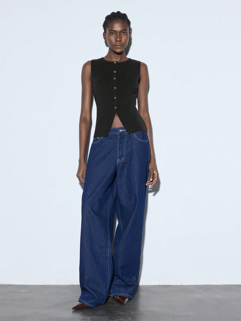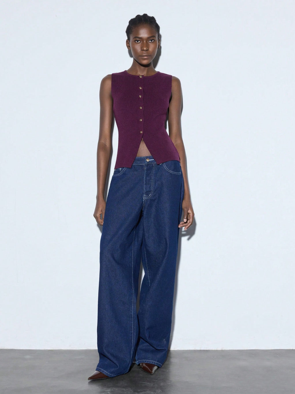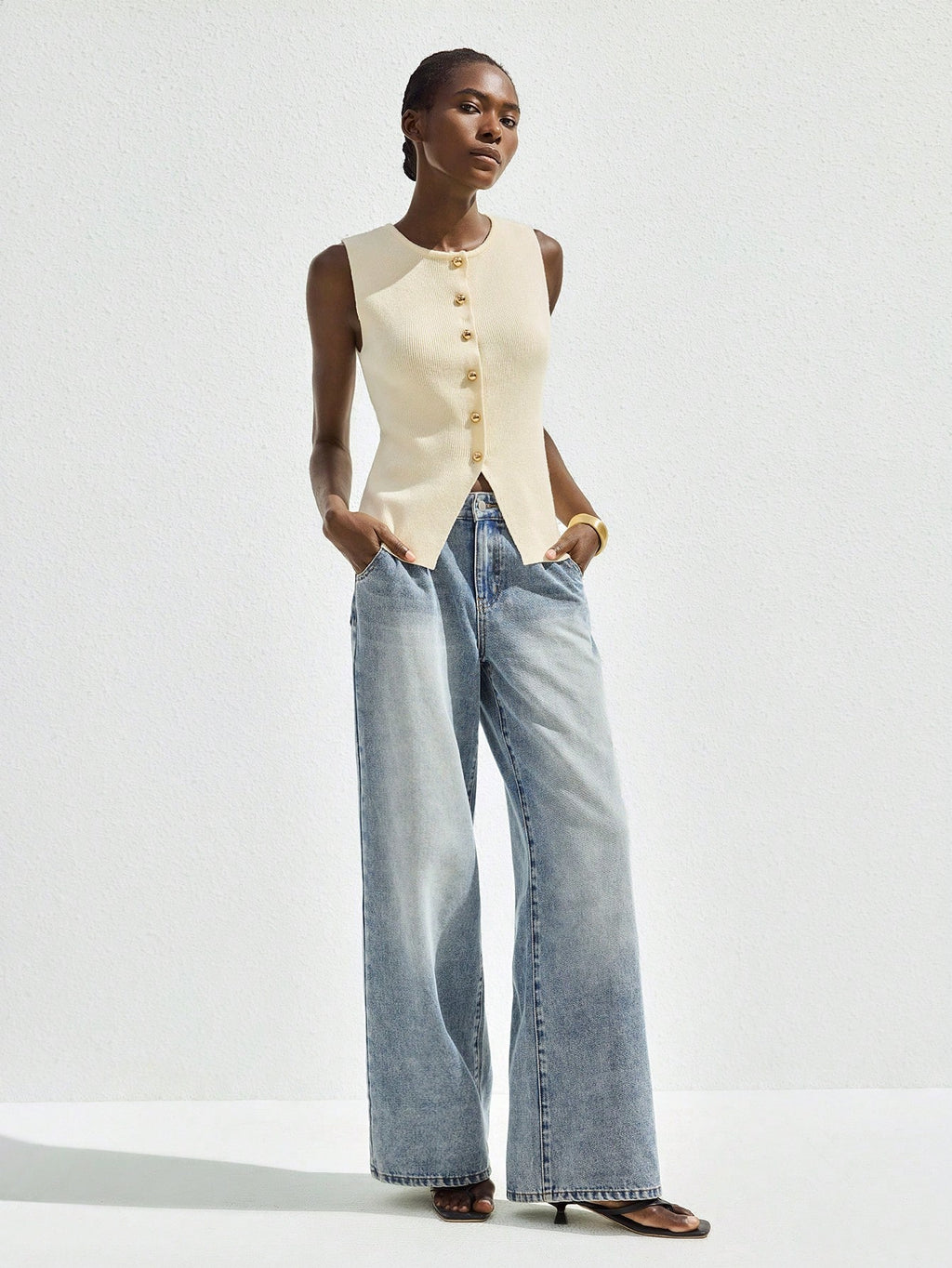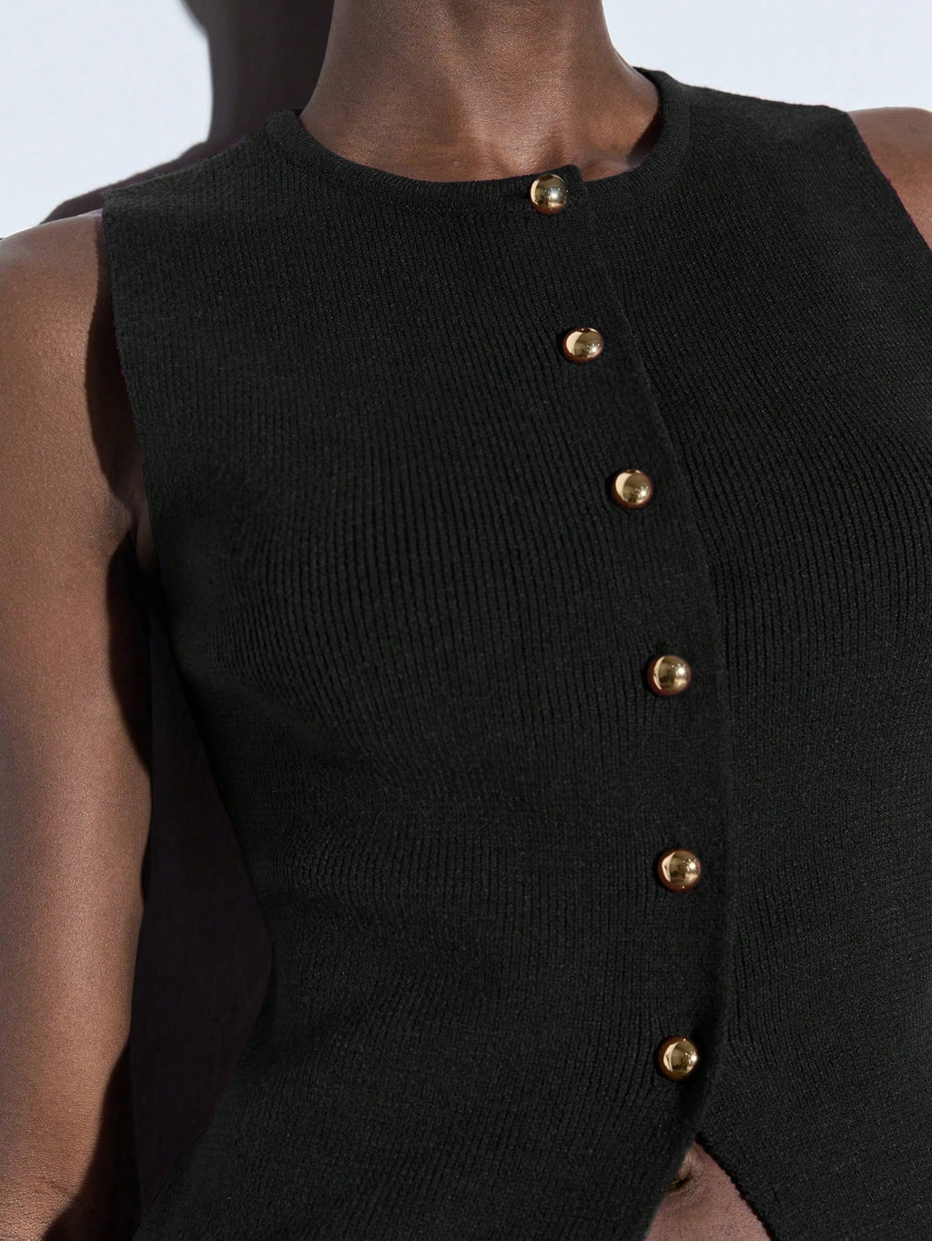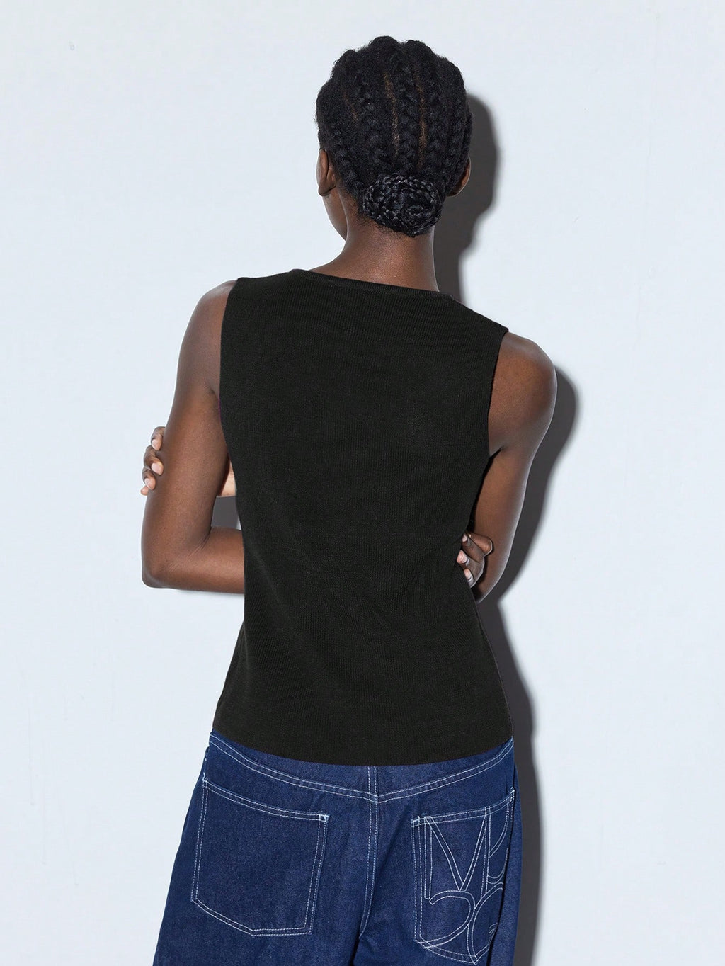 MiuVogue Women's Casual Solid Color Front Button Sleeveless Knit Top, Summer Women Summer Clothing
