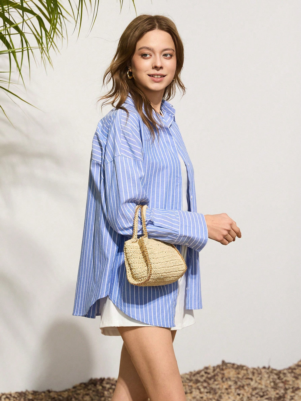 MiuVogue Women's Casual Woven Chain Strap Handbag, Vacation Style