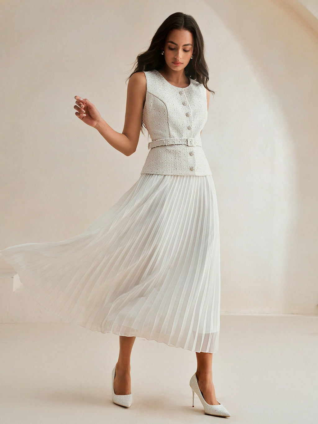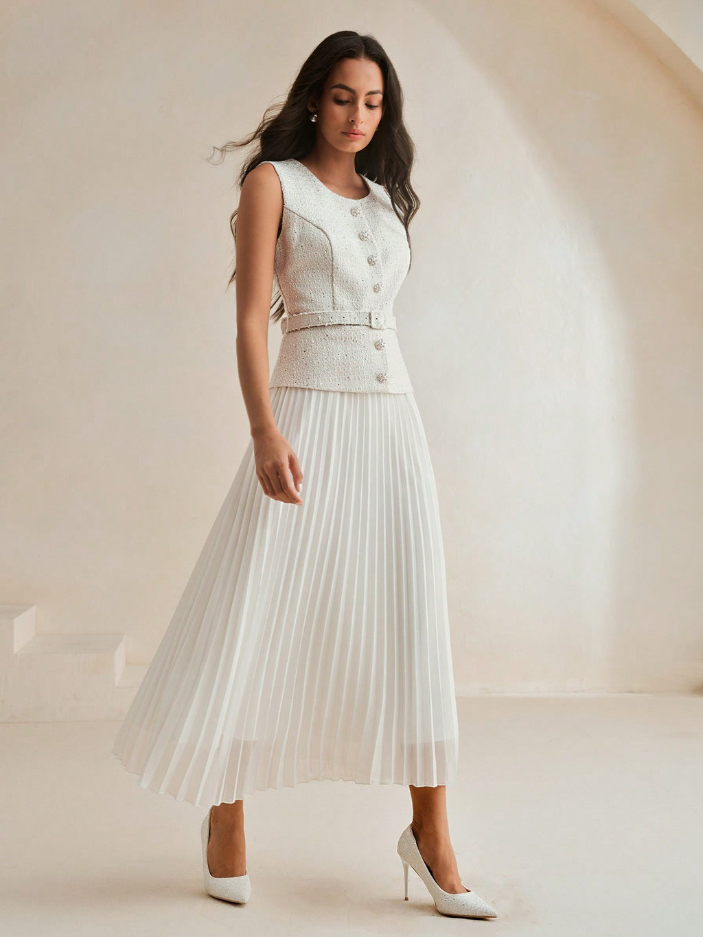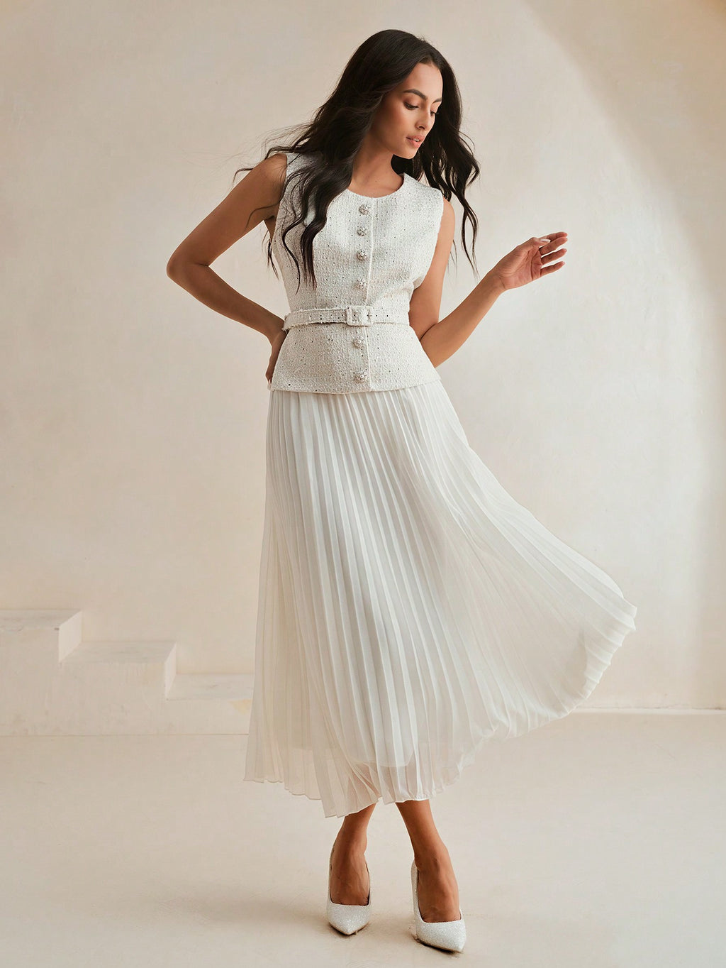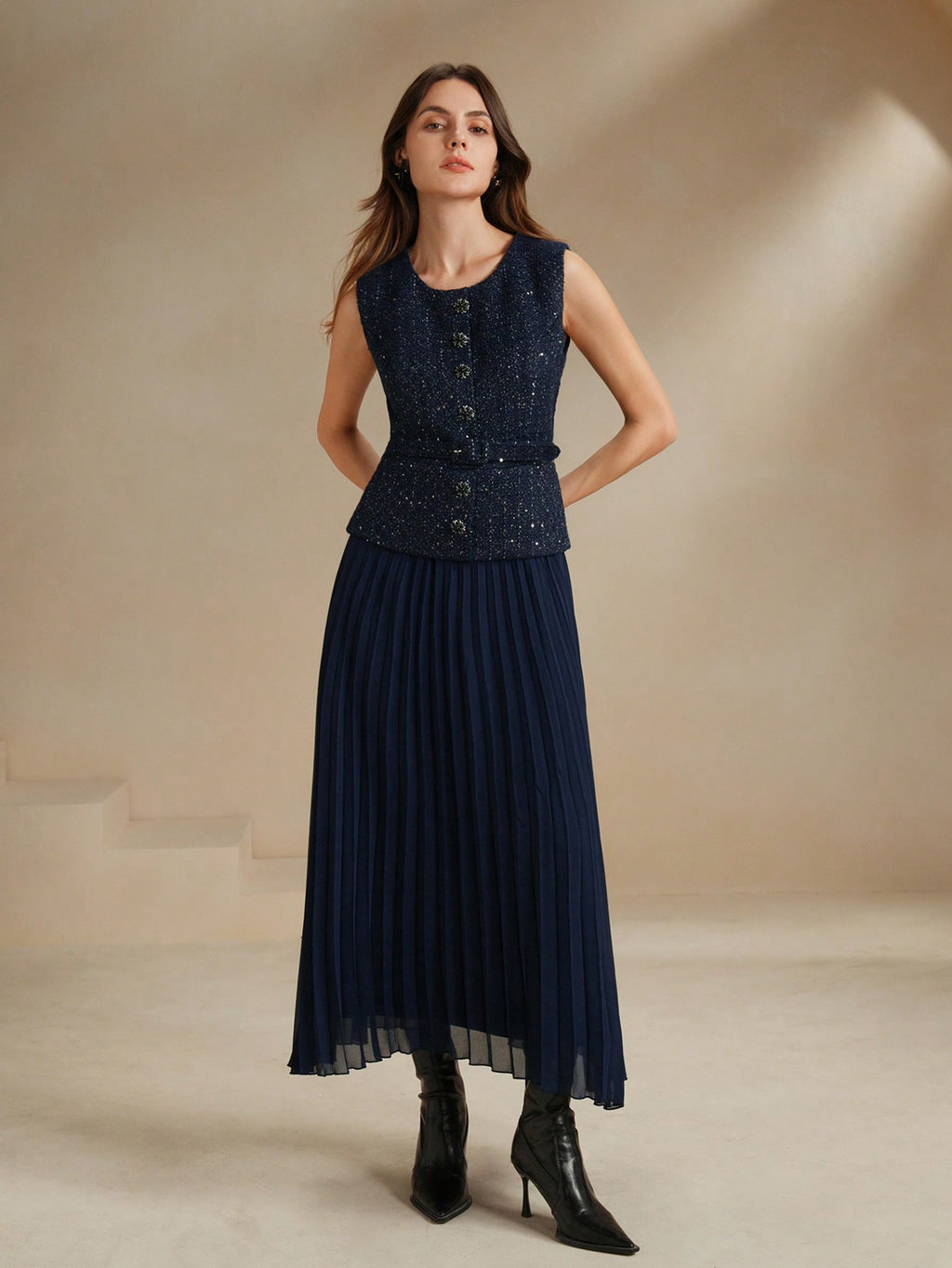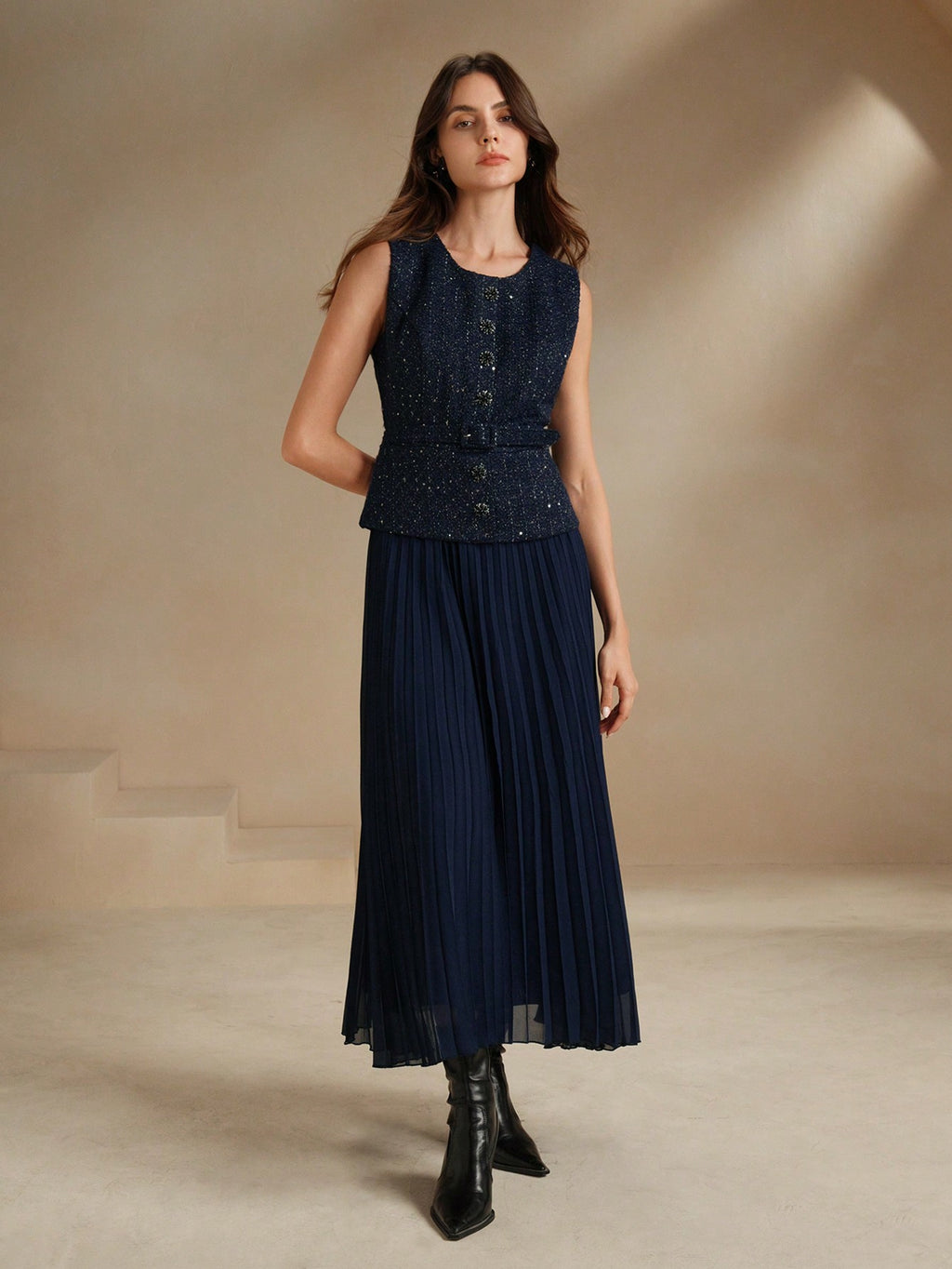 MIU AZRA Čvrsta Boja Neformalna Plisirana Kratka Ženska Pletena Suknja, Prikladna za Odmor, Večernji Izlazak, Jesen/Zimu