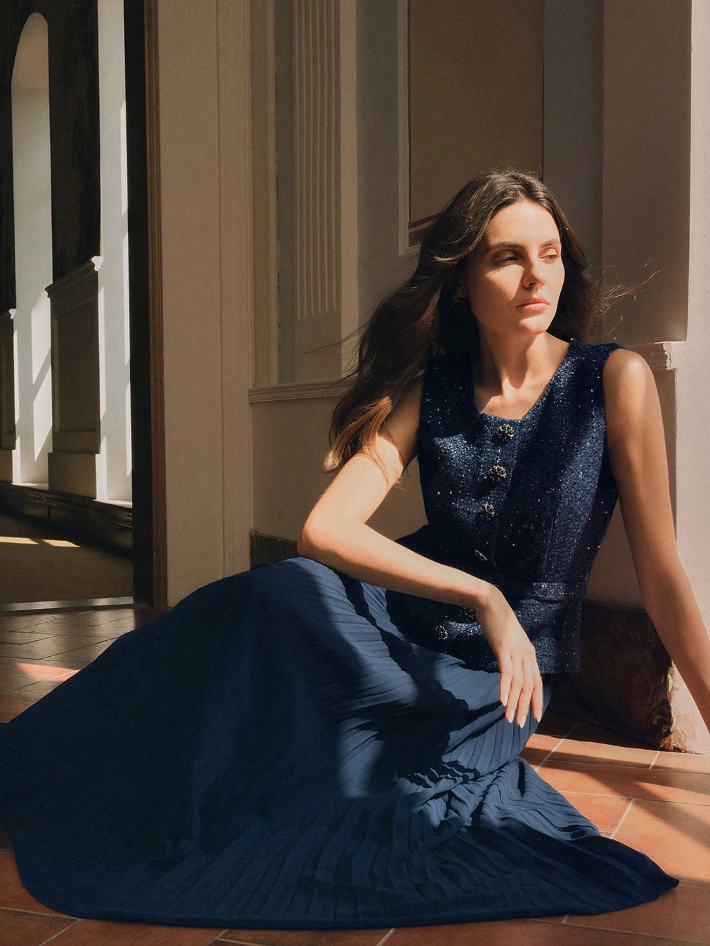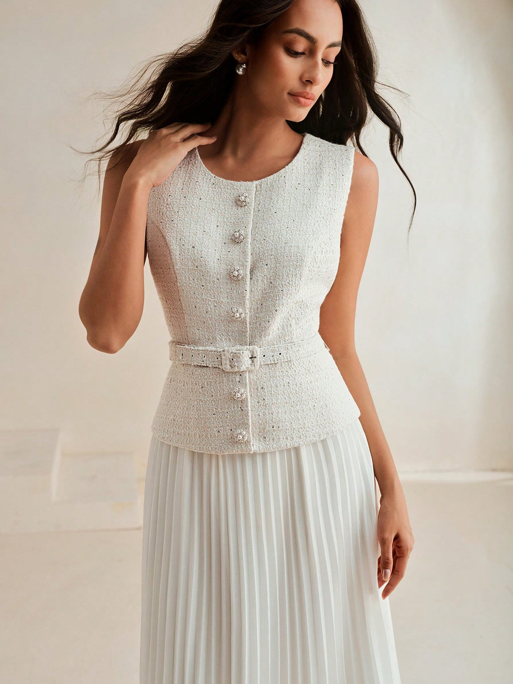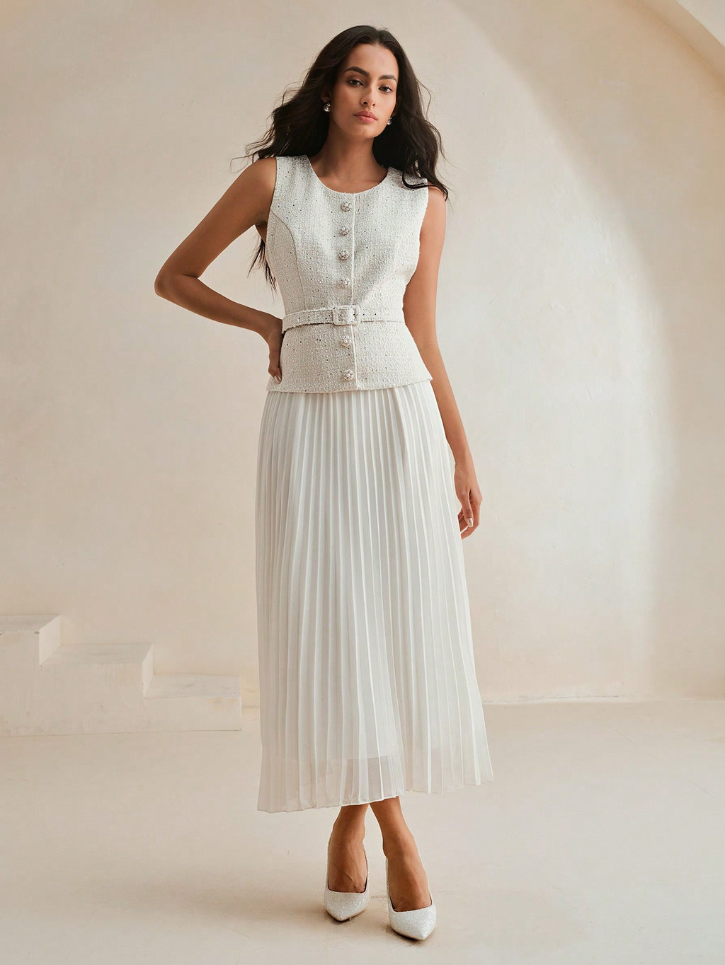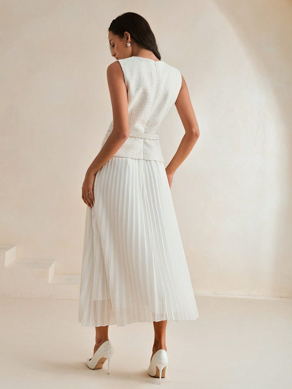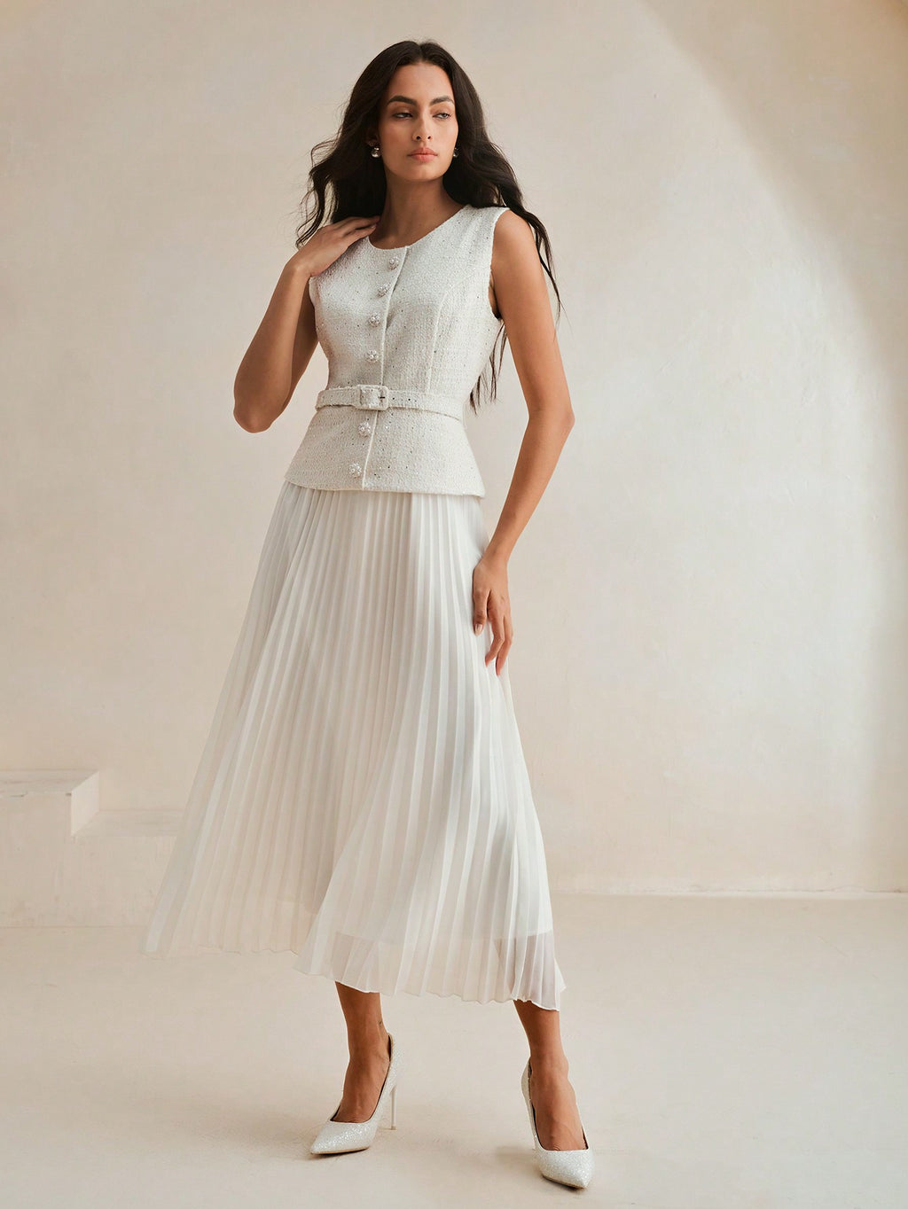 MIU AZRA Čvrsta Boja Neformalna Plisirana Kratka Ženska Pletena Suknja, Prikladna za Odmor, Večernji Izlazak, Jesen/Zimu