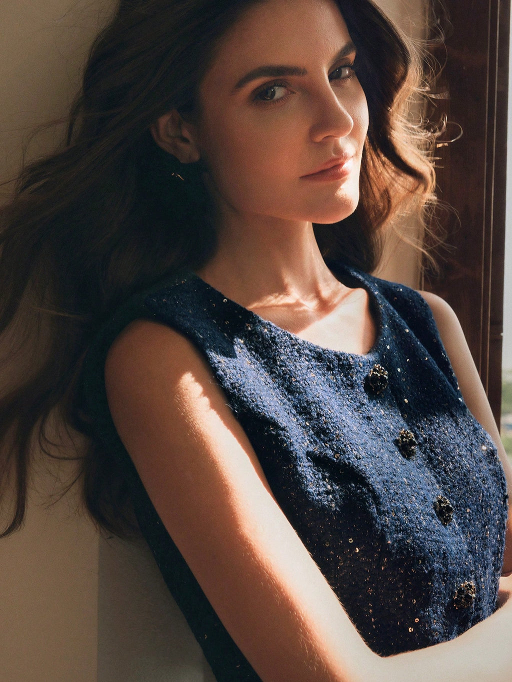 MIU AZRA Elegantna mini suknja s perlama u crvenom tweedu za žene