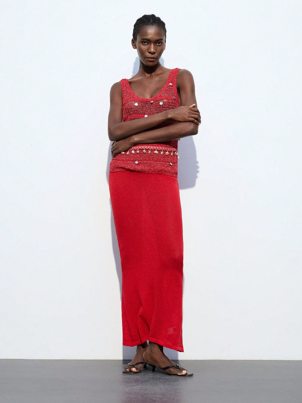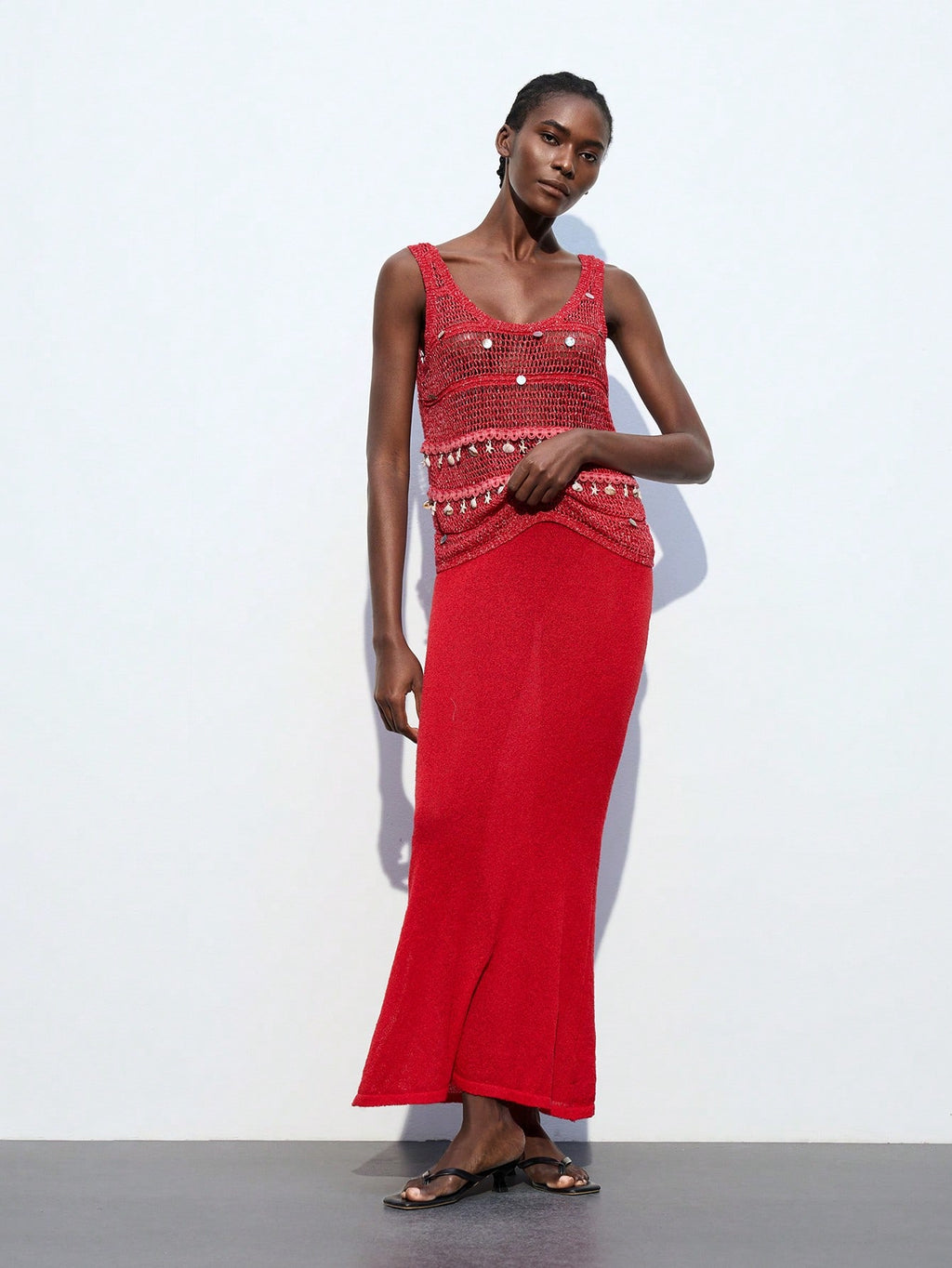 MiuVogue Women's Red Semi-Sheer Knitted Beach Cover Up Maxi Dress: Lightweight And Stylish For Summer