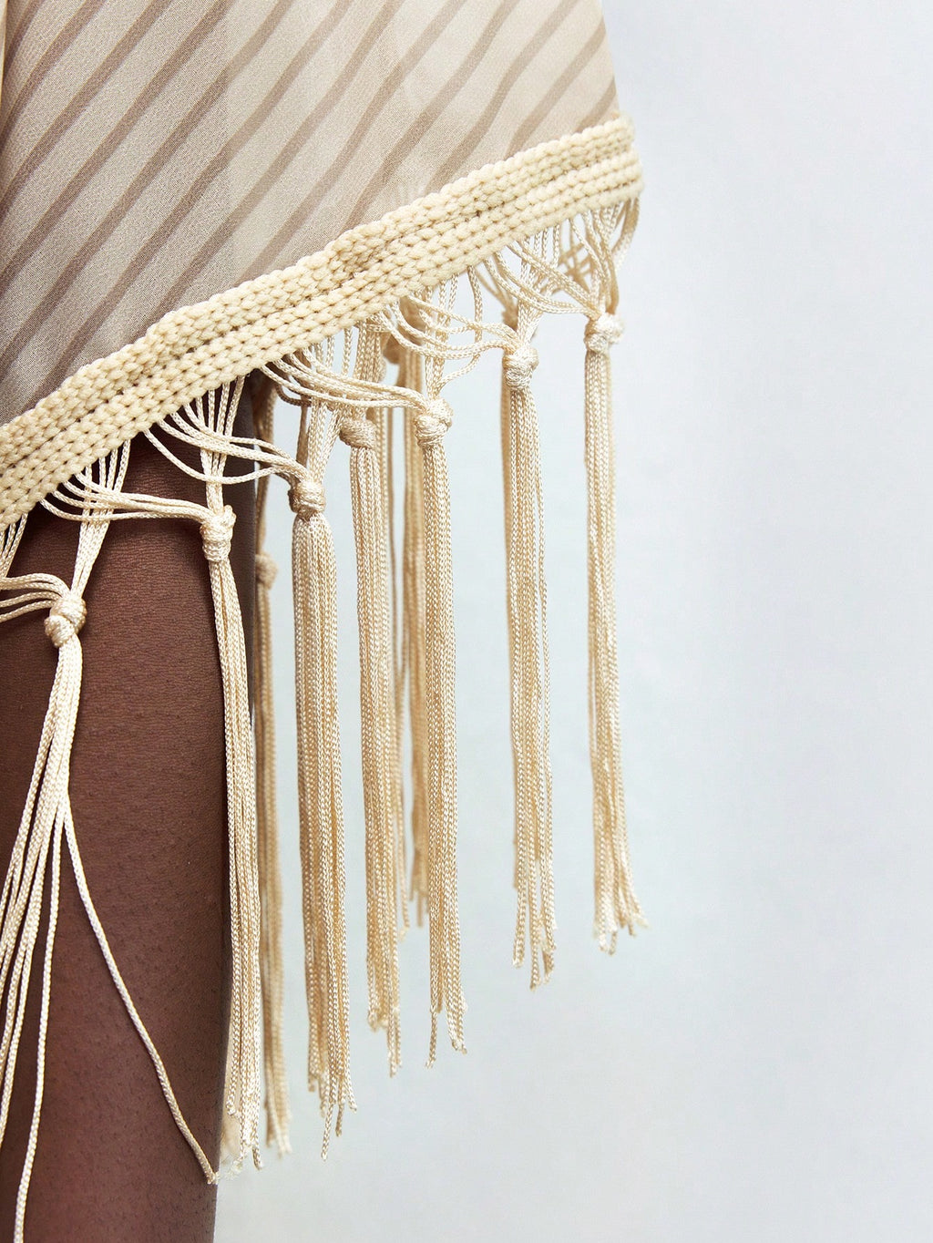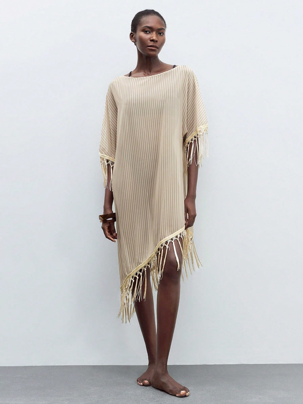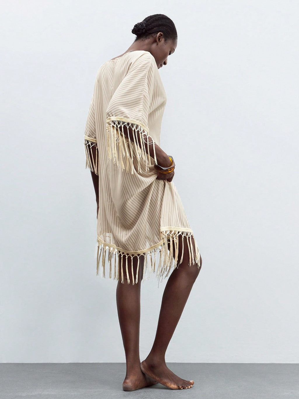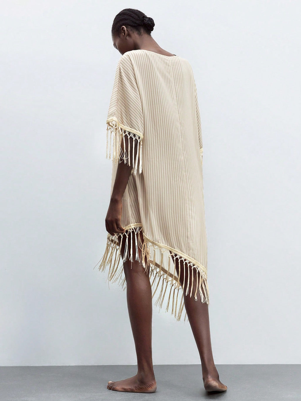 MiuVogue Women's Solid Color Short Sleeve Tassel Smock, Fashionable For Summer
