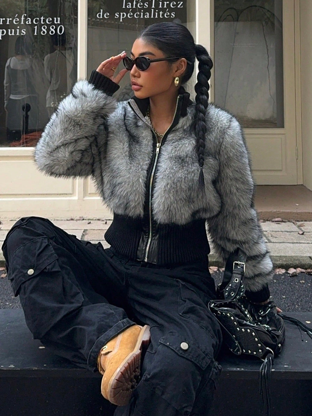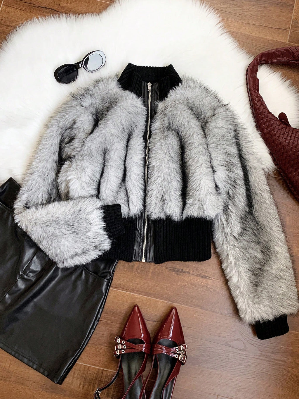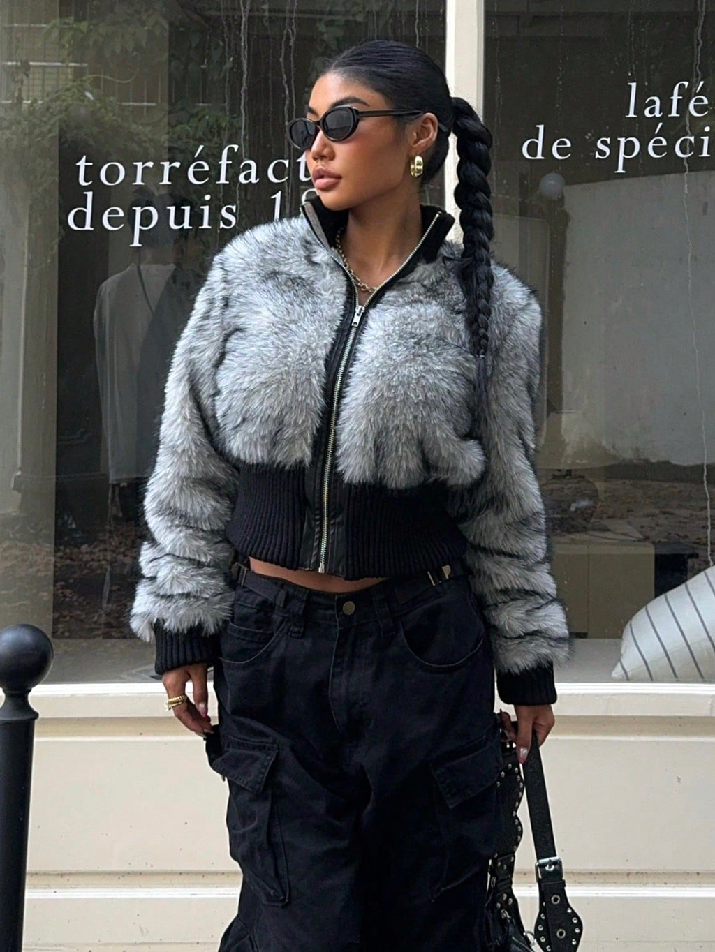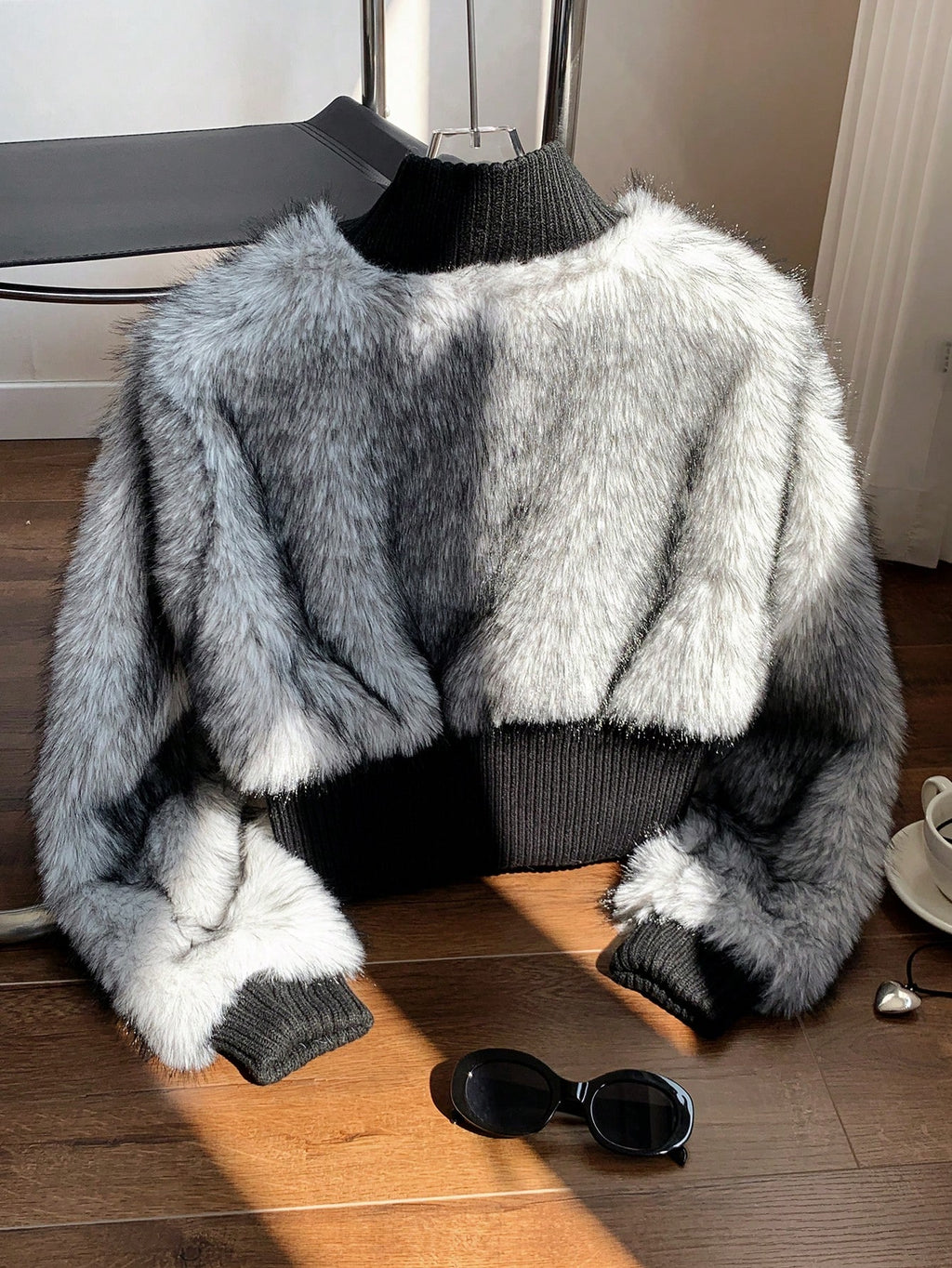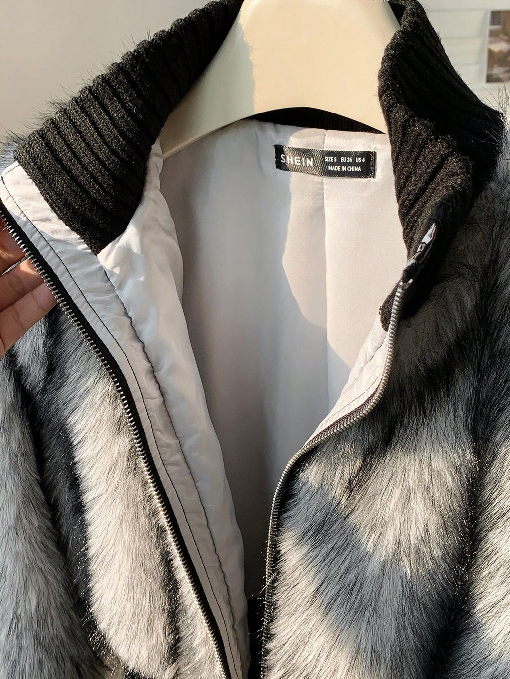 Muchica ženski zimski kaput s dugim rukavima, ležeran, rebraste teksture i pahuljast