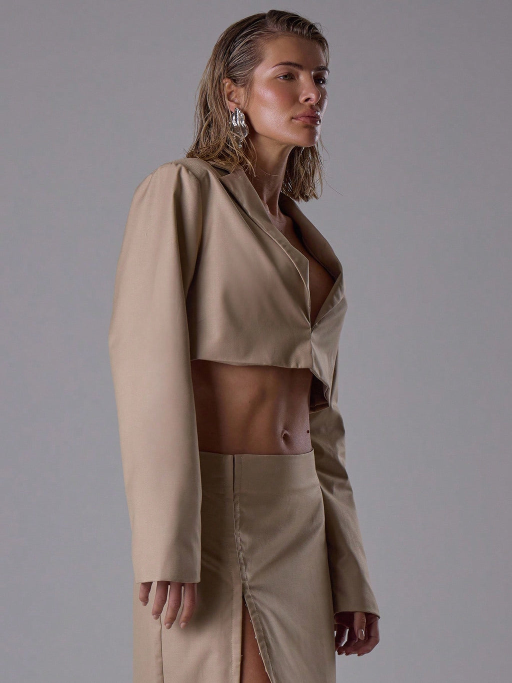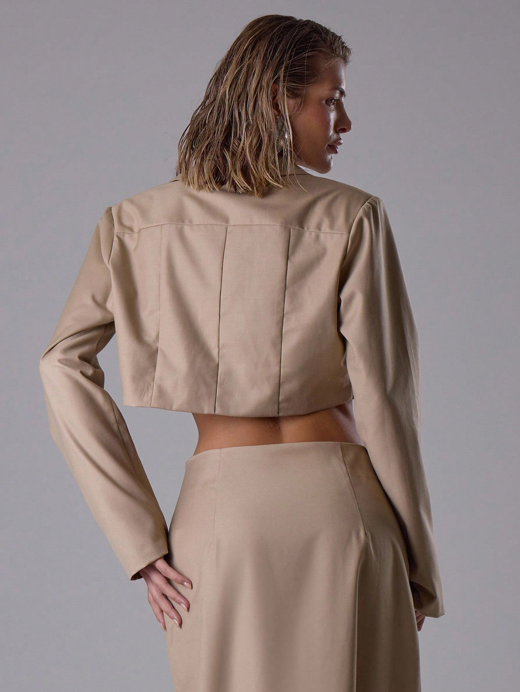 MUSERA Kratki Blejzer sa Dubokim Izrezom i Kopčanjem na Kukice – Oversized Kroja
