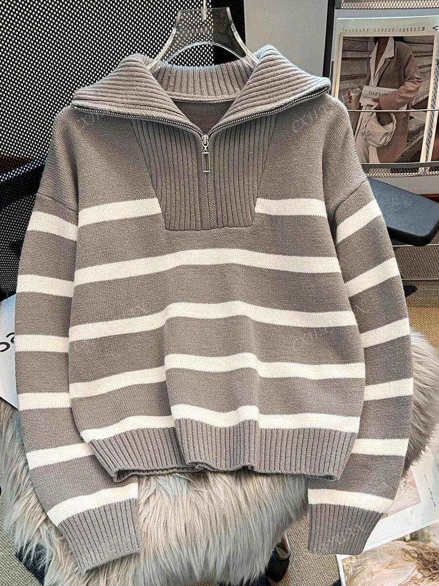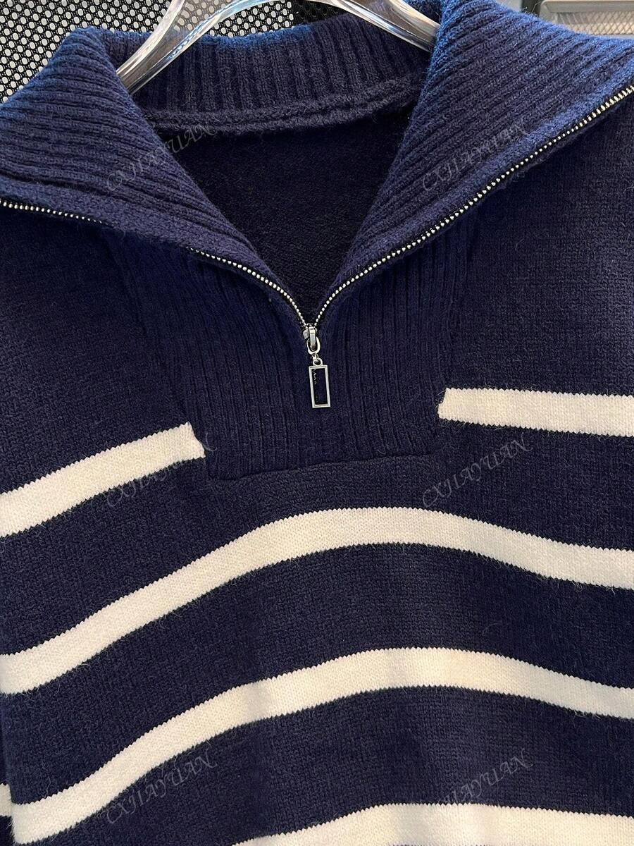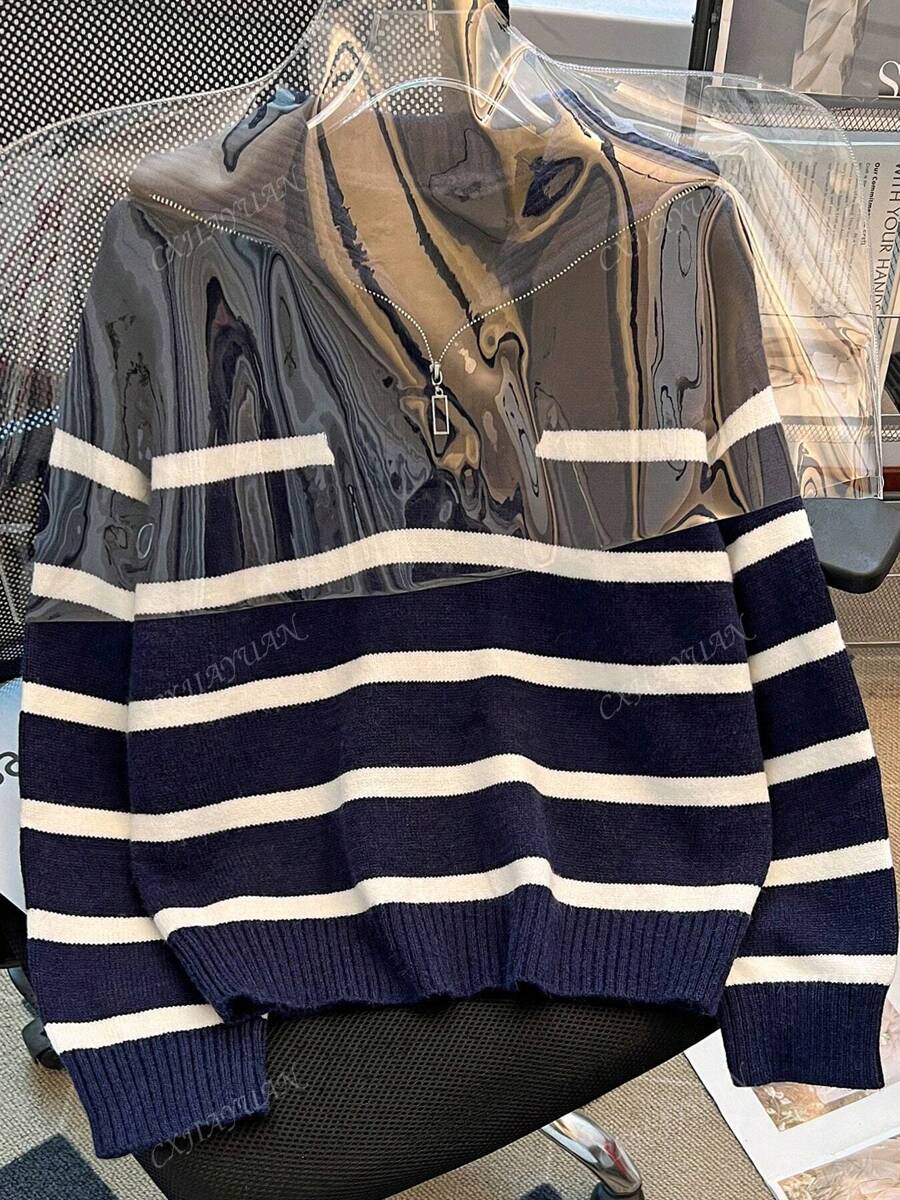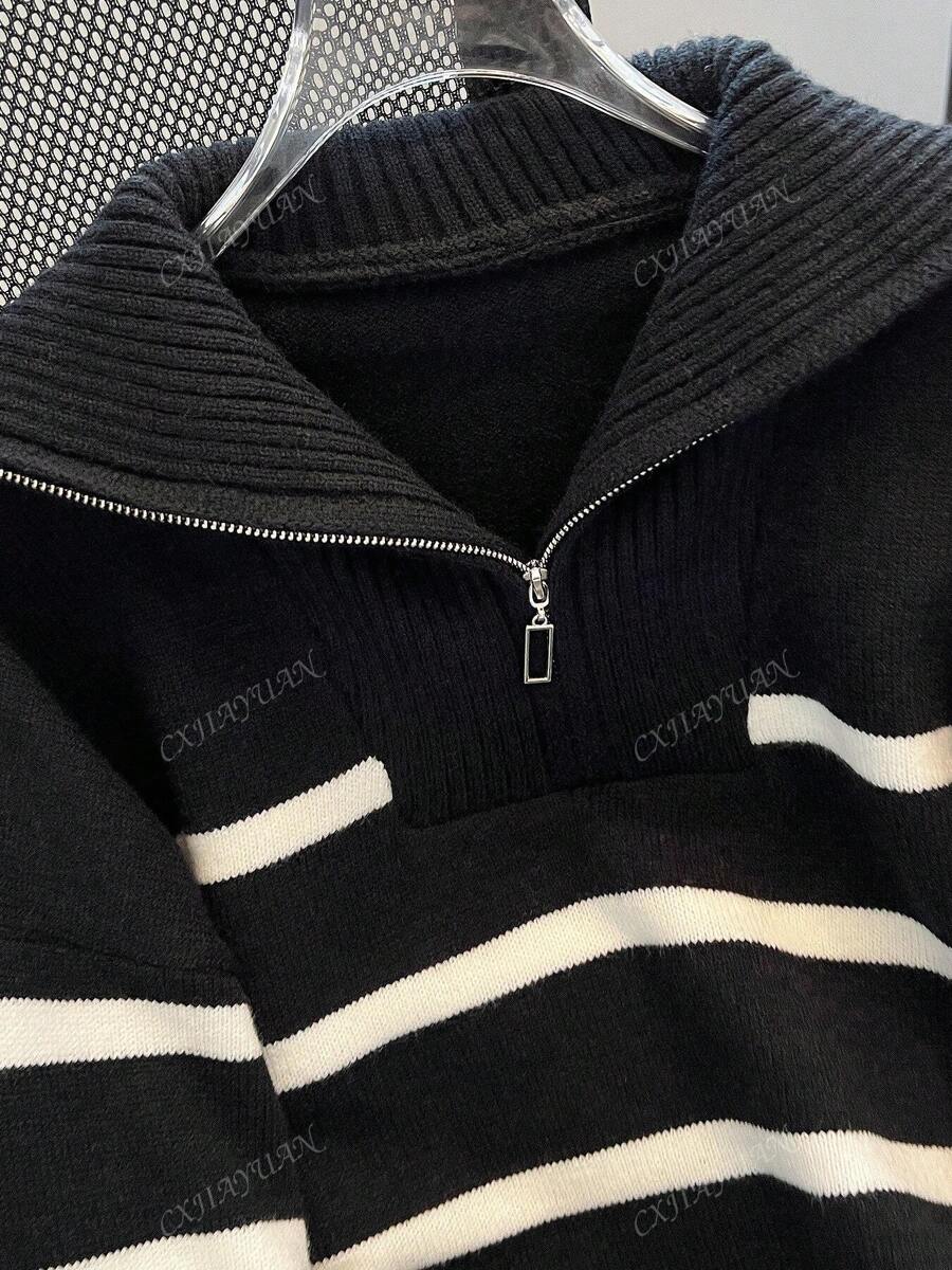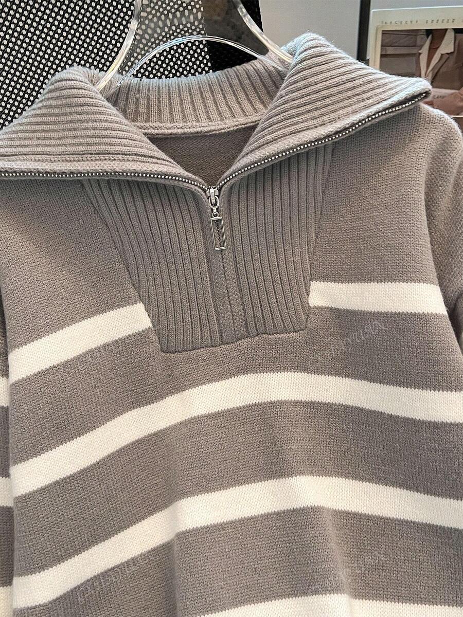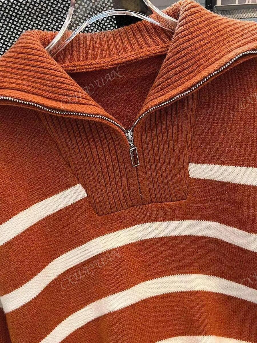 New Autumn/Winter Women Striped Zipper Turtleneck Sweater, Fashion Minimalist Pullover Classic Style,Long Sleeve Tops