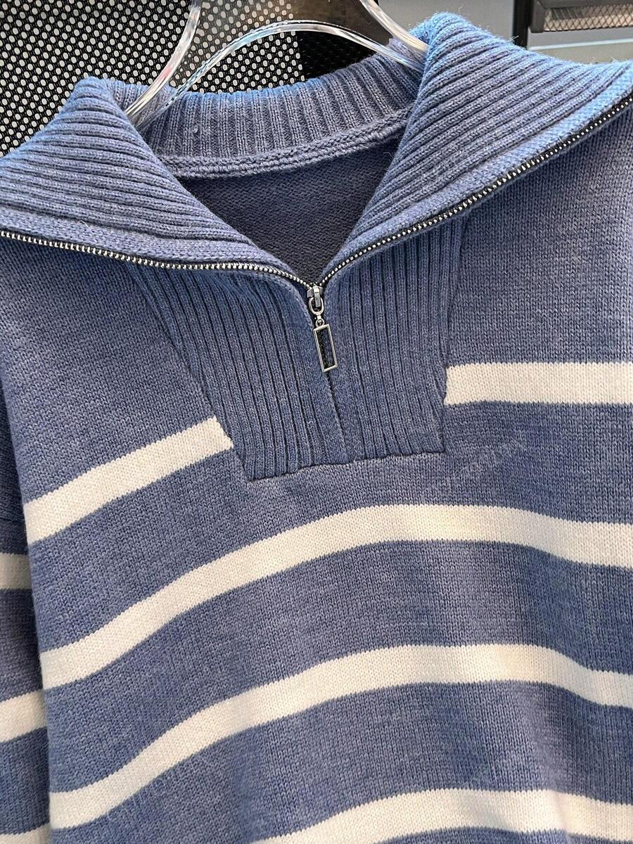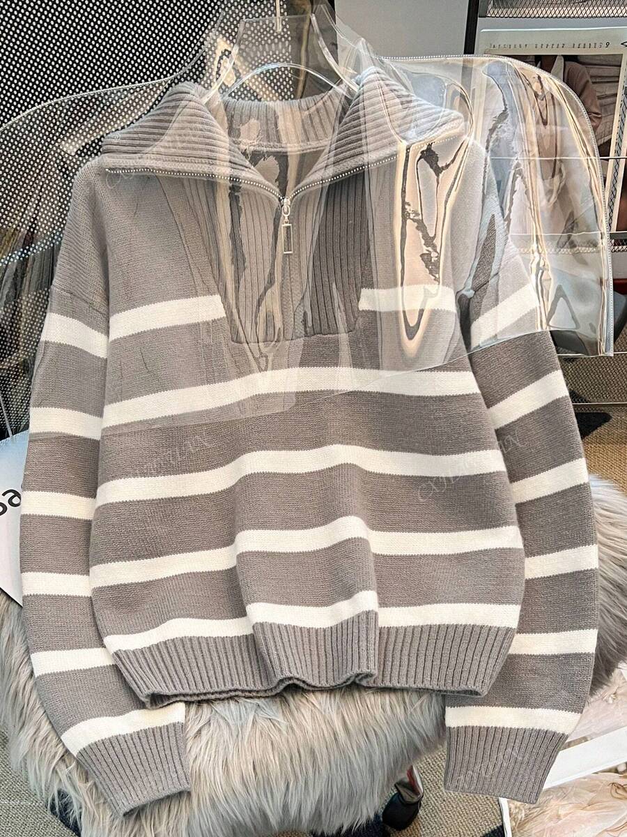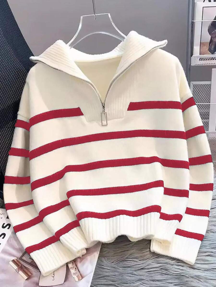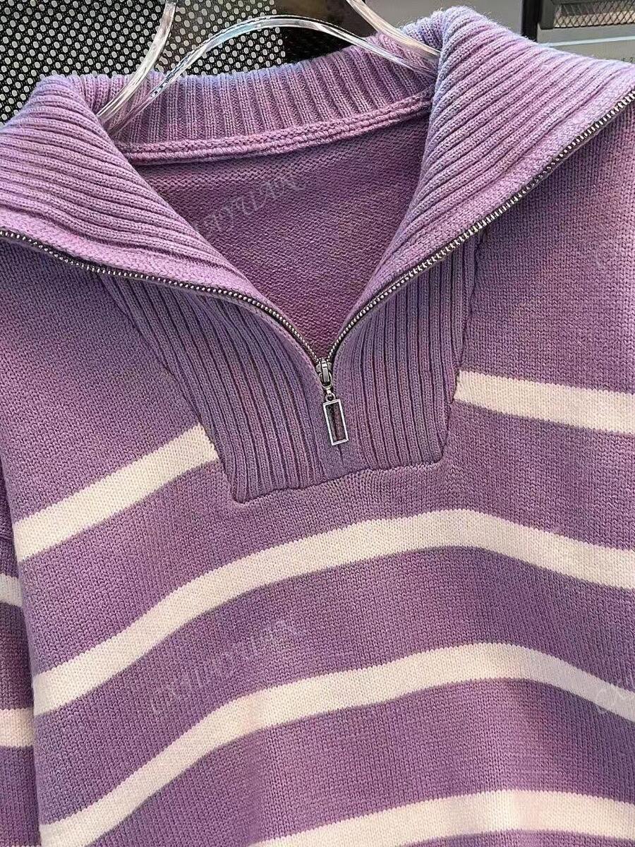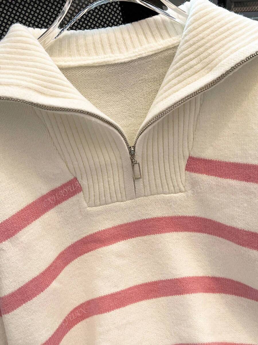 New Autumn/Winter Women Striped Zipper Turtleneck Sweater, Fashion Minimalist Pullover Classic Style,Long Sleeve Tops