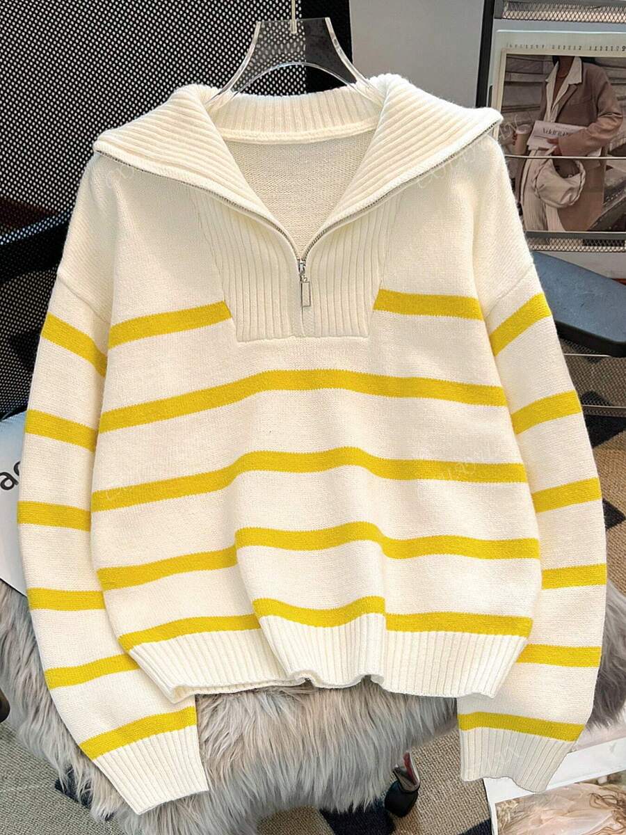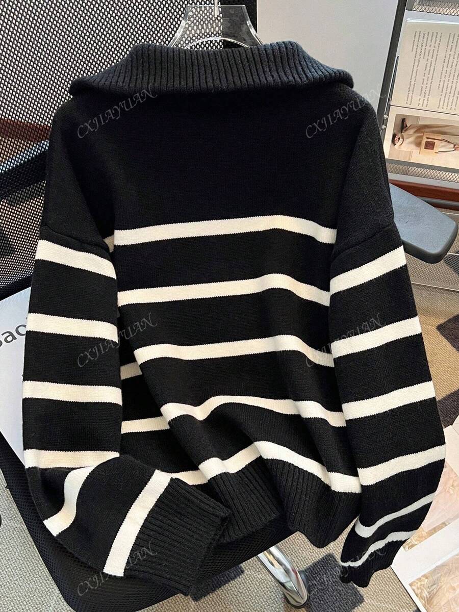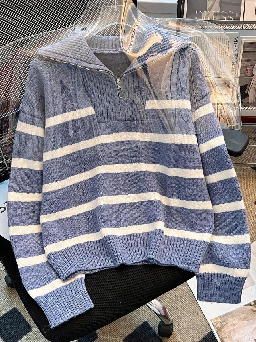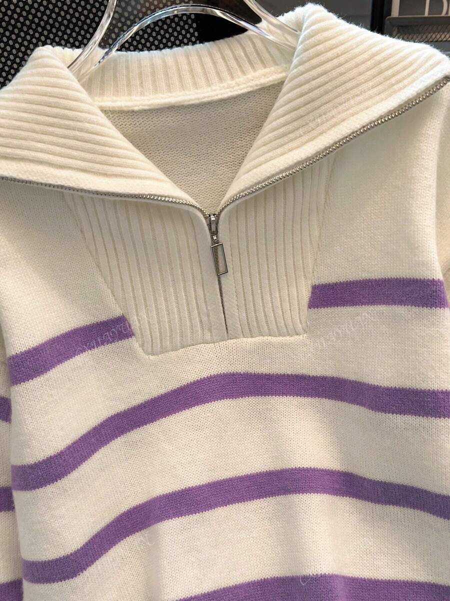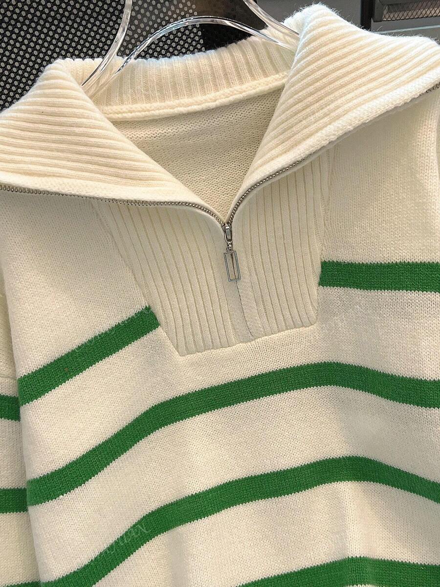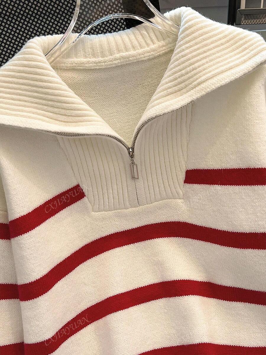 New Autumn/Winter Women Striped Zipper Turtleneck Sweater, Fashion Minimalist Pullover Classic Style,Long Sleeve Tops