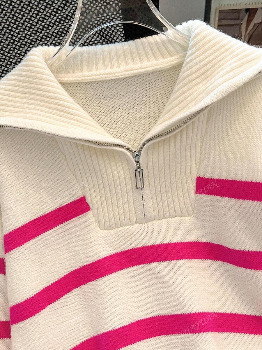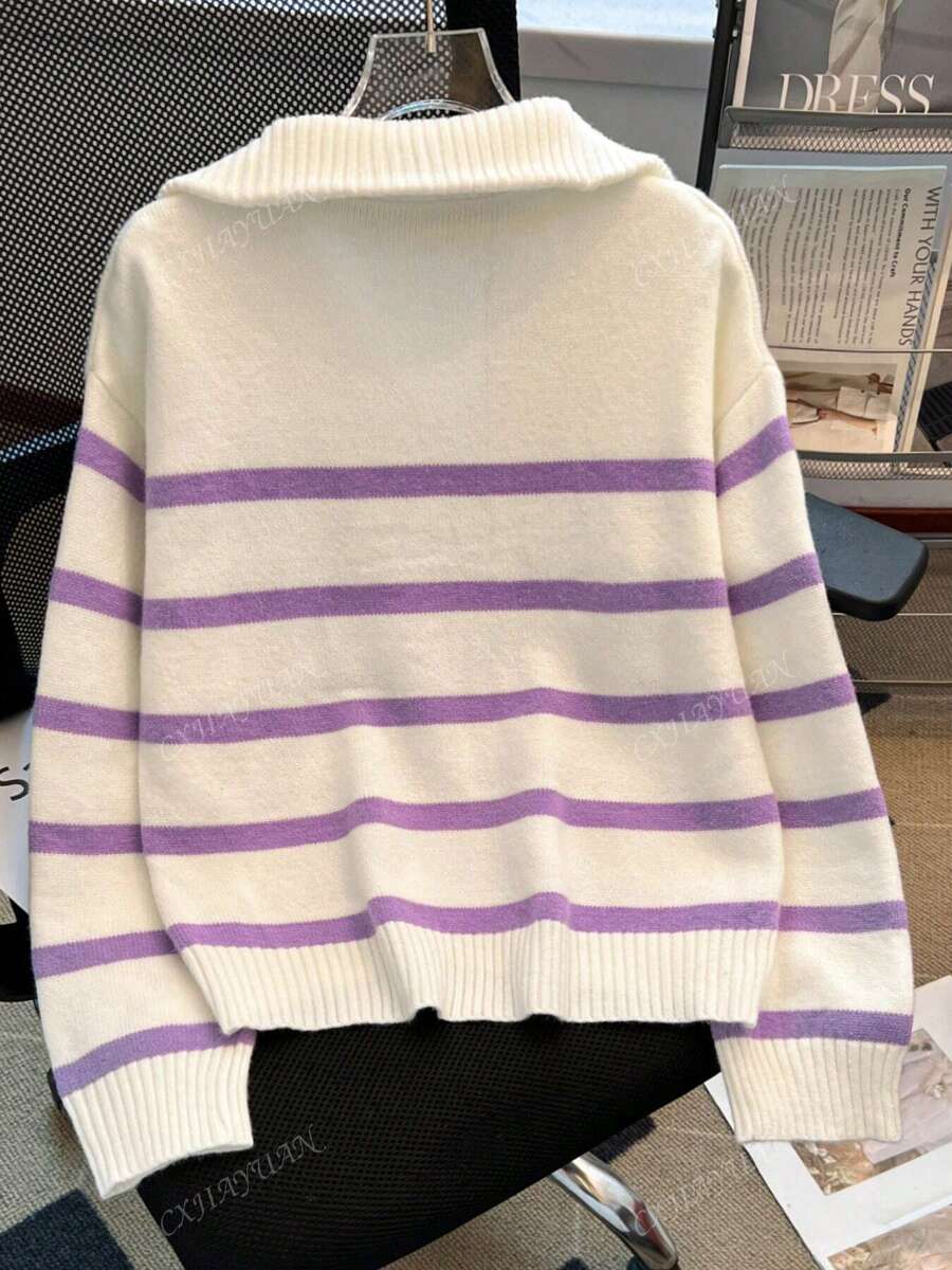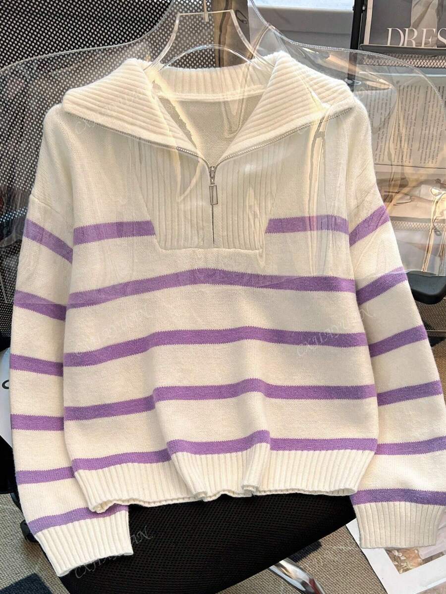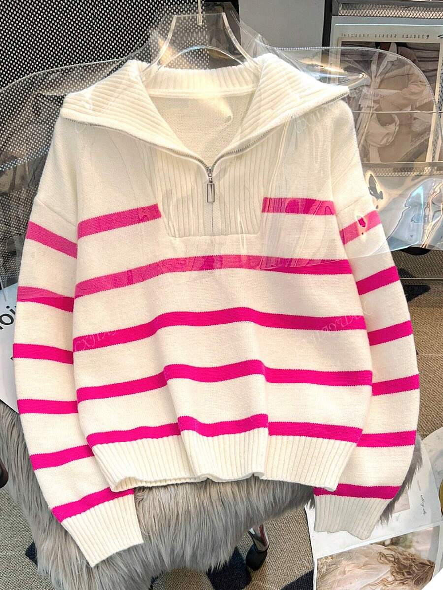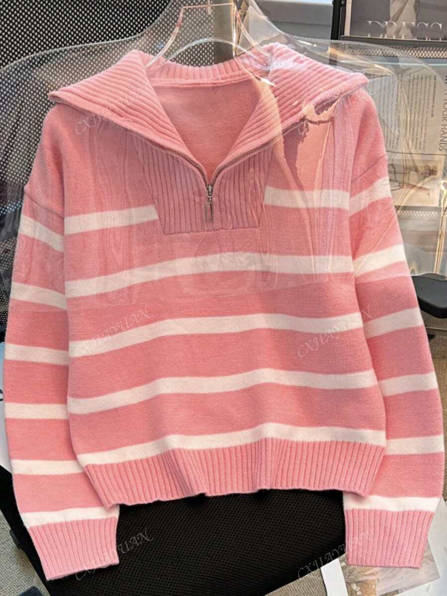 New Autumn/Winter Women Striped Zipper Turtleneck Sweater, Fashion Minimalist Pullover Classic Style,Long Sleeve Tops