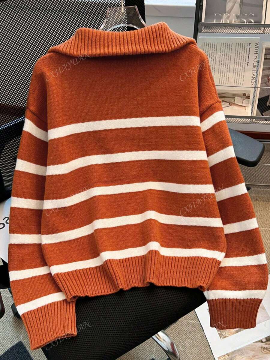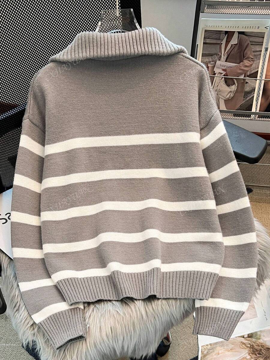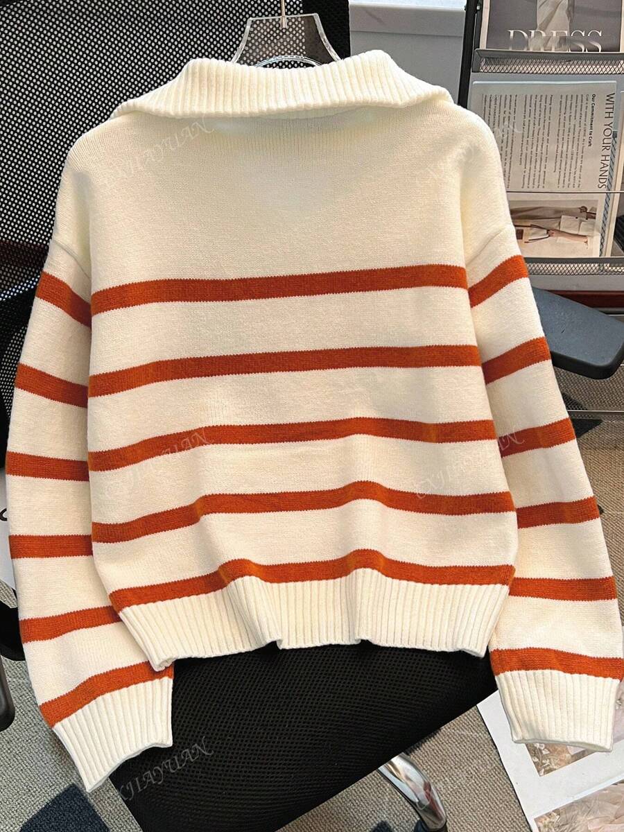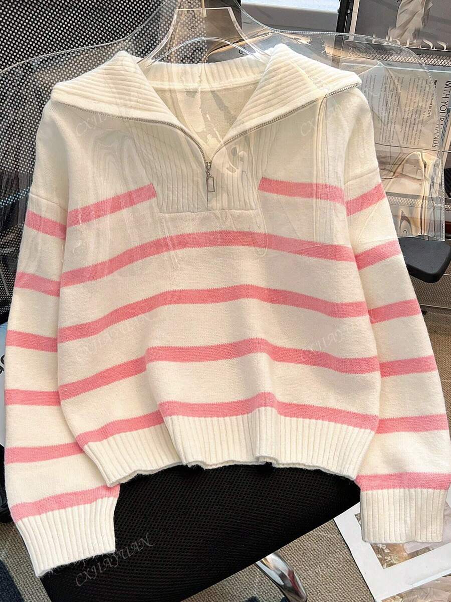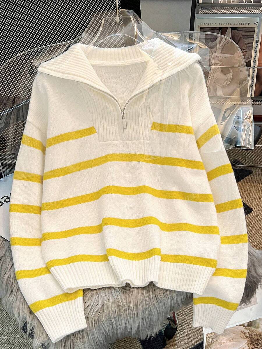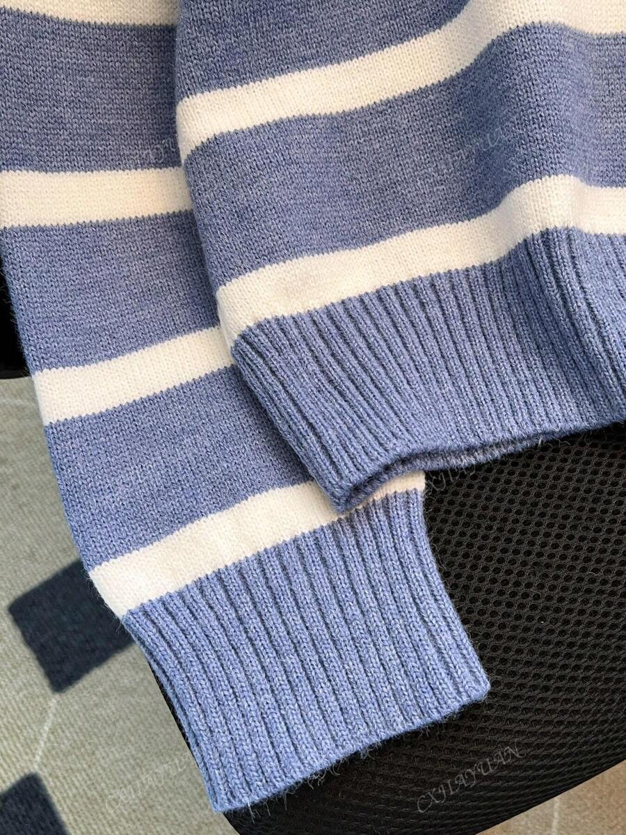 New Autumn/Winter Women Striped Zipper Turtleneck Sweater, Fashion Minimalist Pullover Classic Style,Long Sleeve Tops