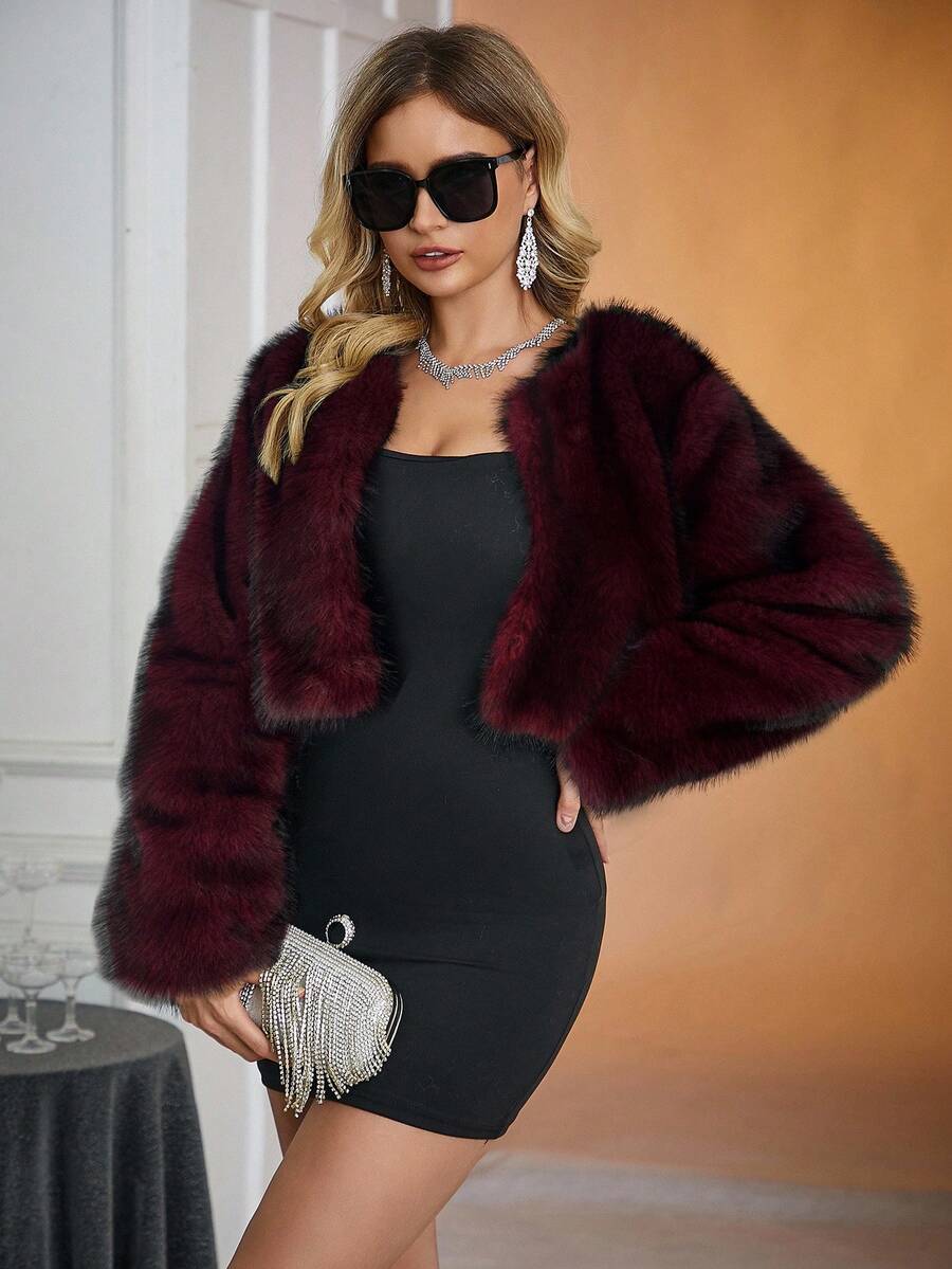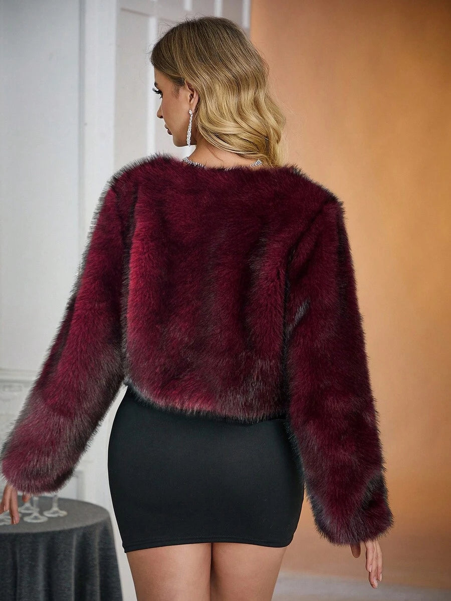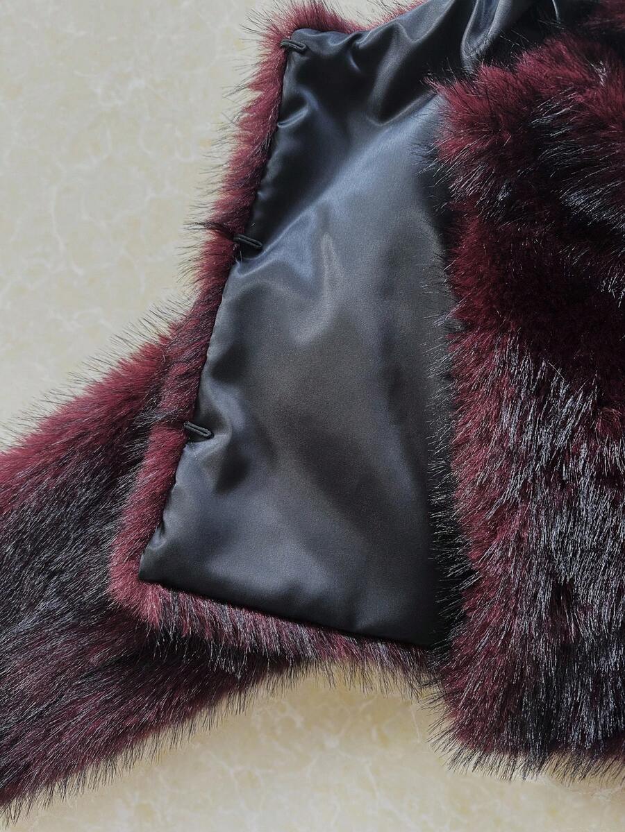 Relinas ženska moderna kratka jakna od umjetnog krzna s colorblock (višebojnim) uzorkom i otisnutim detaljima