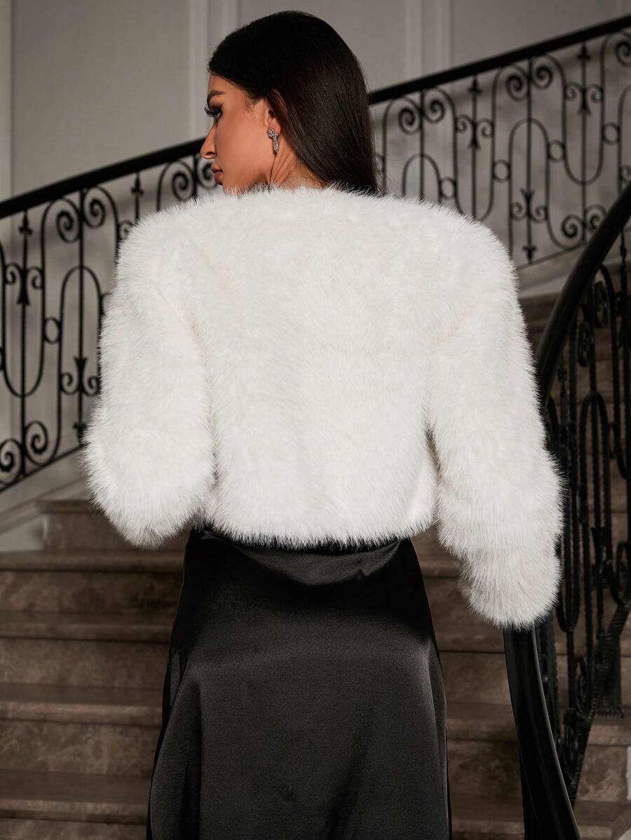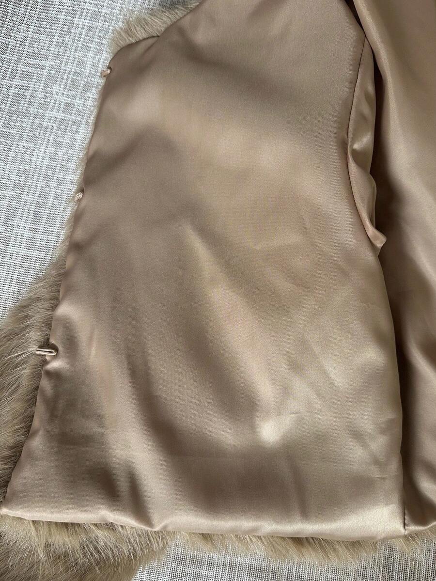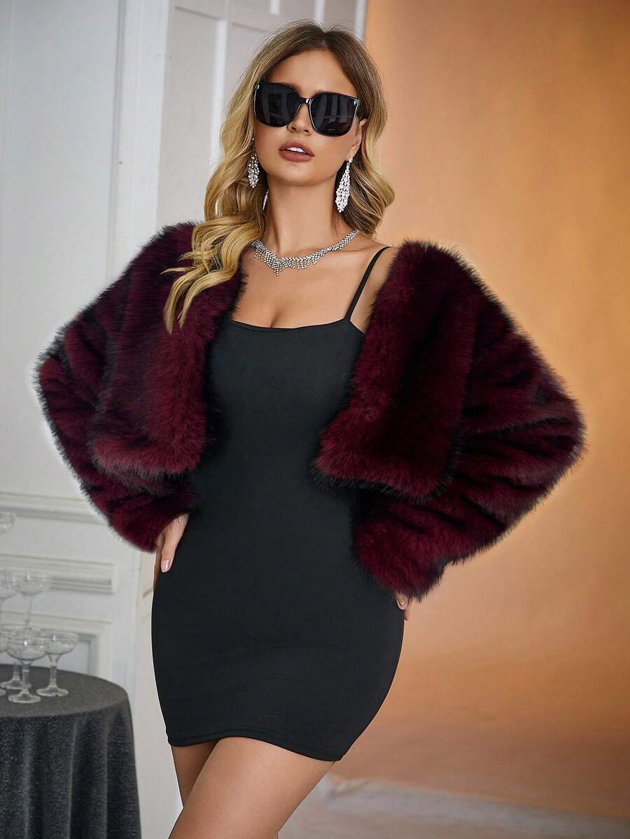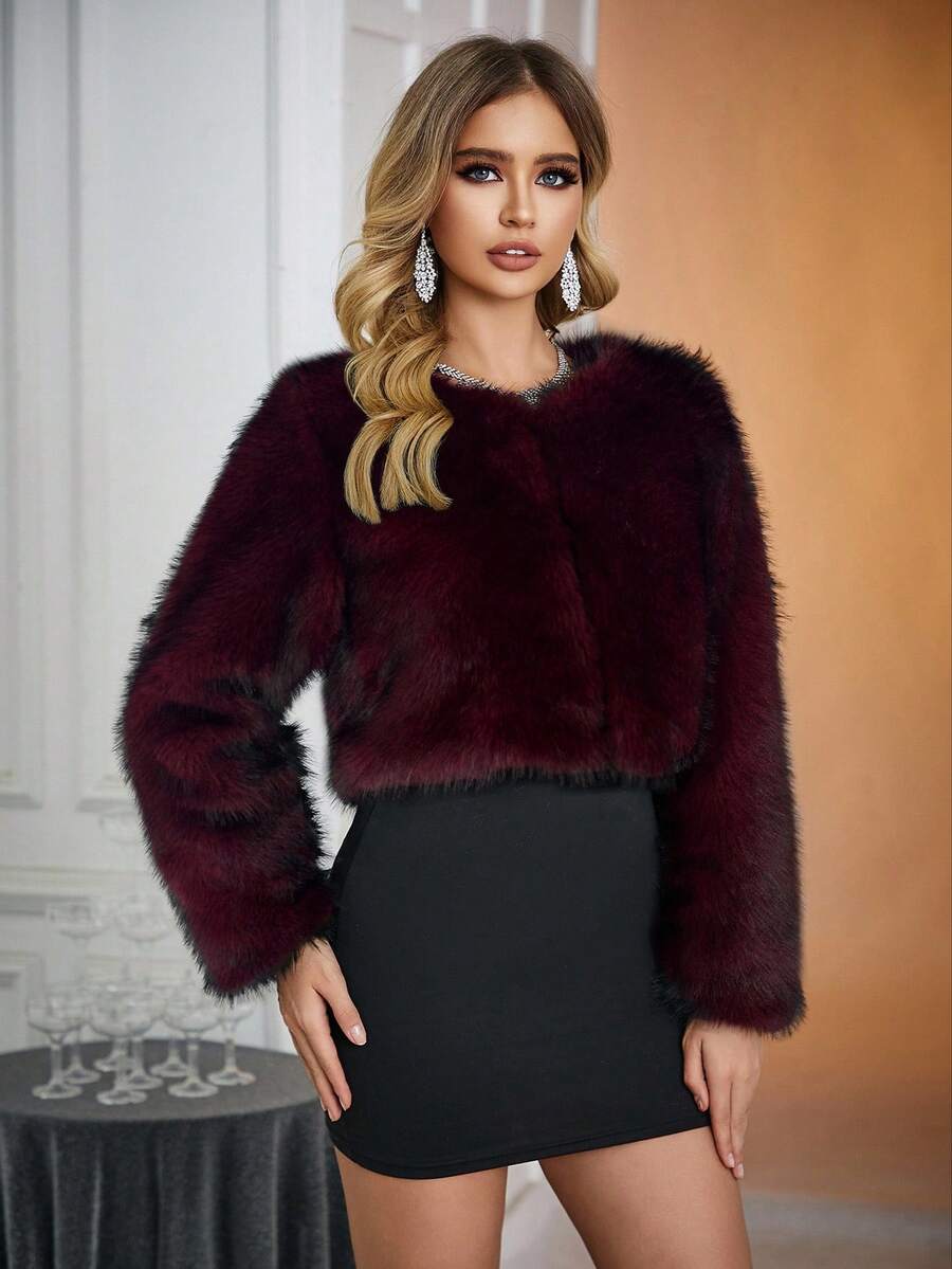 Relinas ženska moderna kratka jakna od umjetnog krzna s colorblock (višebojnim) uzorkom i otisnutim detaljima