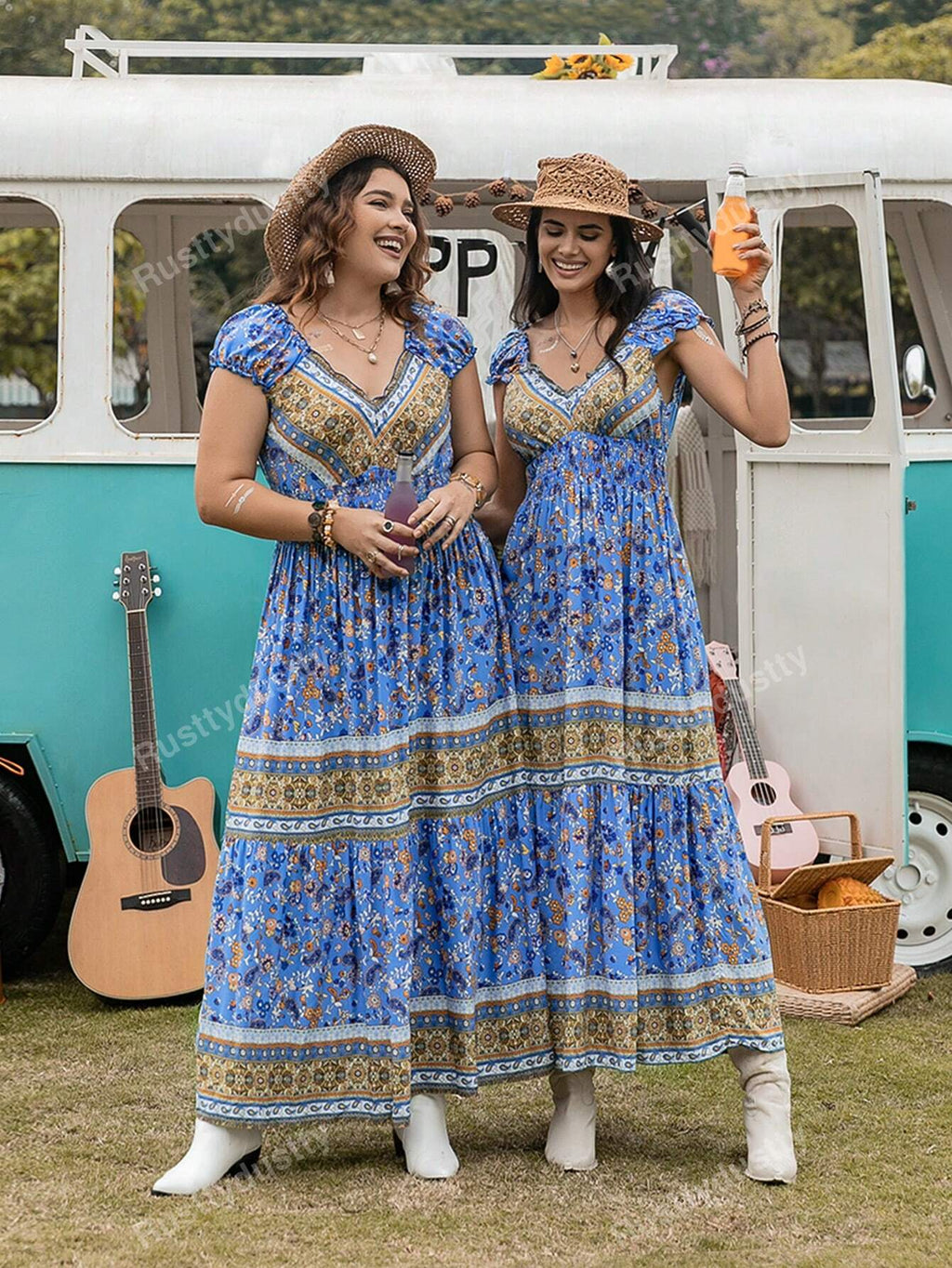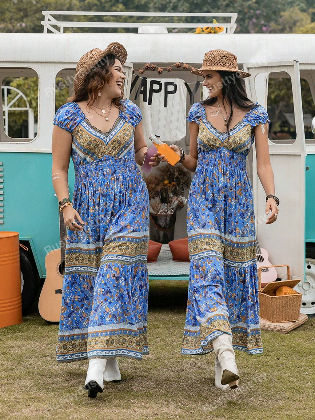 BELLAVOG Bohemian Tropical Printed V-Neck Ladies' Long Dress Is Suitable For Daily Wear At Seaside Holiday Music Festival.