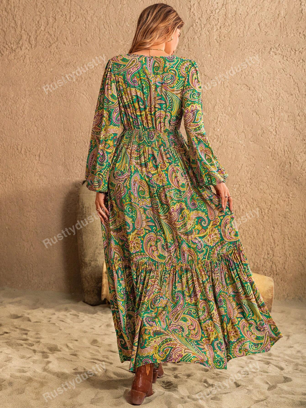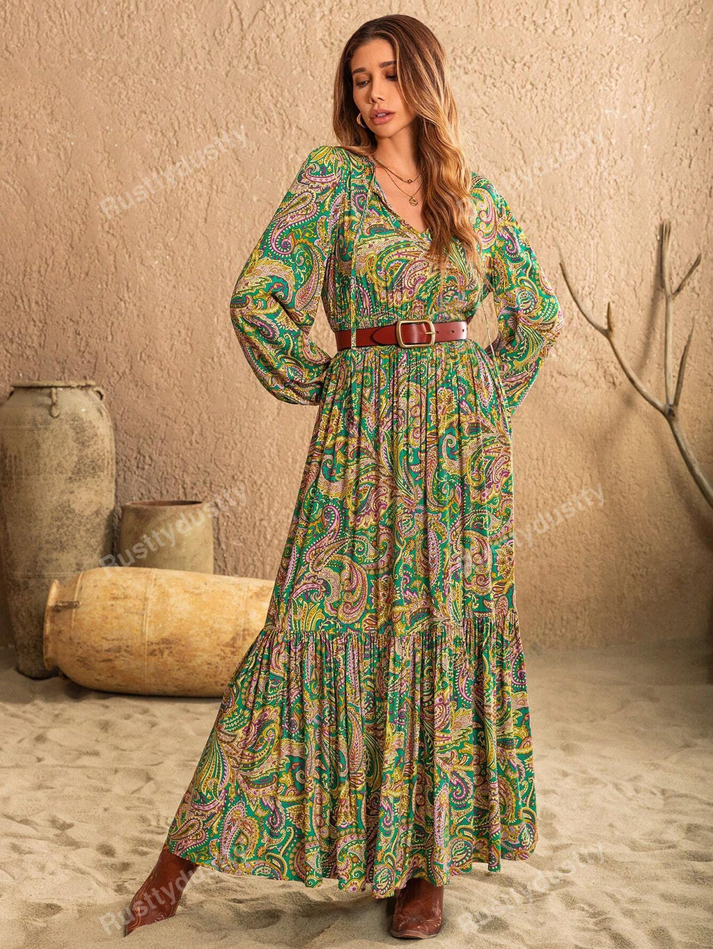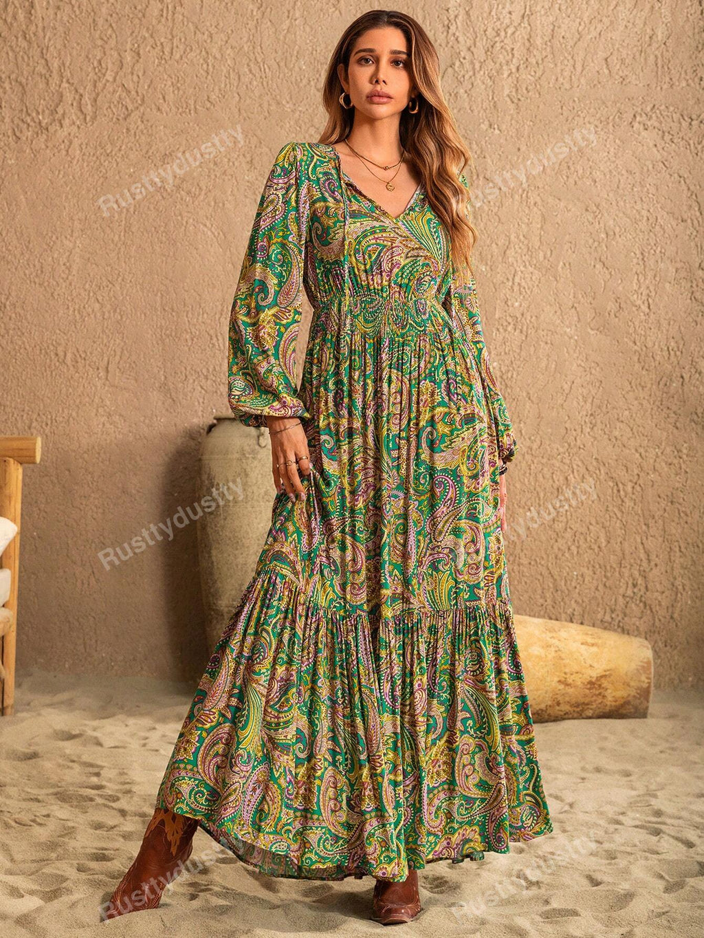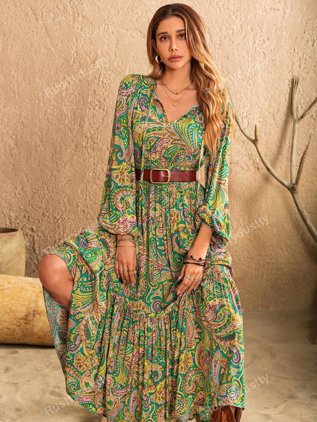 BELLAVOG Woman Floral V-Neck Long Sleeve Elegant Dress Normal Leisure Ou Vacation New Year Music Festival
