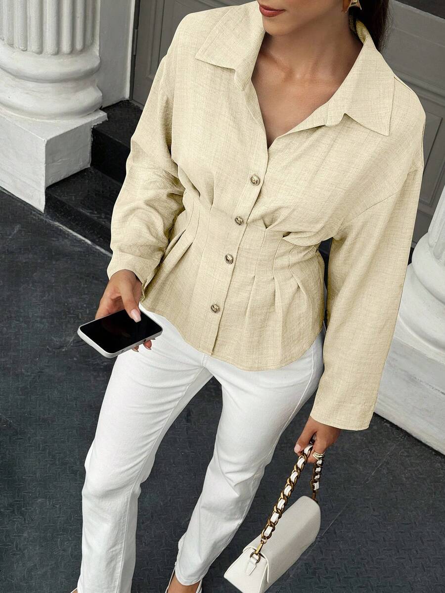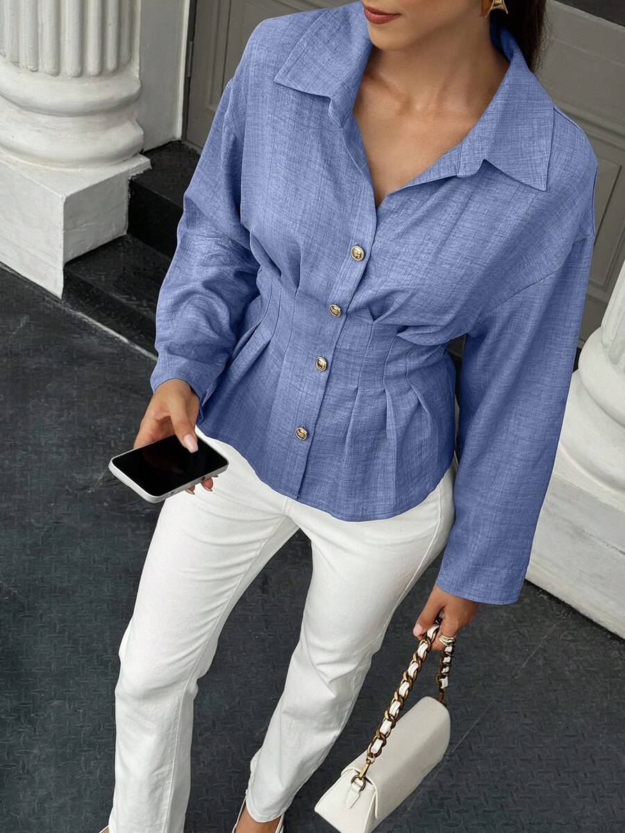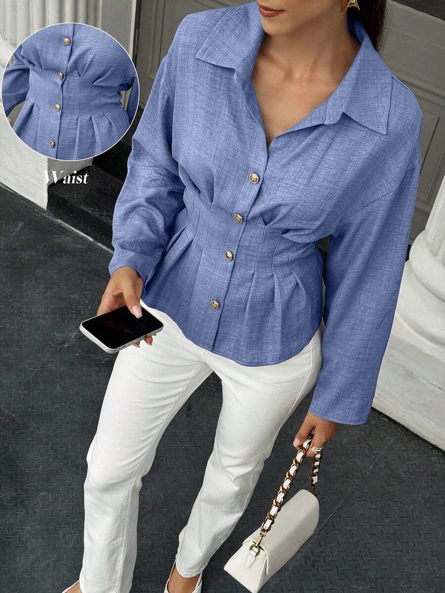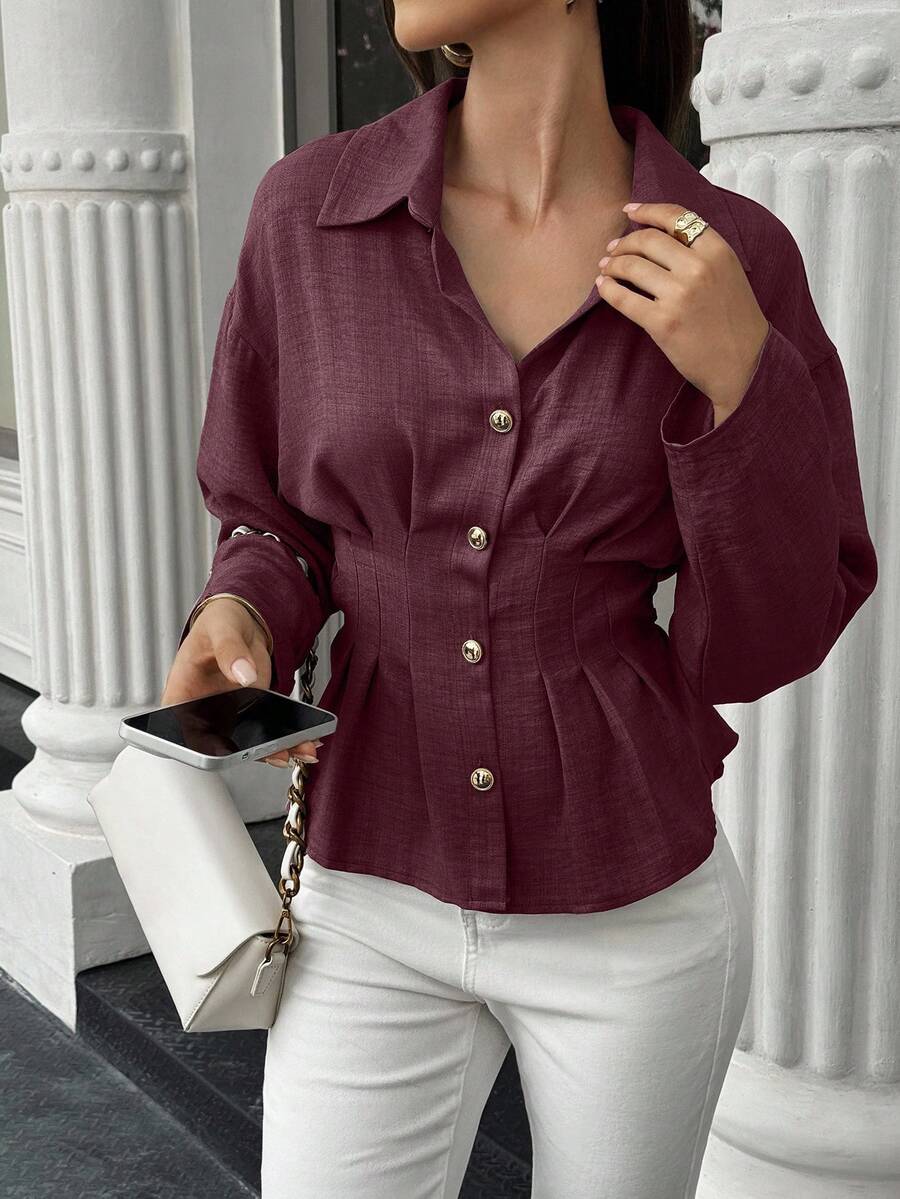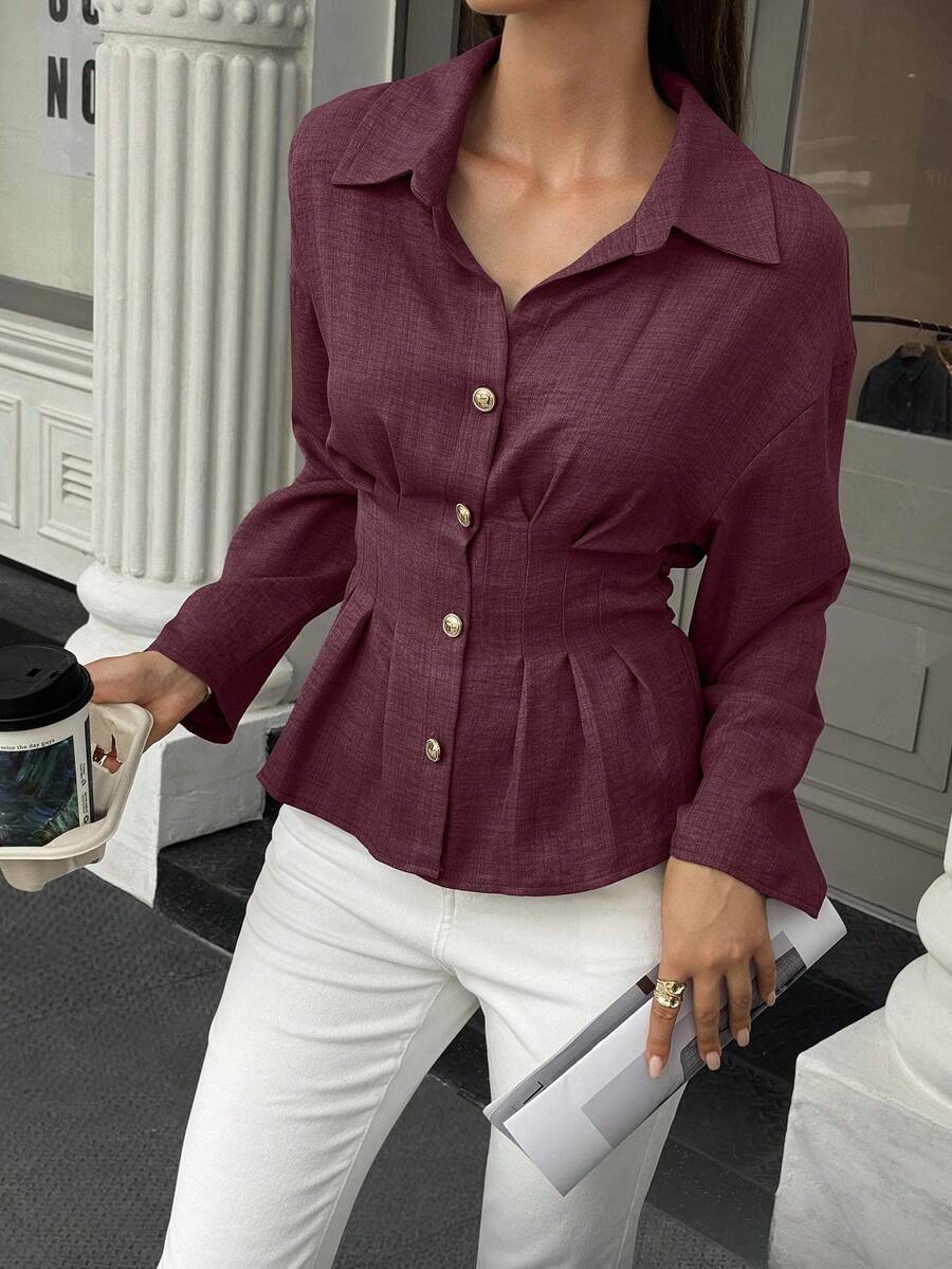 Selianne Women's Elegant Commuter Solid Color Pleated Waist Shirt Fall Cloth For Women
