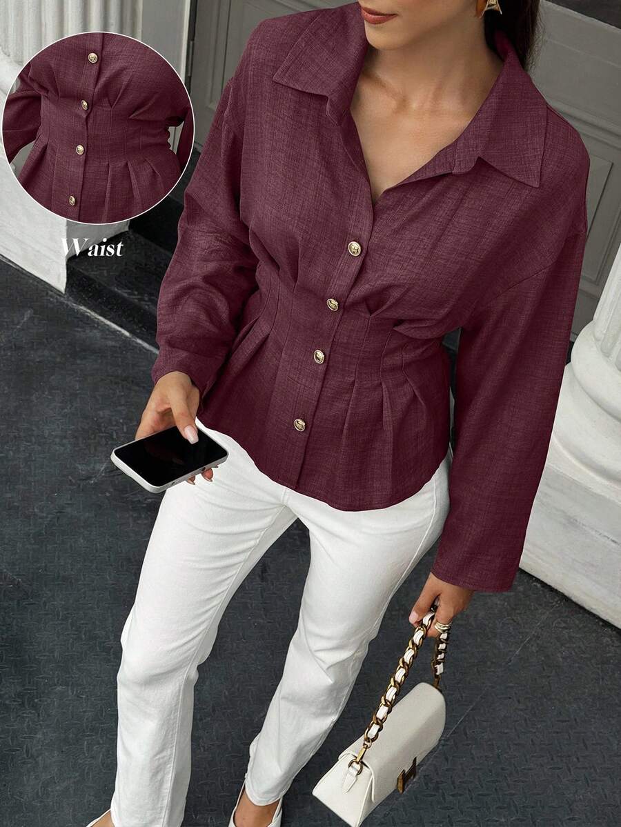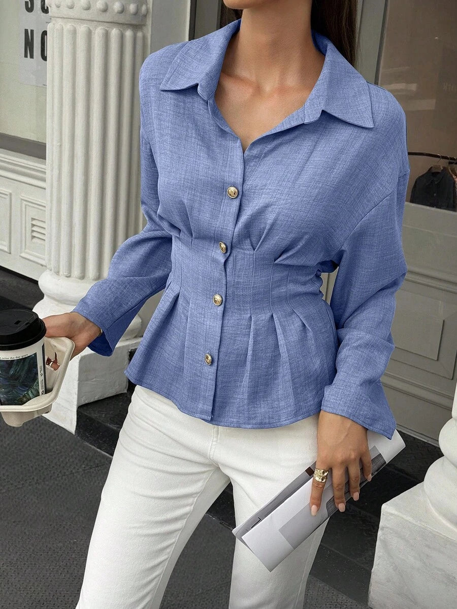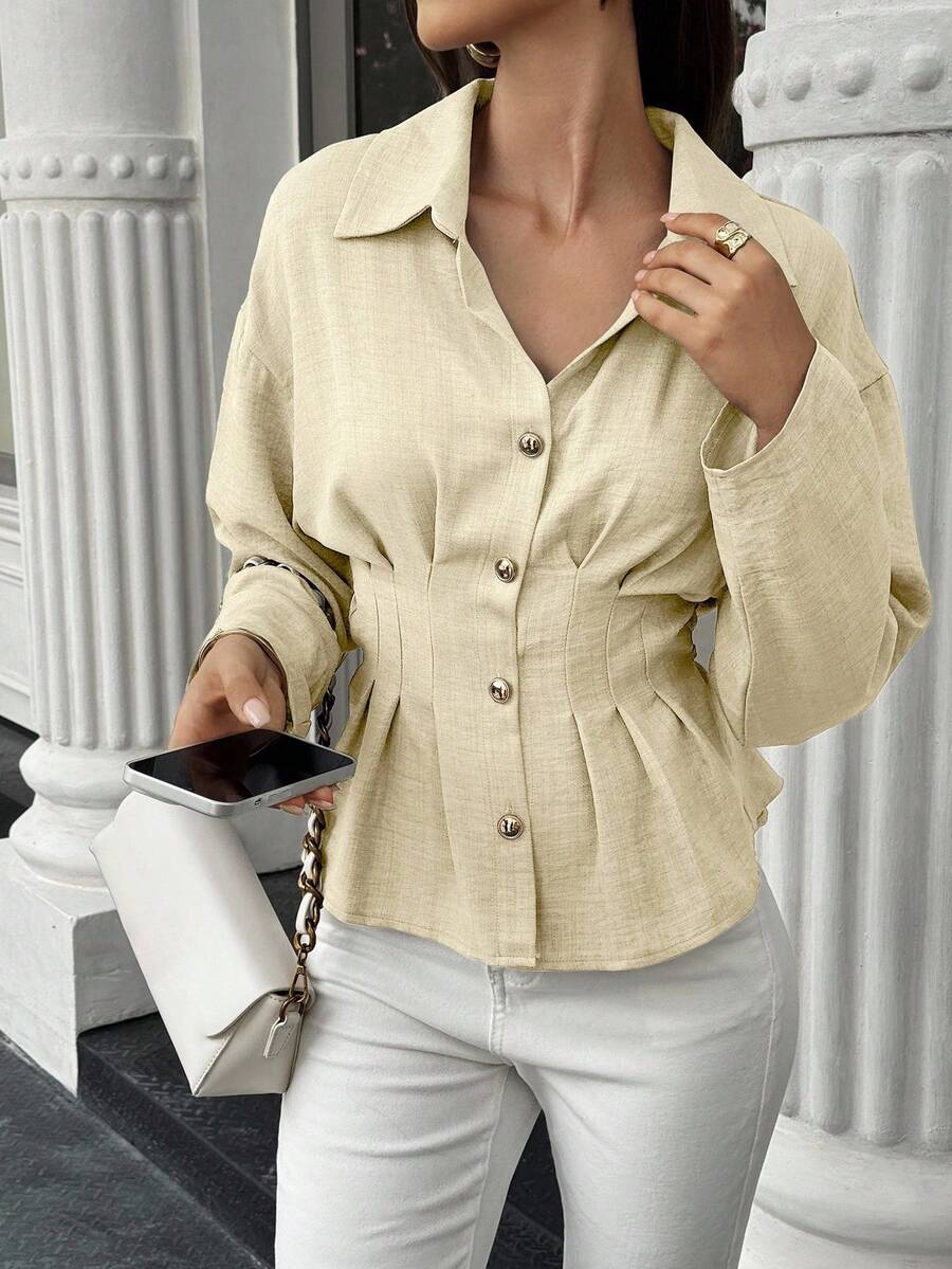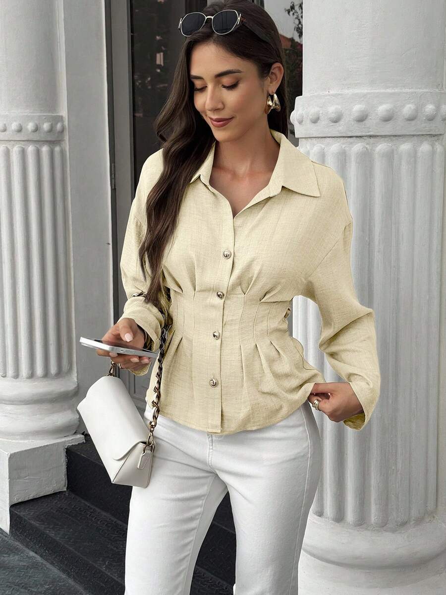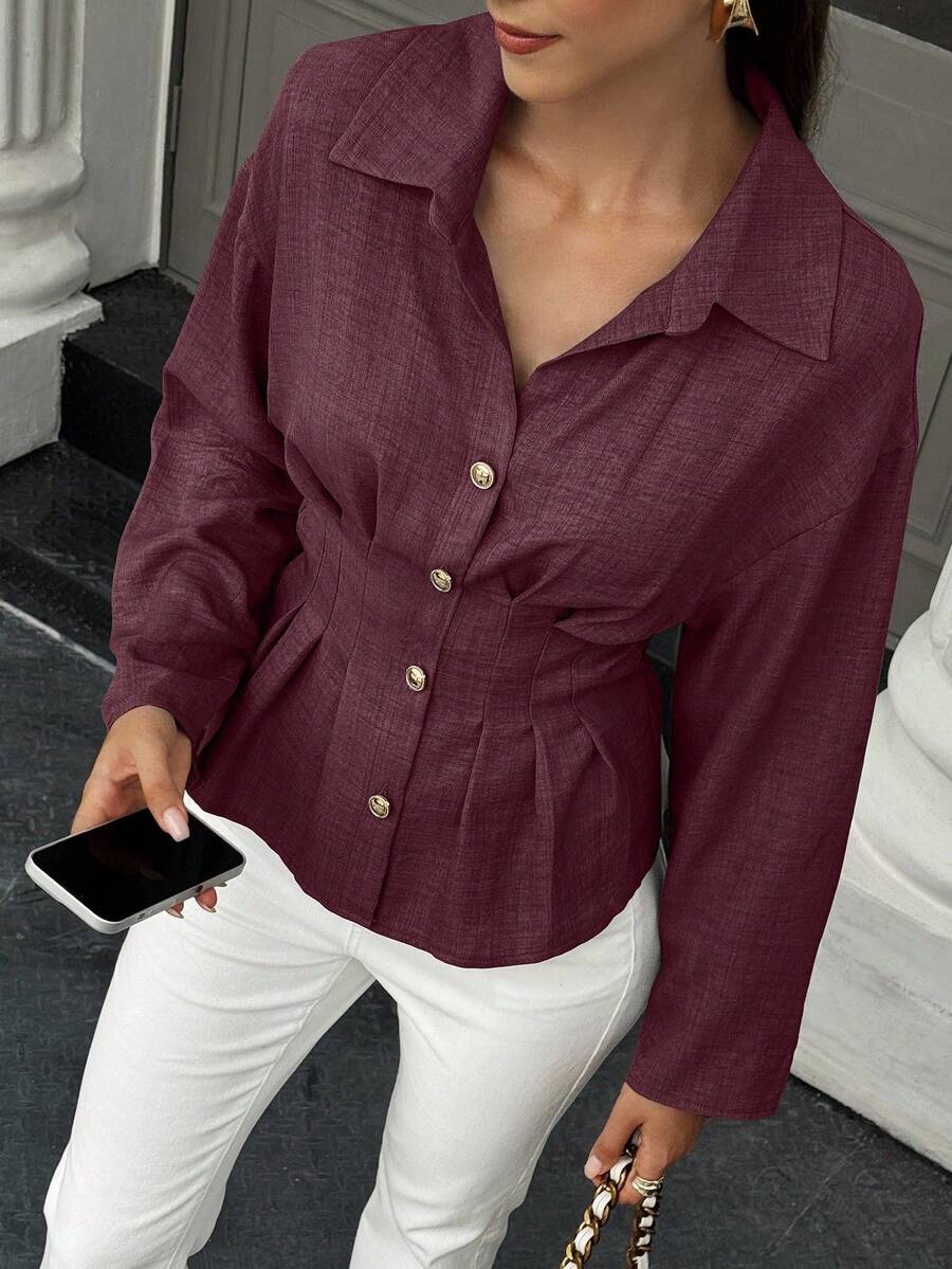 Selianne Women's Elegant Commuter Solid Color Pleated Waist Shirt Fall Cloth For Women
