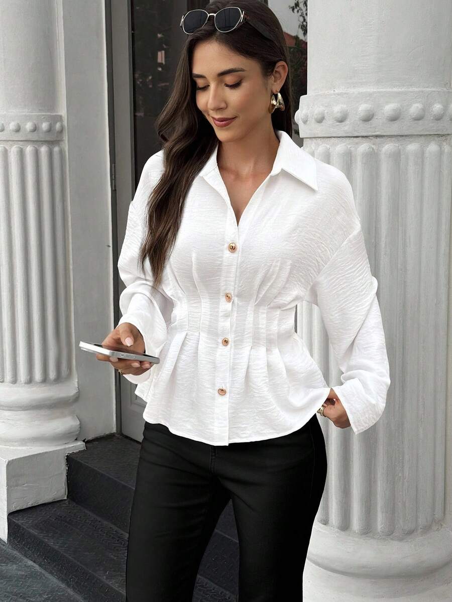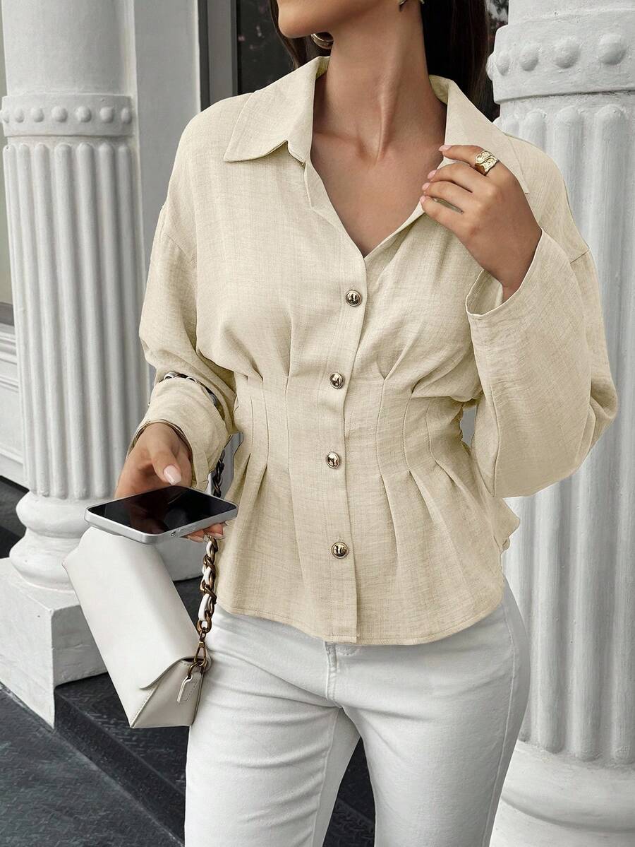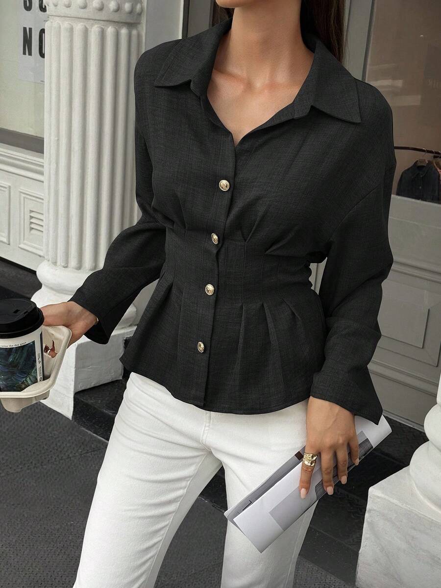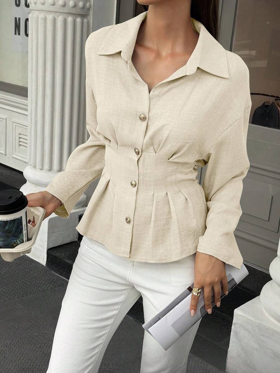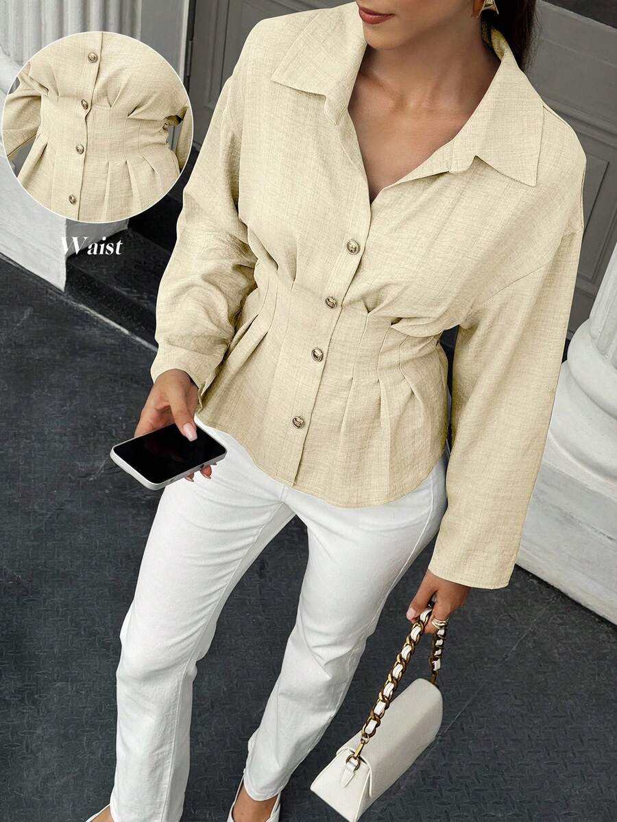 Selianne Women's Elegant Commuter Solid Color Pleated Waist Shirt Fall Cloth For Women