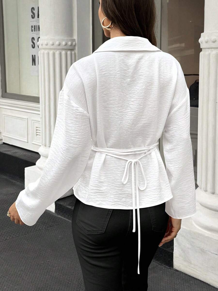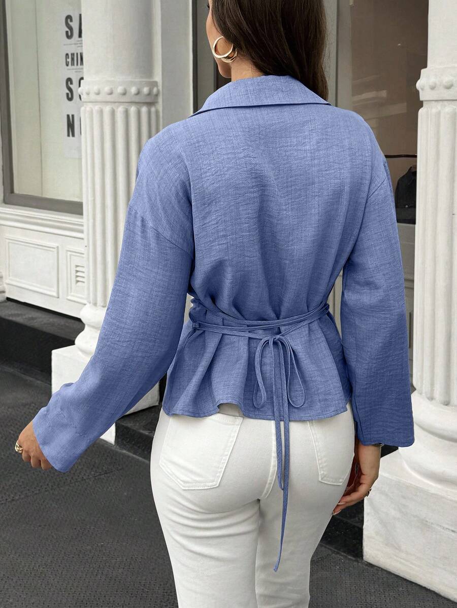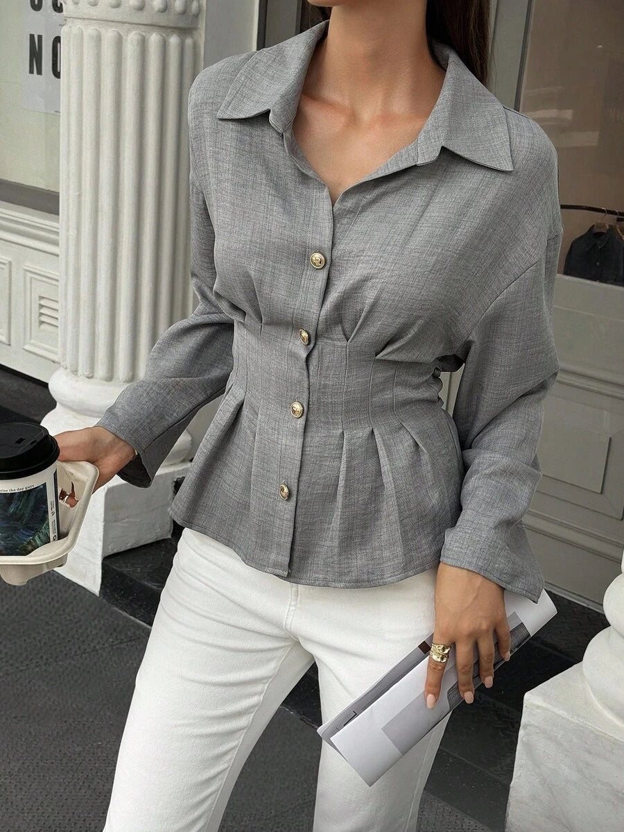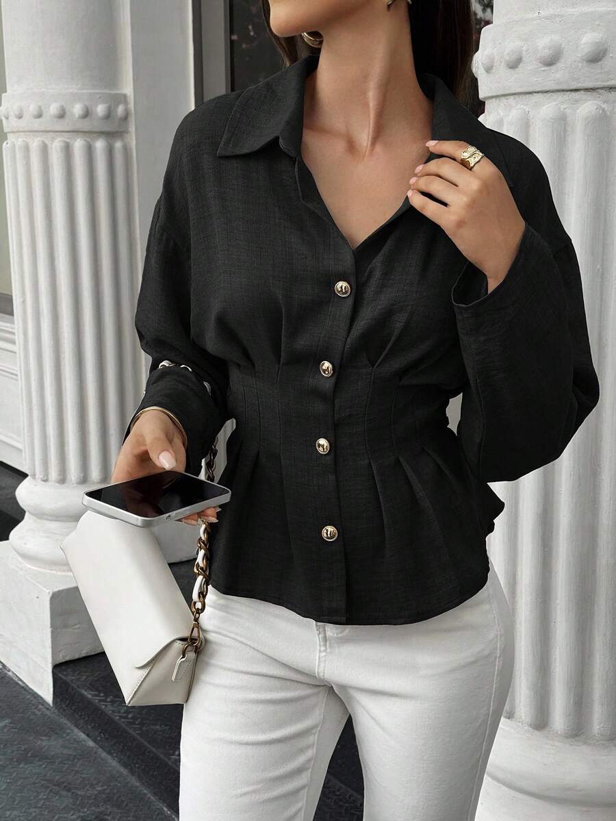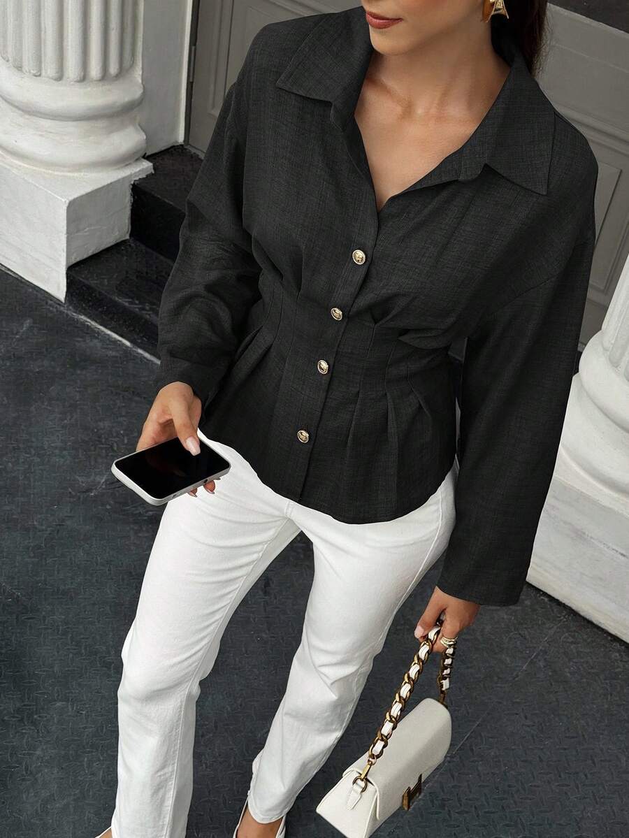 Selianne Women's Elegant Commuter Solid Color Pleated Waist Shirt Fall Cloth For Women