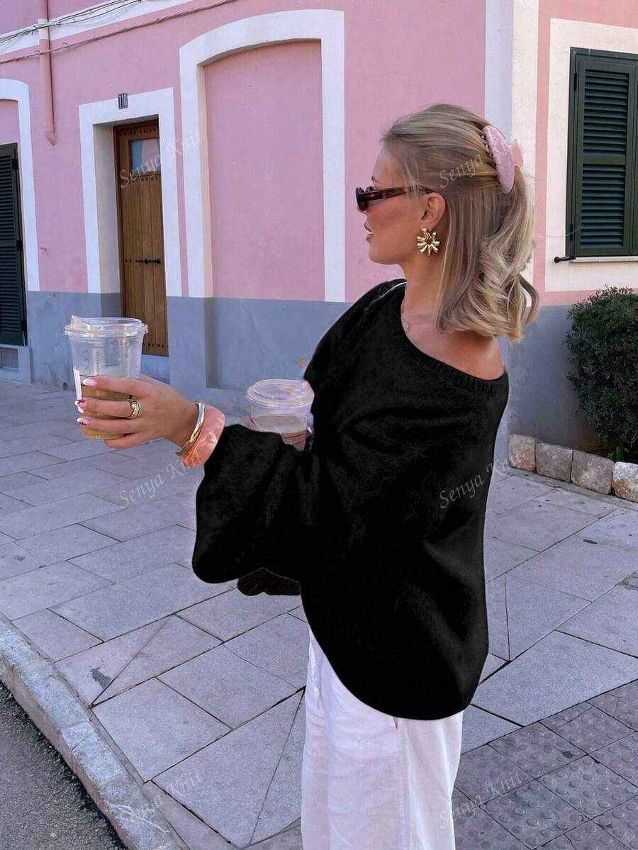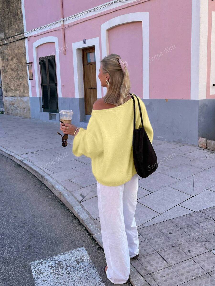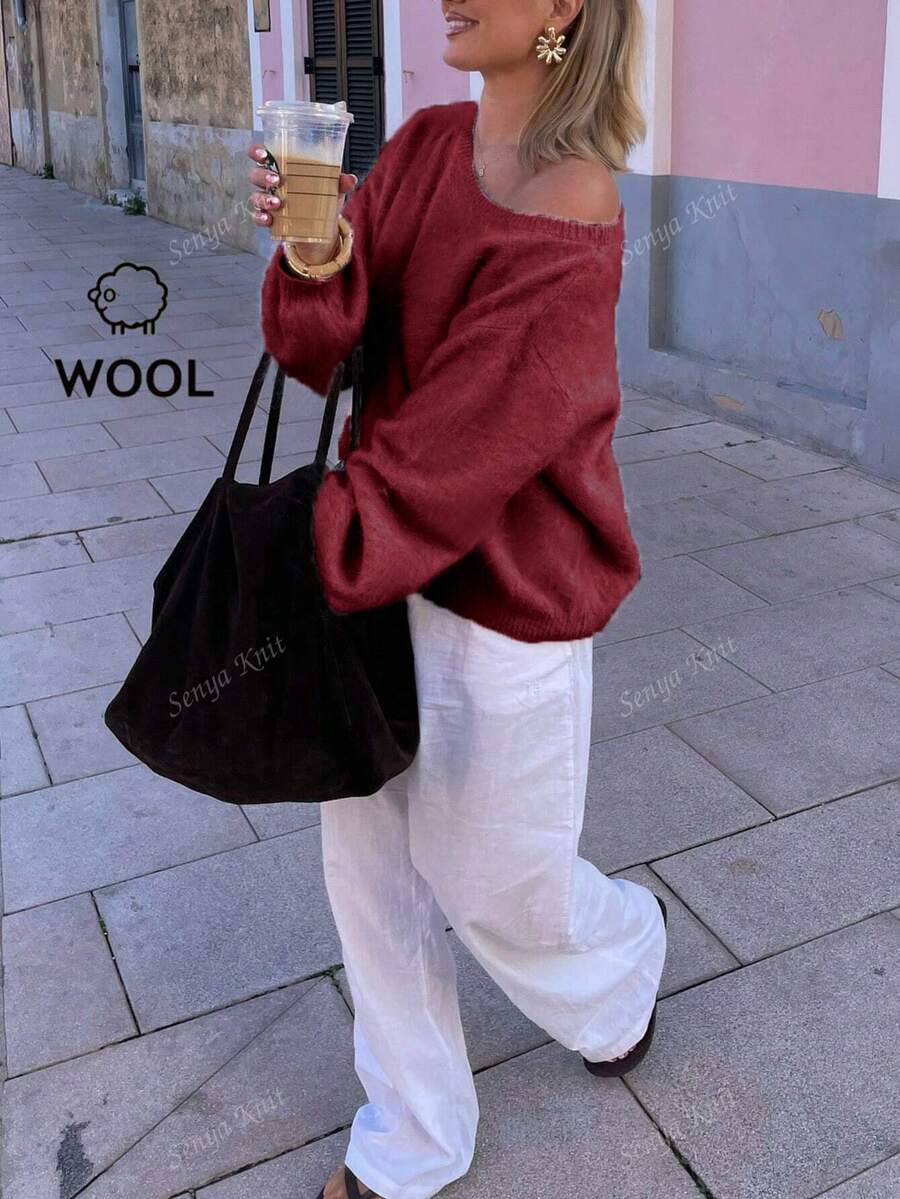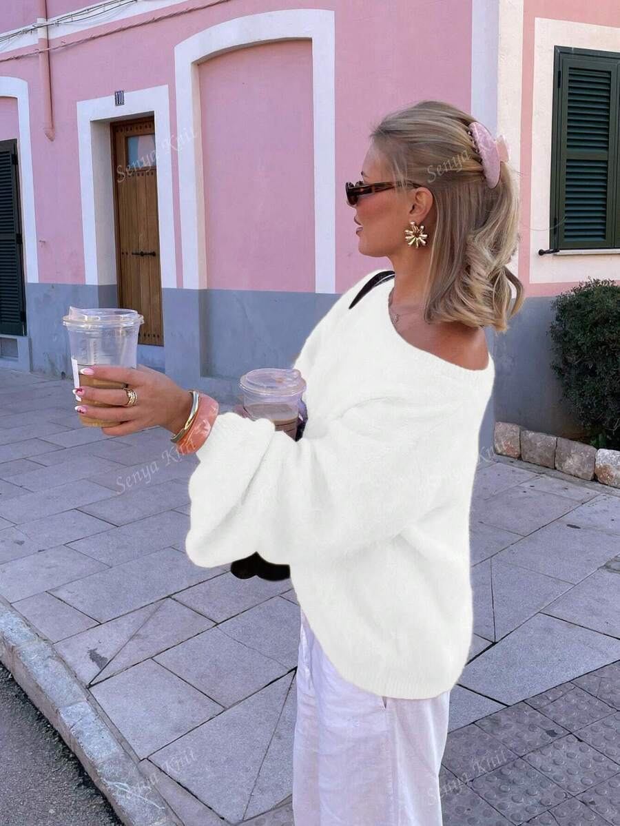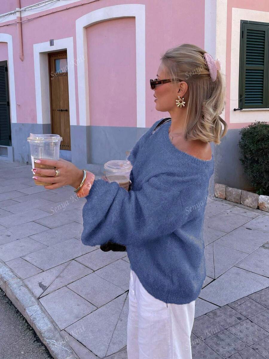 Senya Women's New Casual Solid Slouchy Shoulder Long SLeeve Sweater,Romantic Pink,Ultra Loose Knit Tops