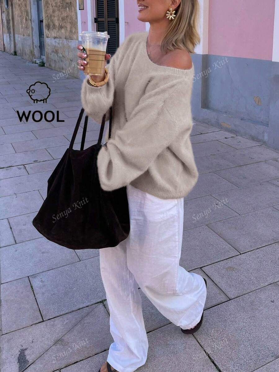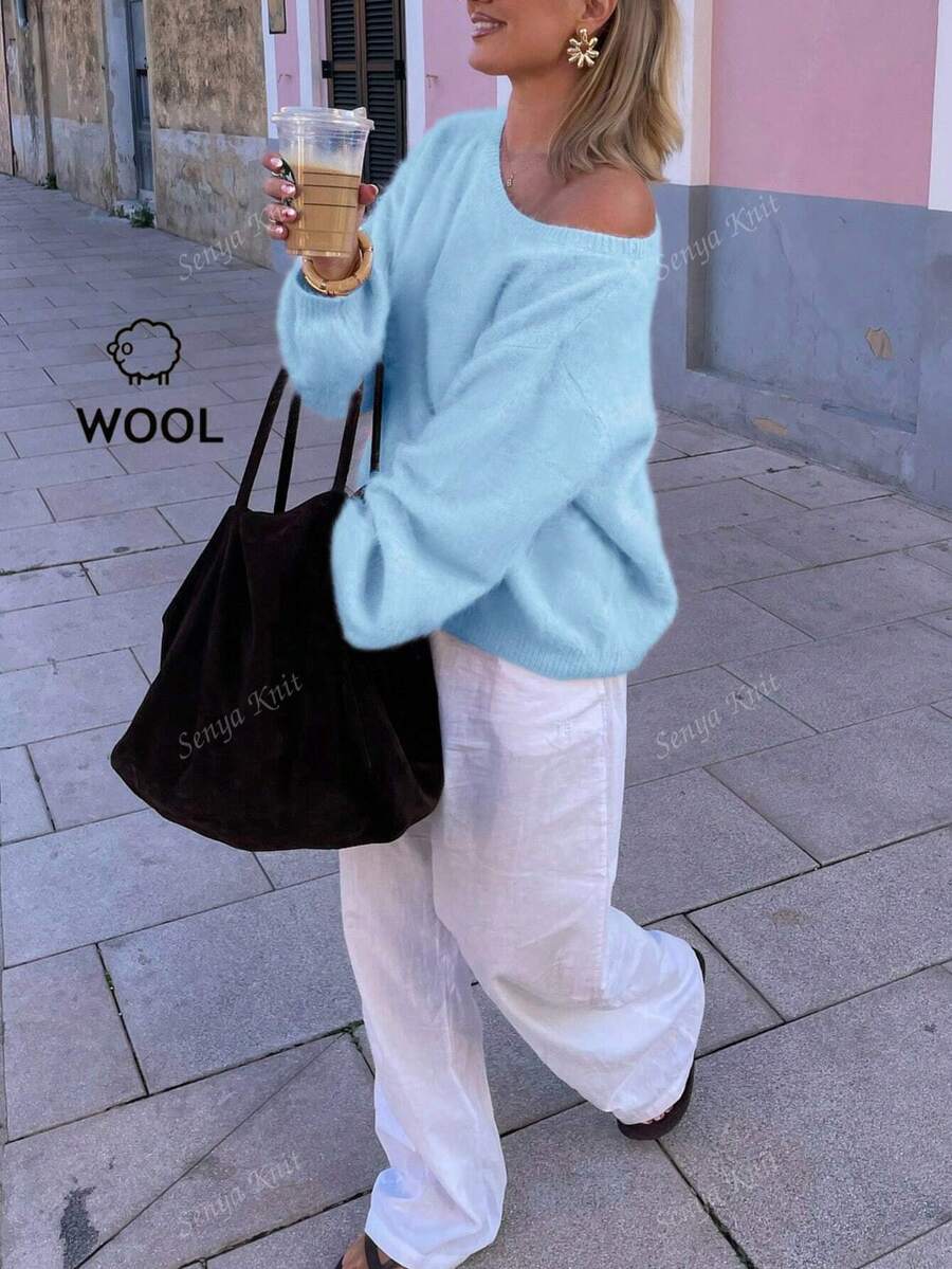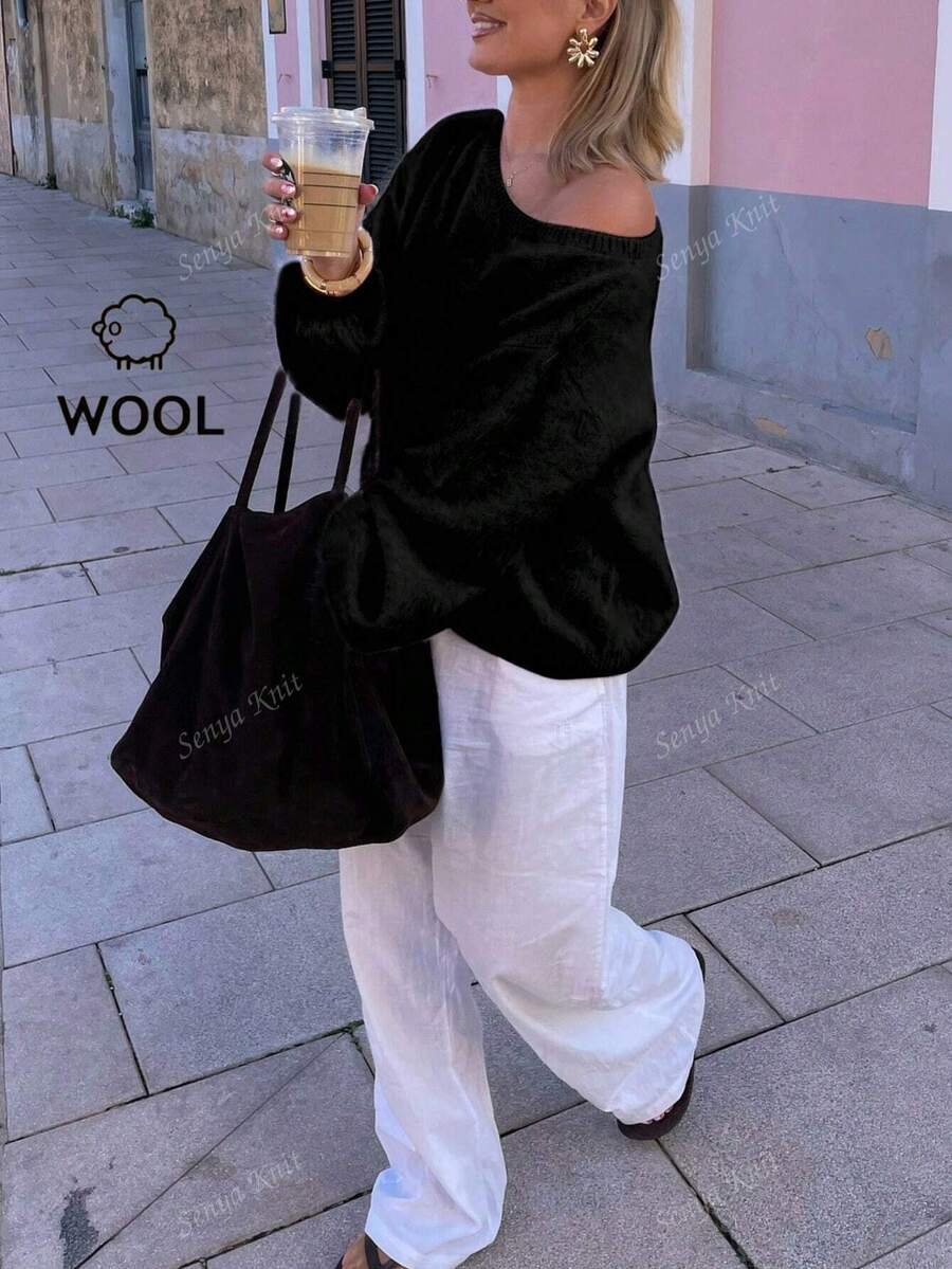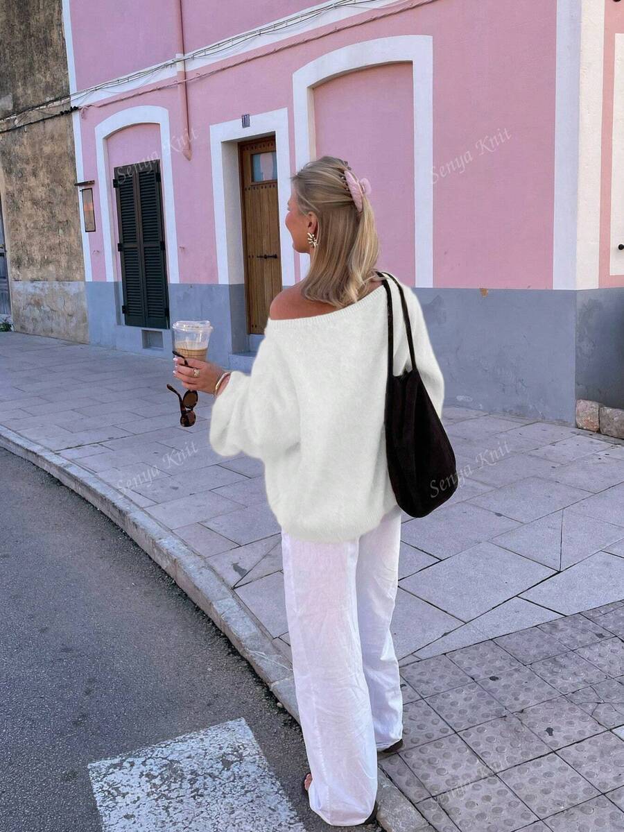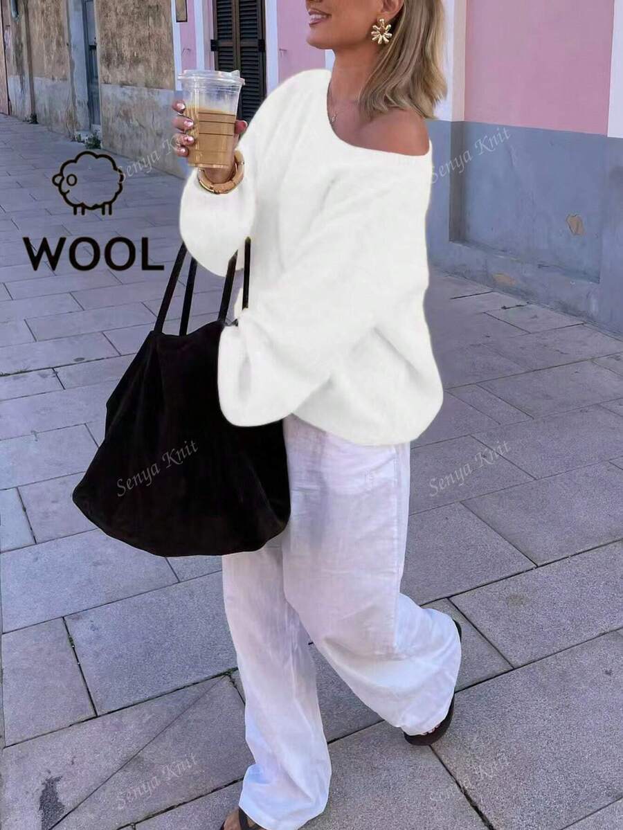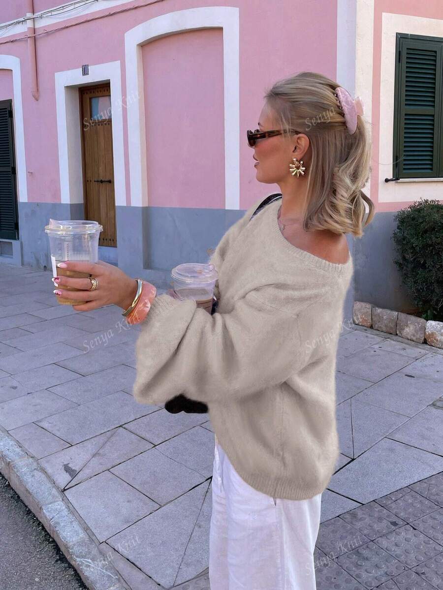 Senya Women's New Casual Solid Slouchy Shoulder Long SLeeve Sweater,Romantic Pink,Ultra Loose Knit Tops