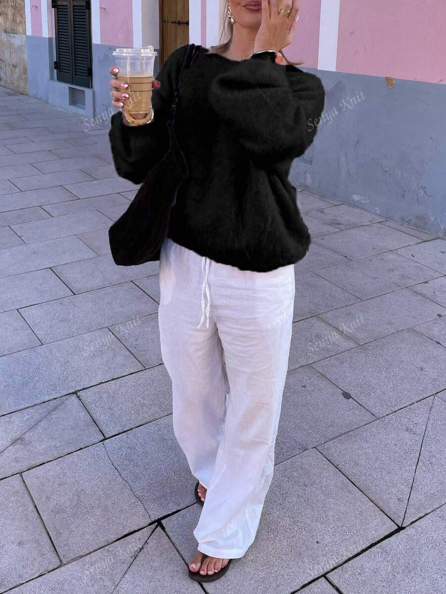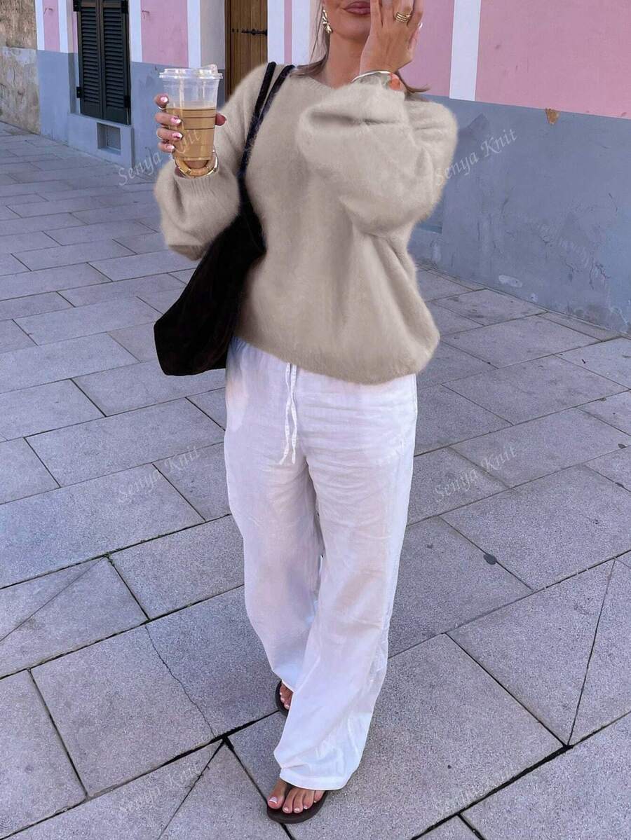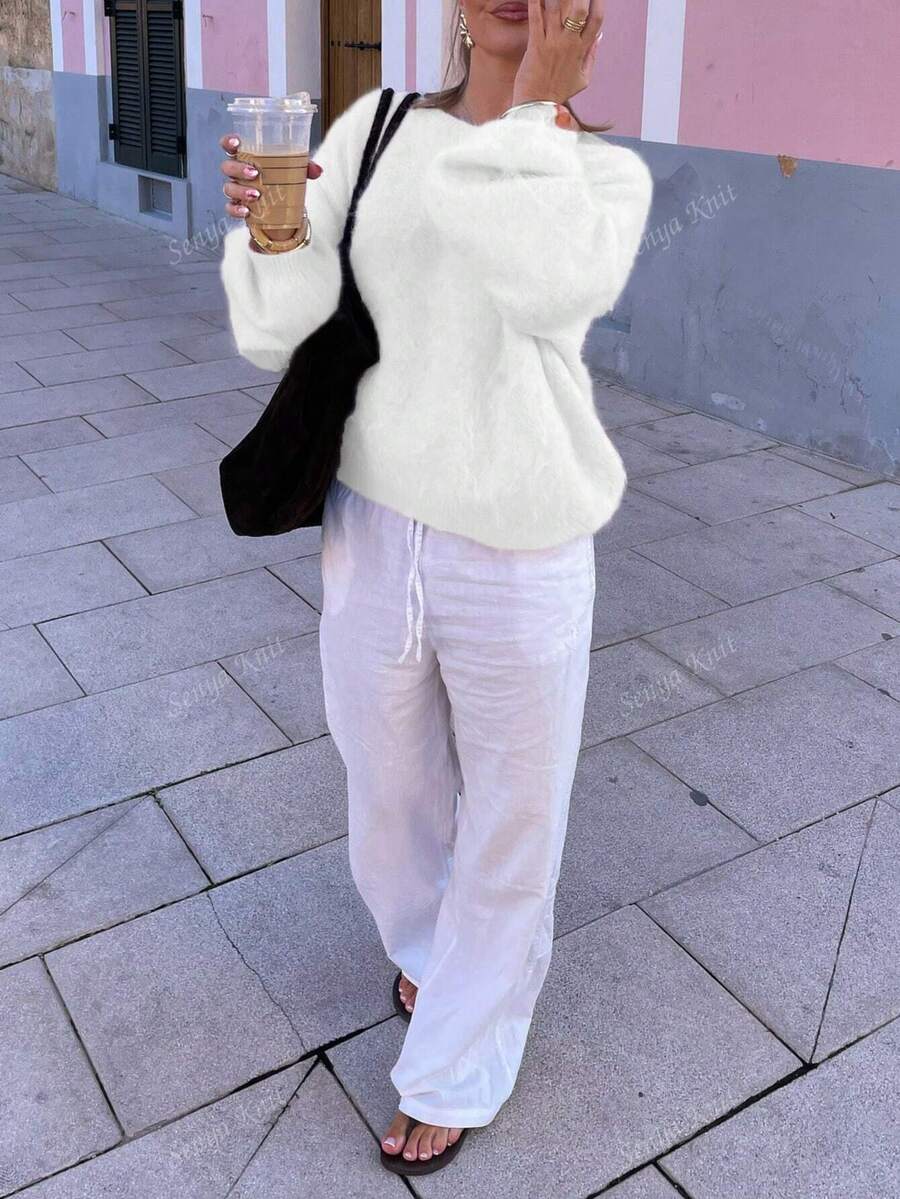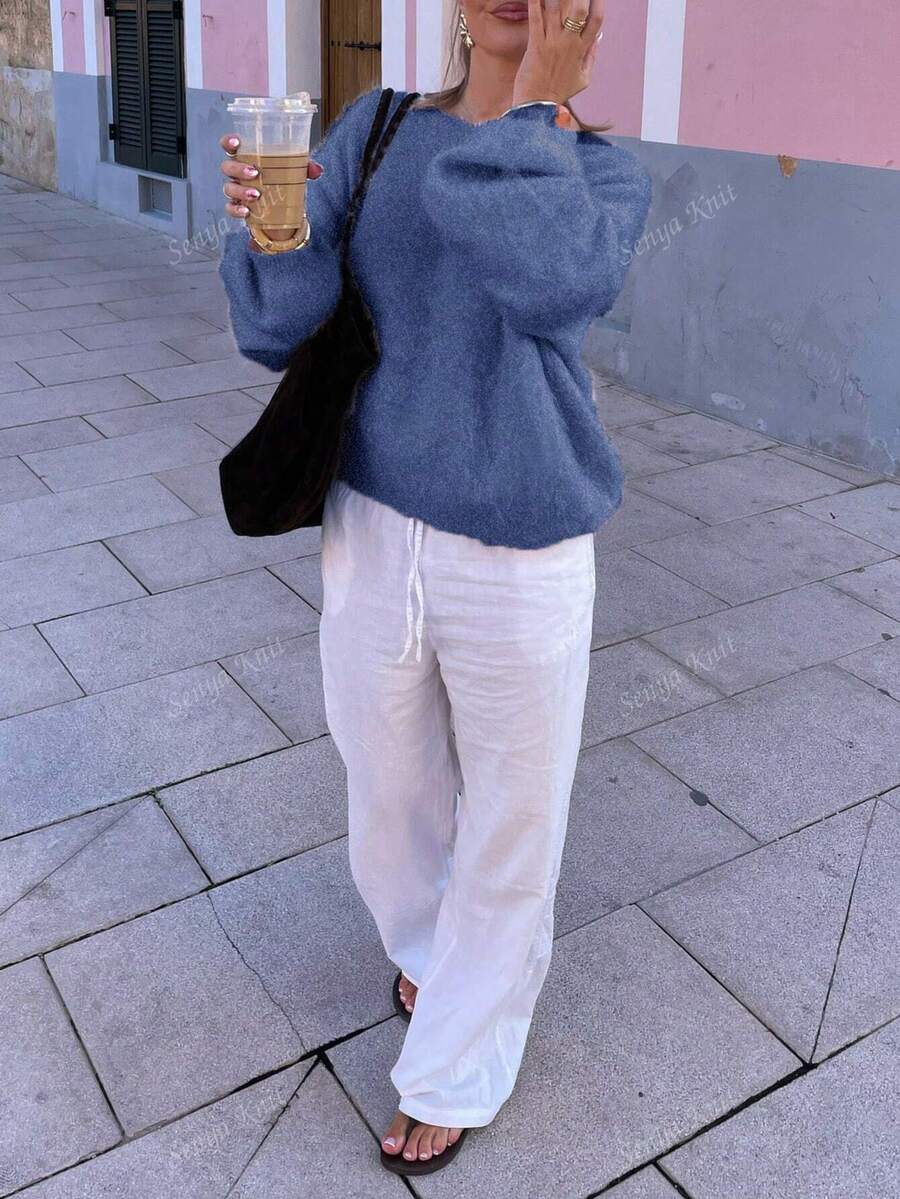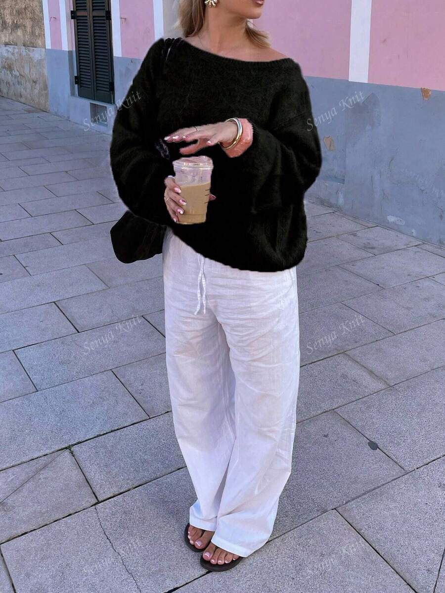 Senya Women's New Casual Solid Slouchy Shoulder Long SLeeve Sweater,Romantic Pink,Ultra Loose Knit Tops
