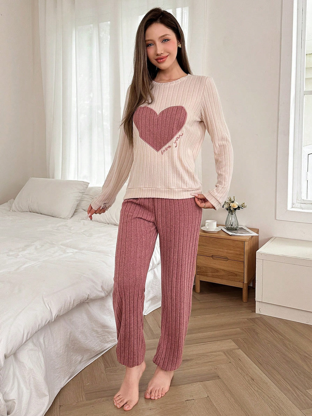 Set pidžama sa vezenim srcem i slovom, dugih rukava, za jesen/zimu