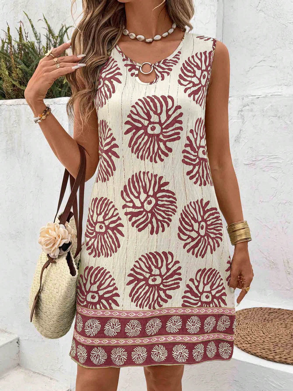 MIU AZRA Elegantna mini suknja s perlama u crvenom tweedu za žene