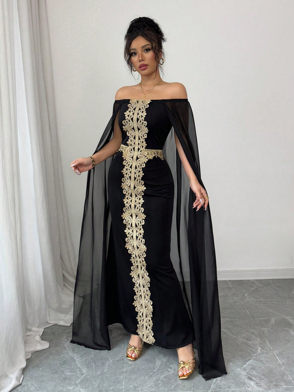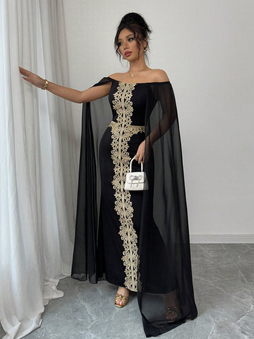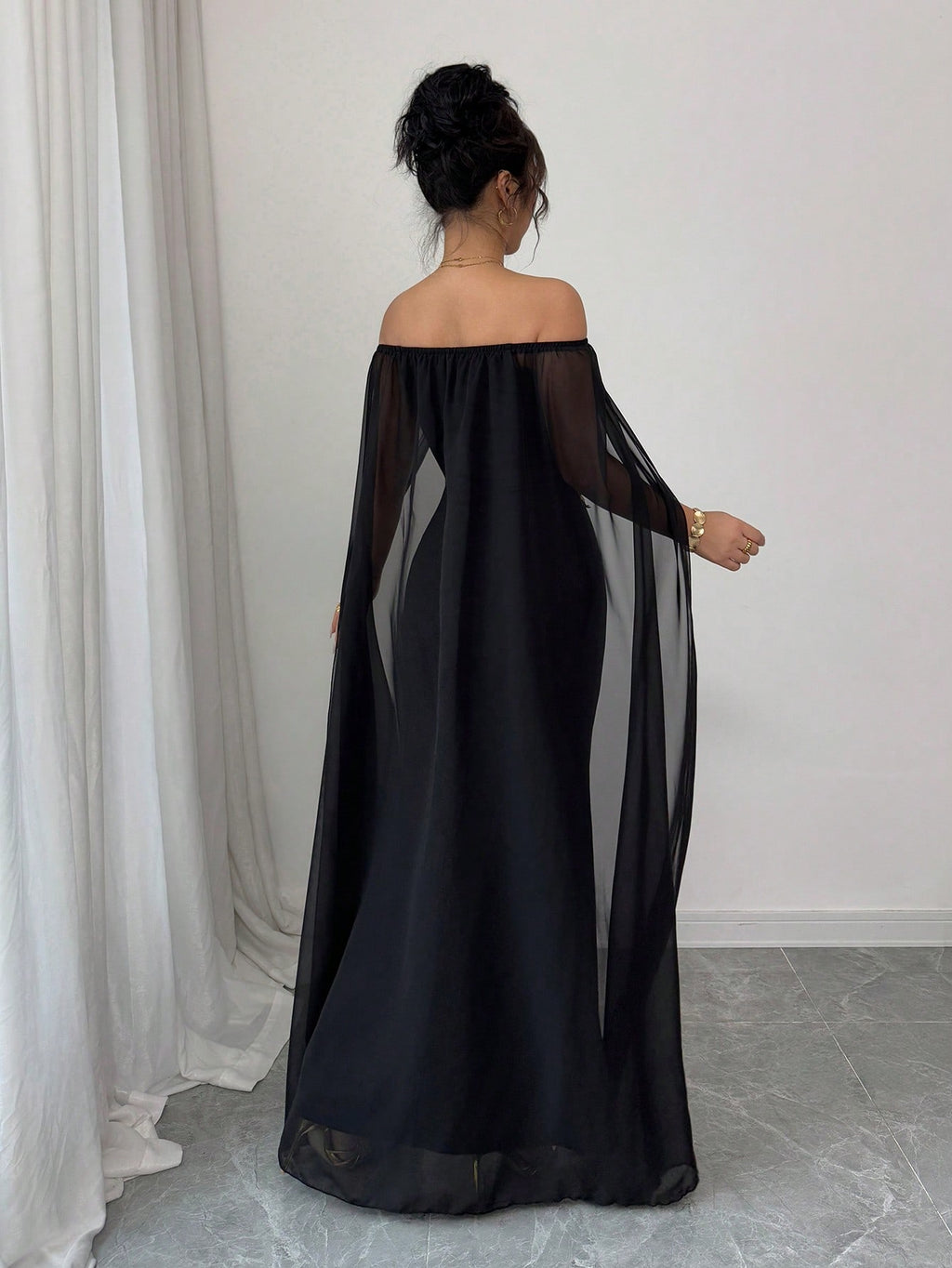 MIU AZRA Elenzya Asimetrična Prugasta Majica sa Dugim Rukavima za Žene, Elegantna Romantična, Casual i Komutna Odjeća, Haljina za Noć Veštica, Crna