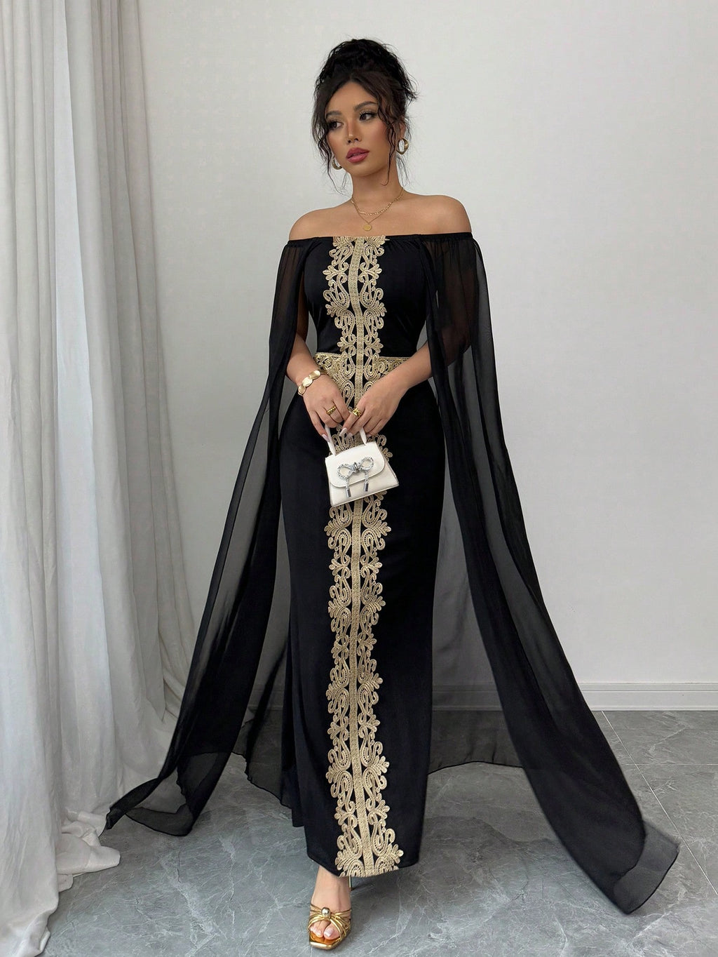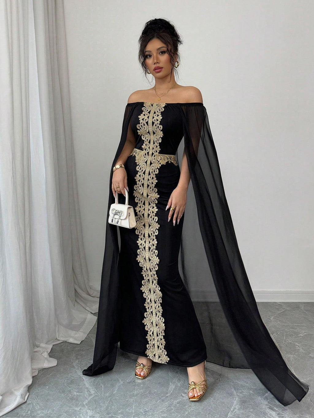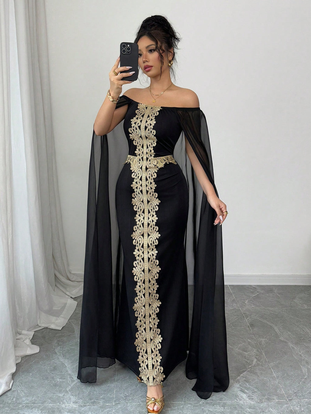 MIU AZRA Elenzya Asimetrična Prugasta Majica sa Dugim Rukavima za Žene, Elegantna Romantična, Casual i Komutna Odjeća, Haljina za Noć Veštica, Crna