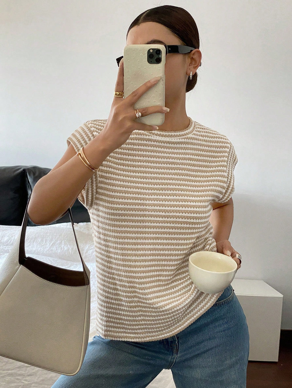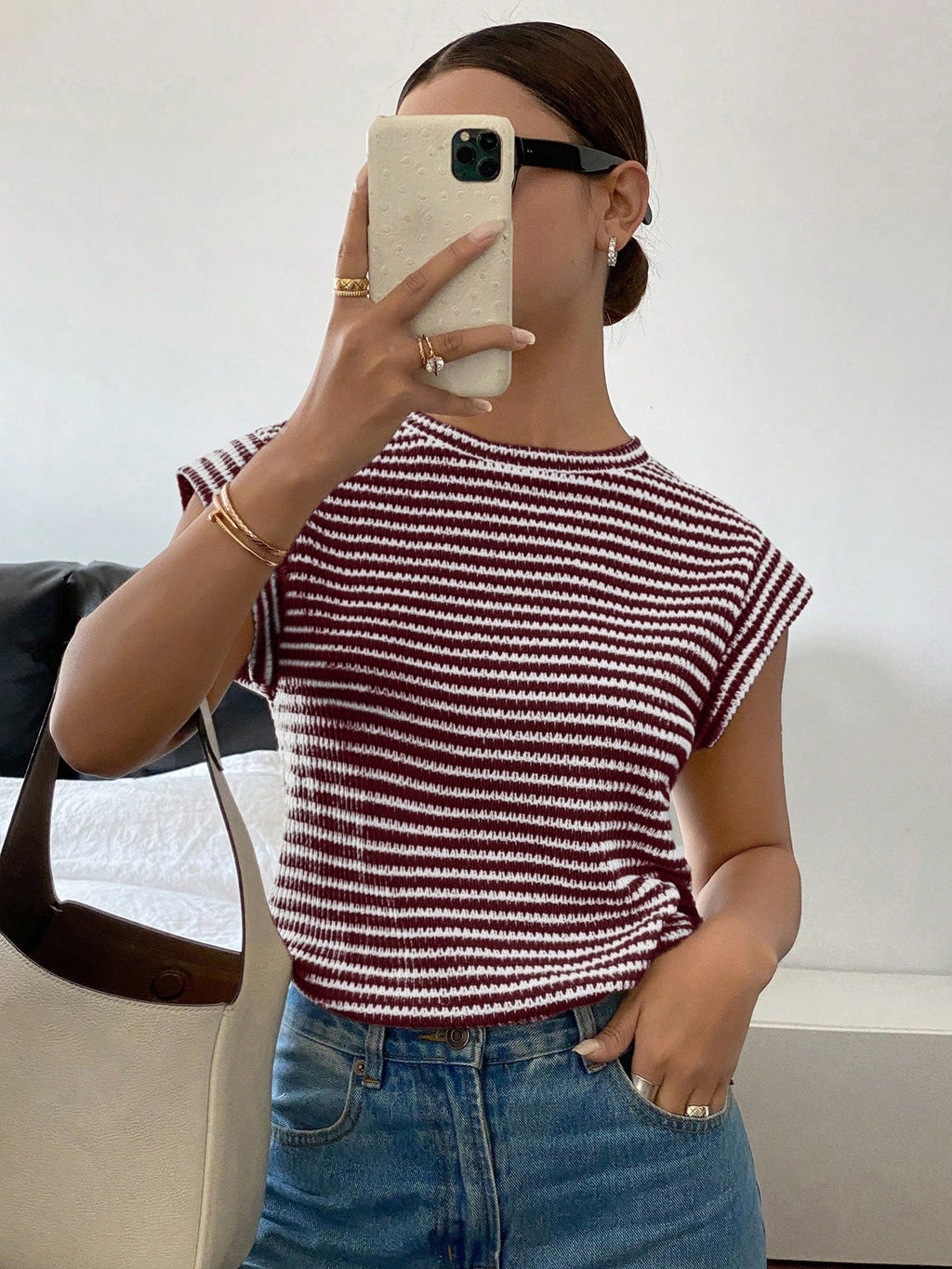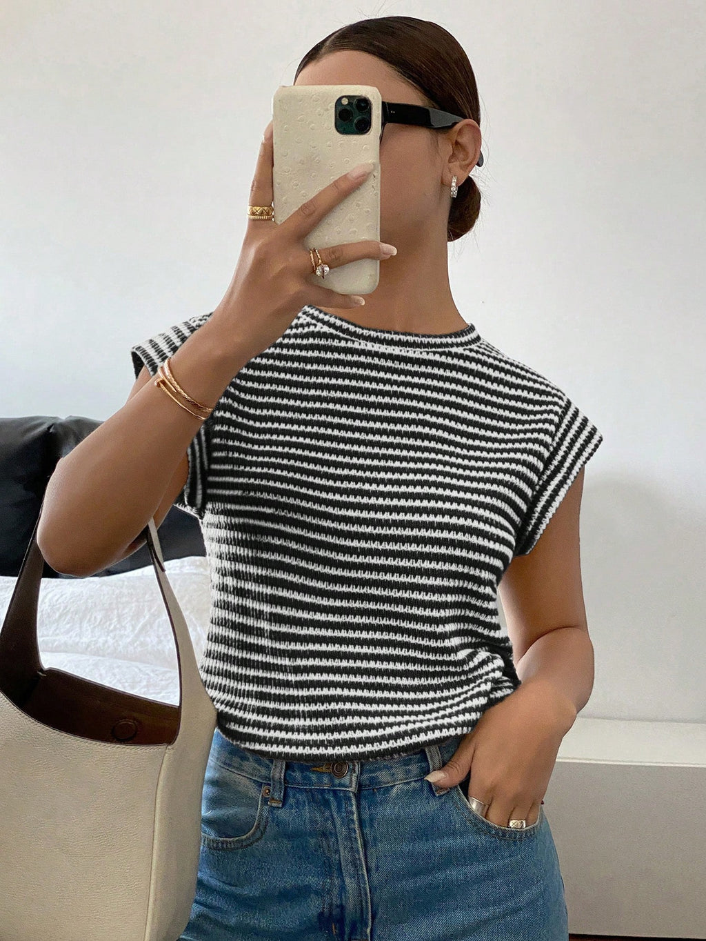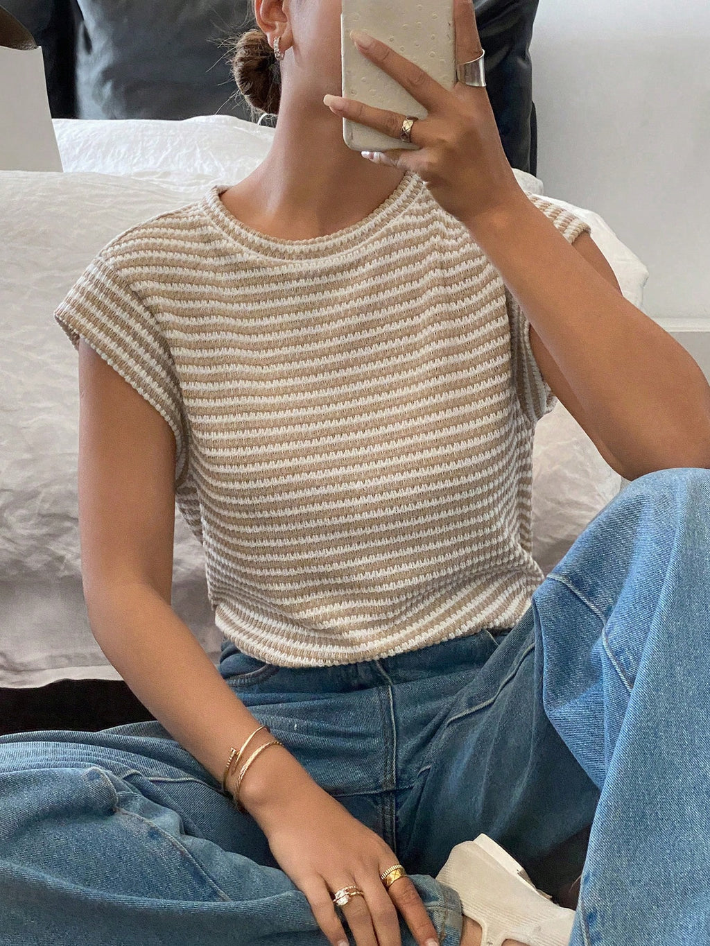 BELLAVOG Women Striped Round Neck Short Sleeve Casual T-Shirt