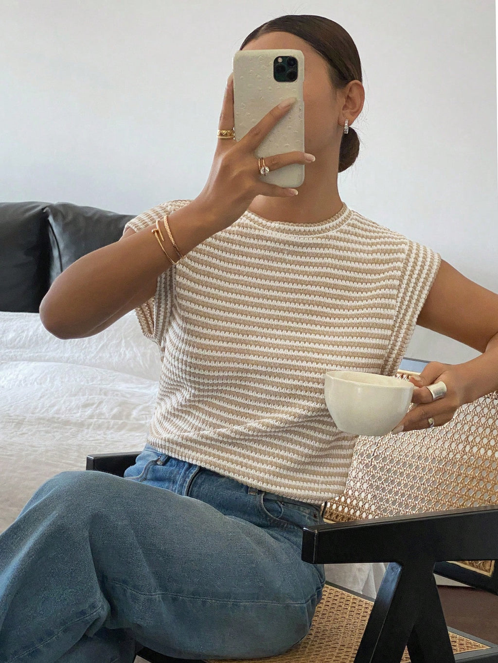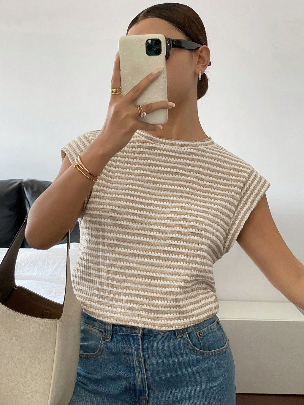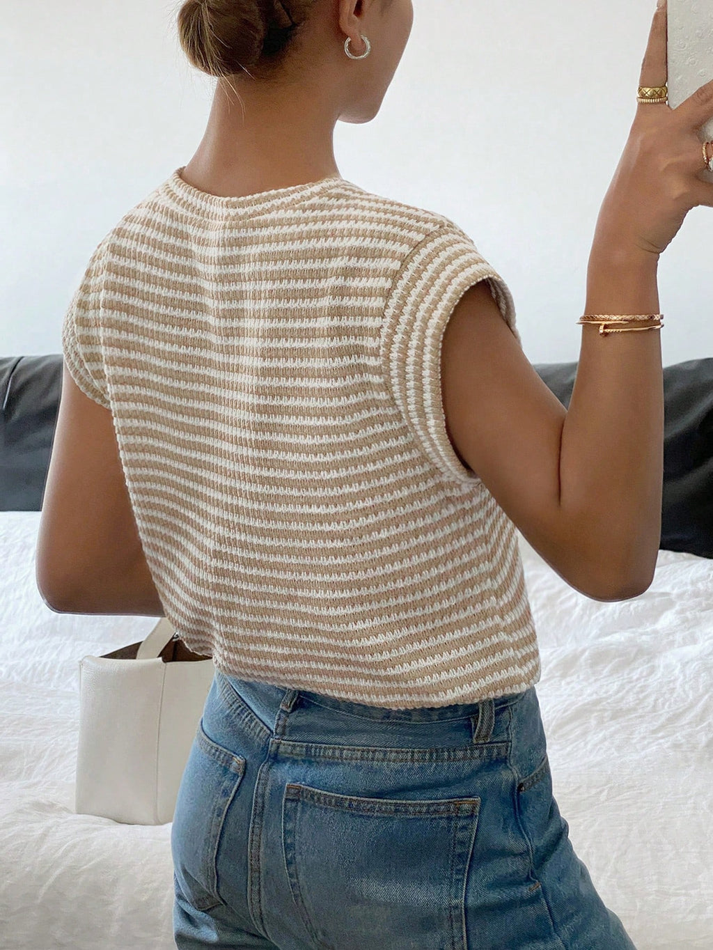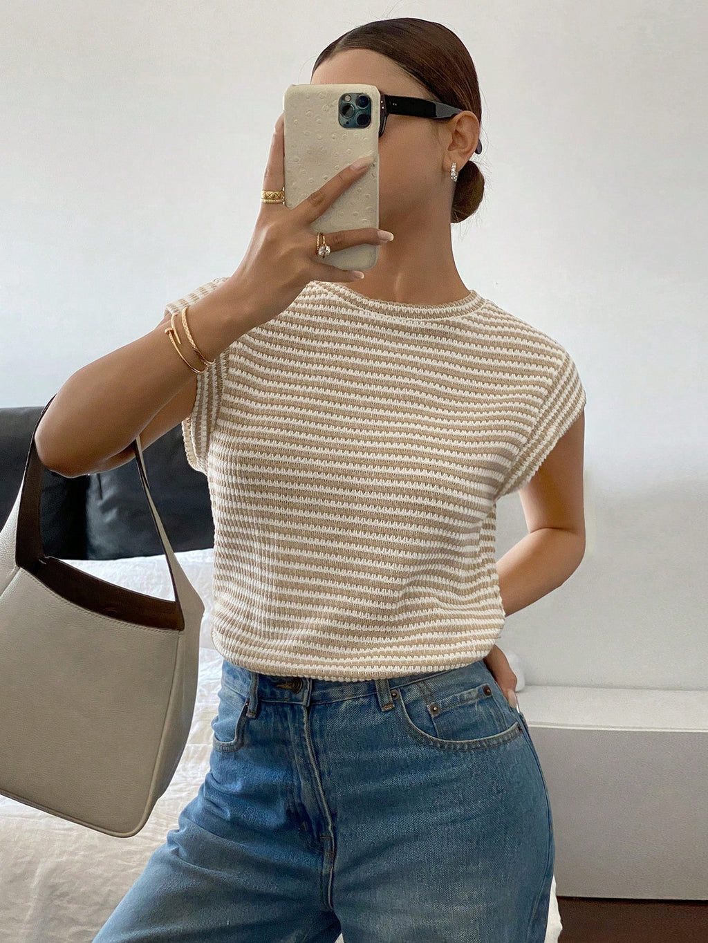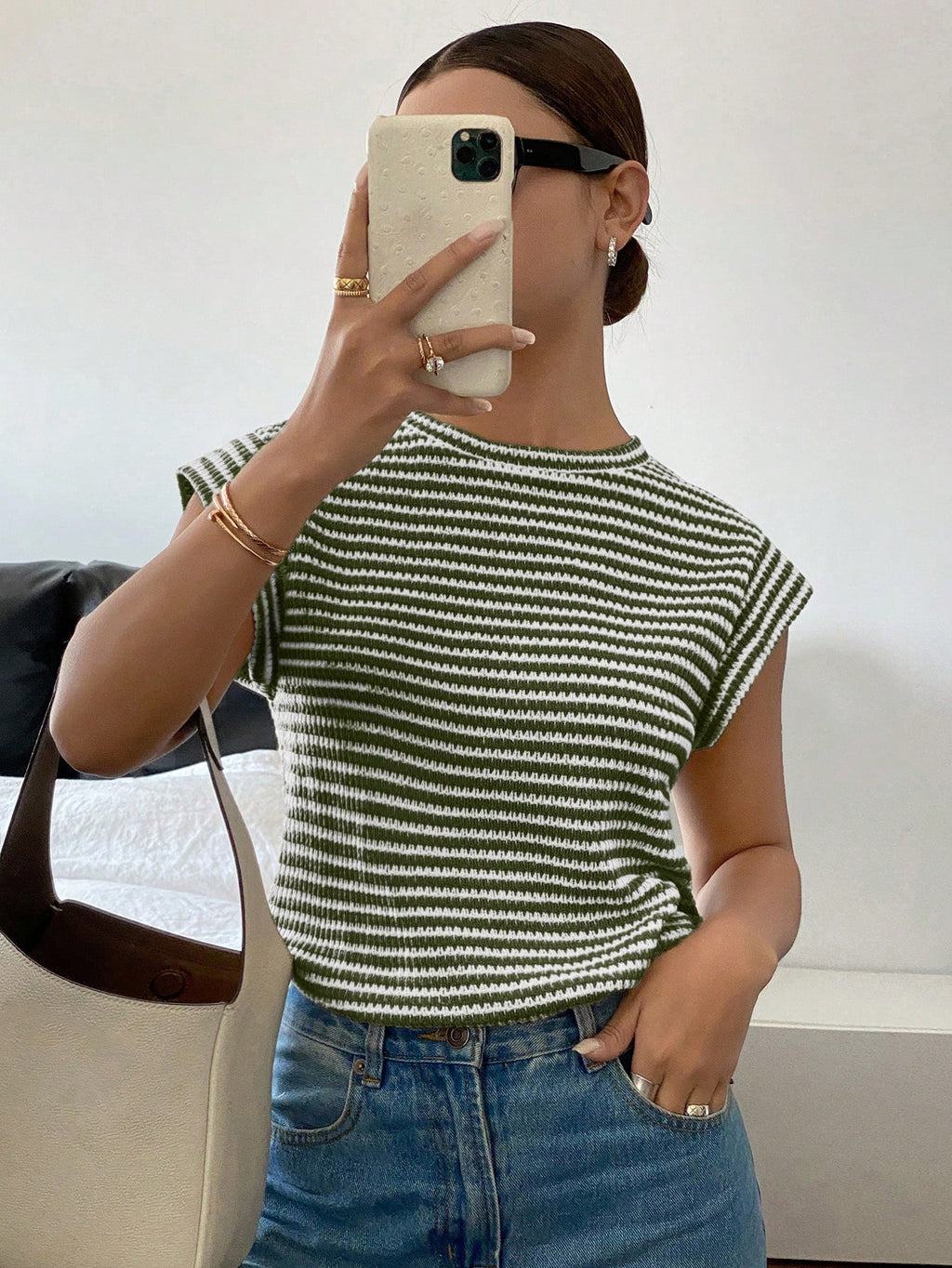 BELLAVOG Women Striped Round Neck Short Sleeve Casual T-Shirt