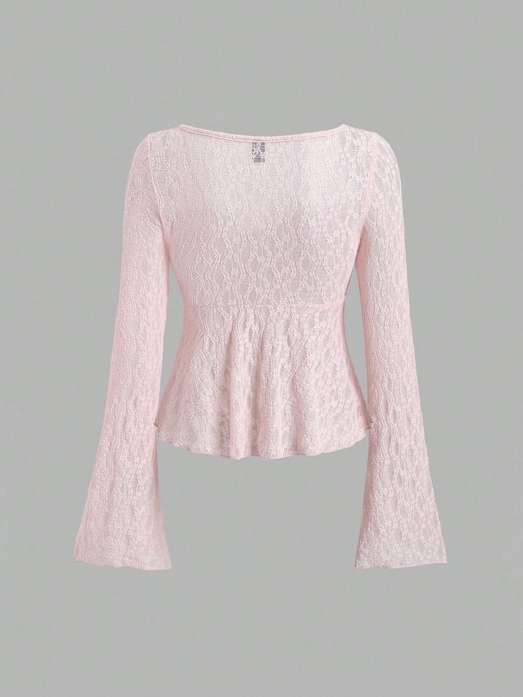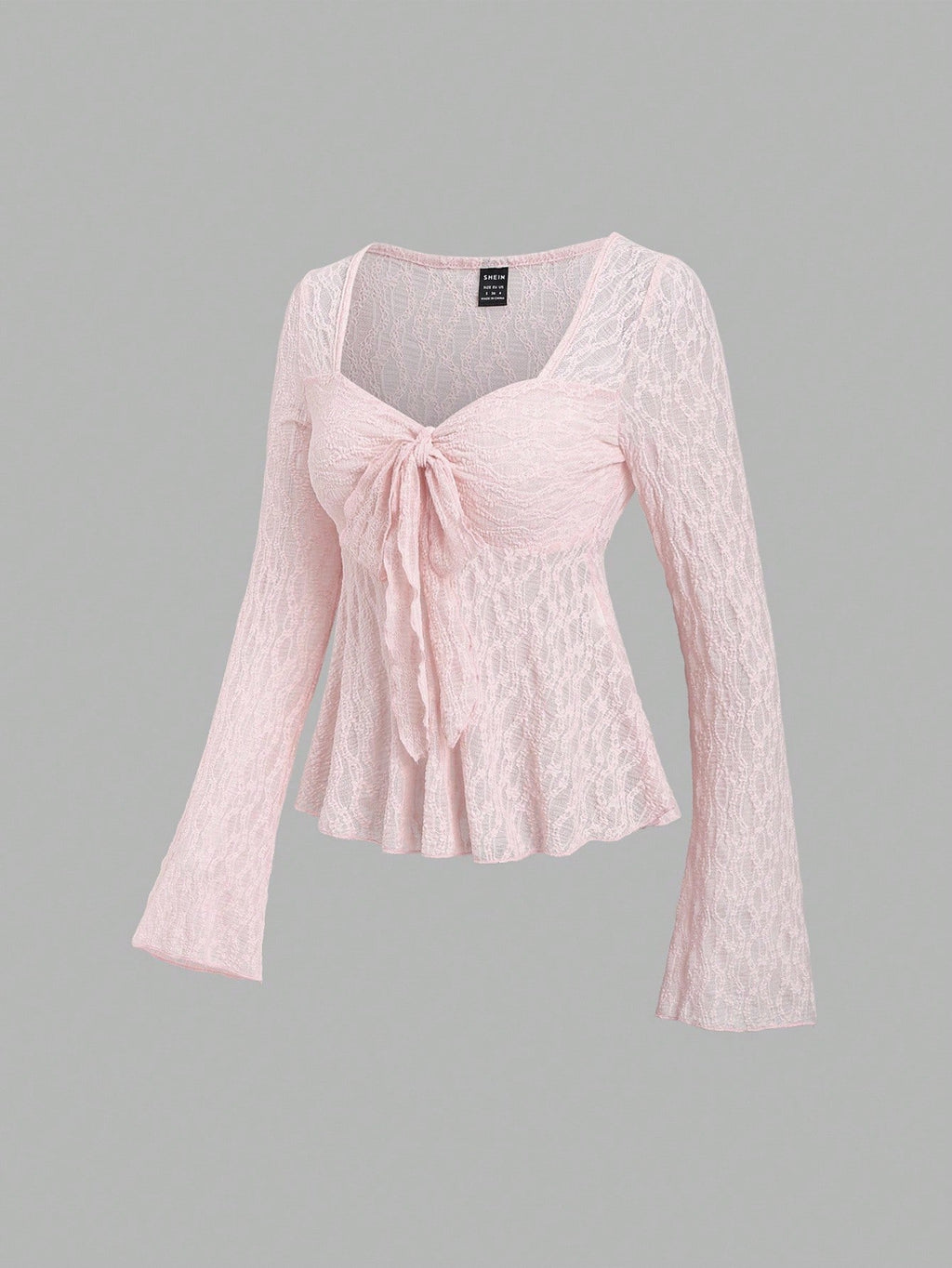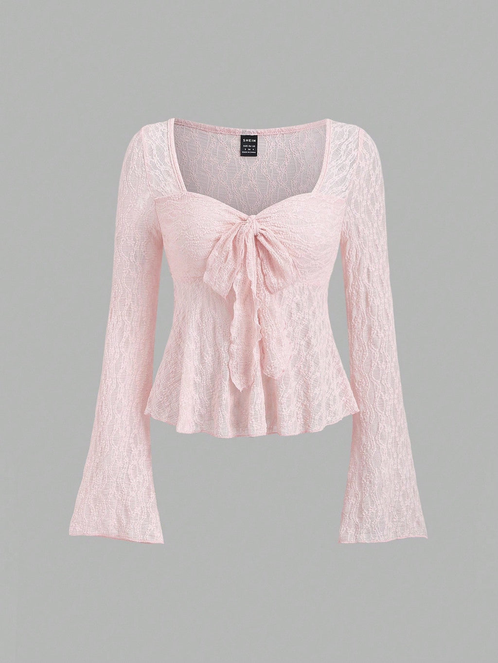 Sweetra Y2K Bowknot Textured Flare Sleeve Top Fall Cloth For Women