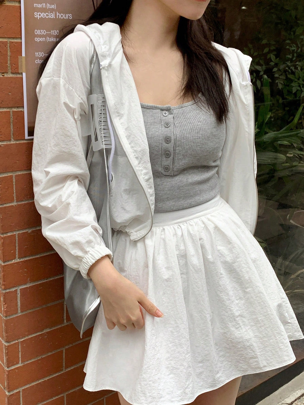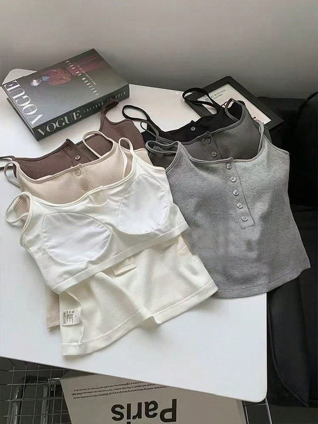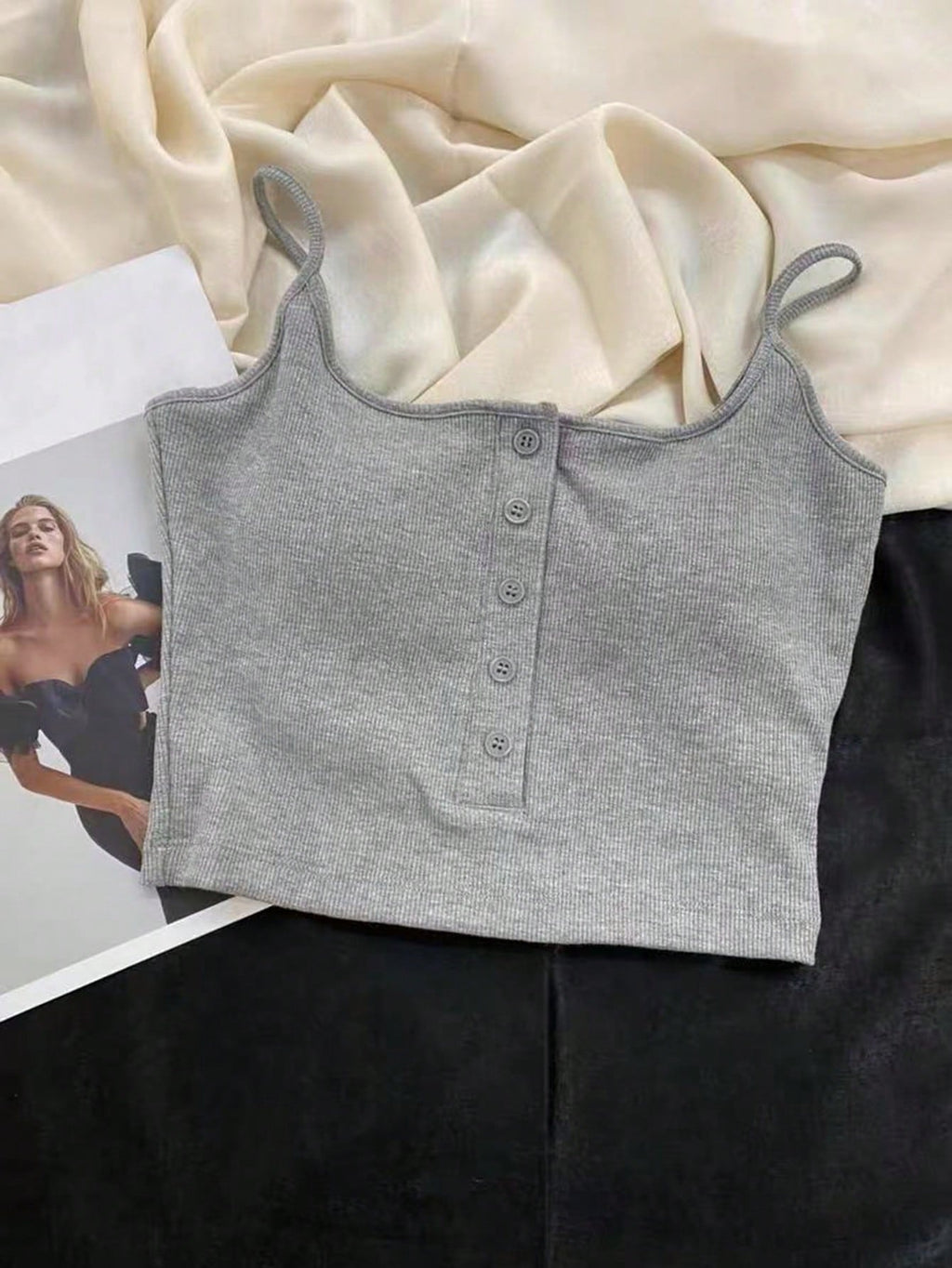Vera Lane ženski Y2K inspirisan top od rebraste pletenine s kaišem i dugmadima — spoj minimalističkog, “old money”, korejskog i akademskog stila.