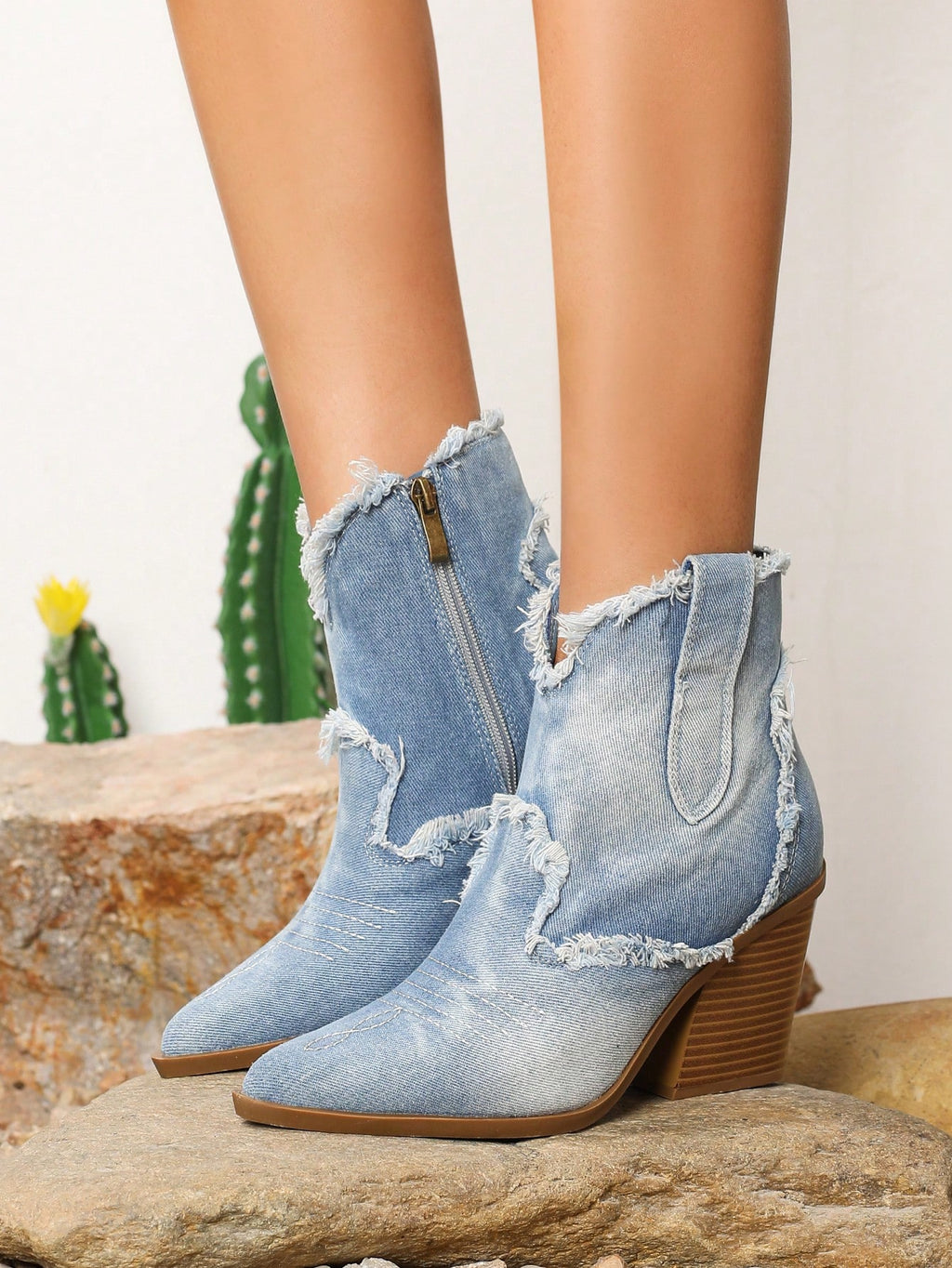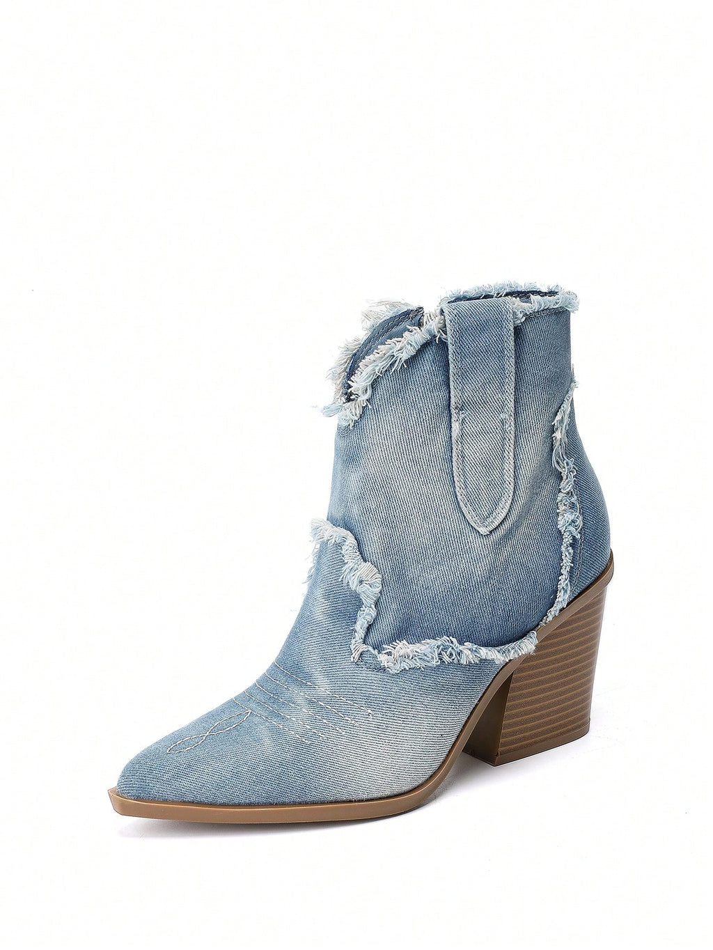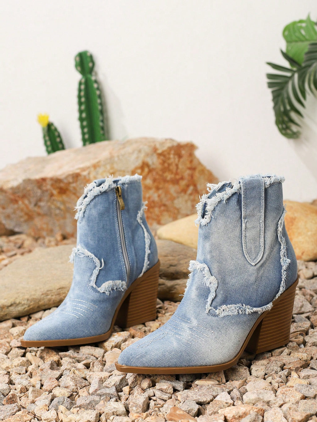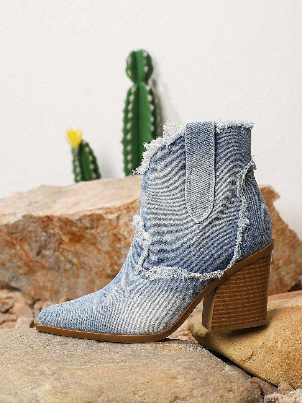 Vintage Čizme sa Uzorkom, 8cm Visoka Peta, Ženske Kratke Čizme u Zapadnom Stilu