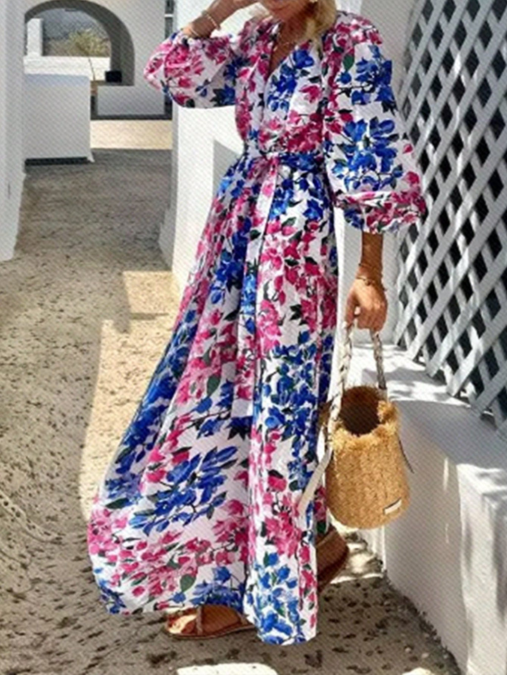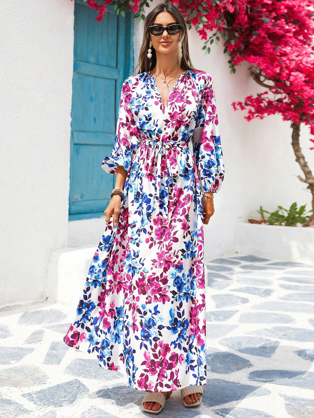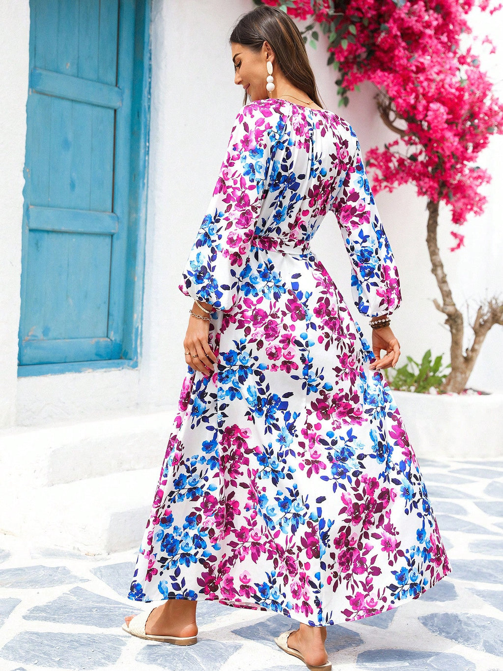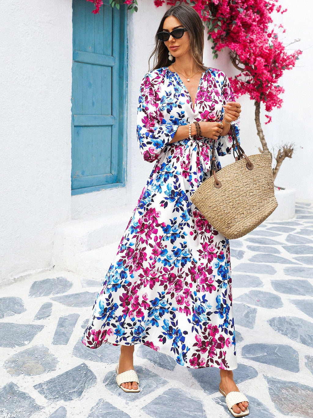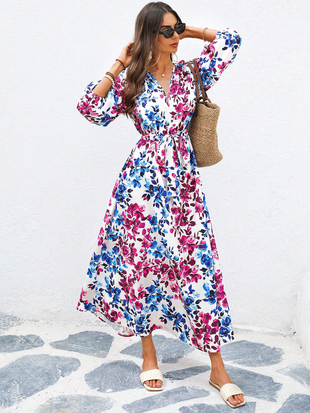 BELLAVOG Women's Long Colorful Floral Print Dress, Suitable For Spring