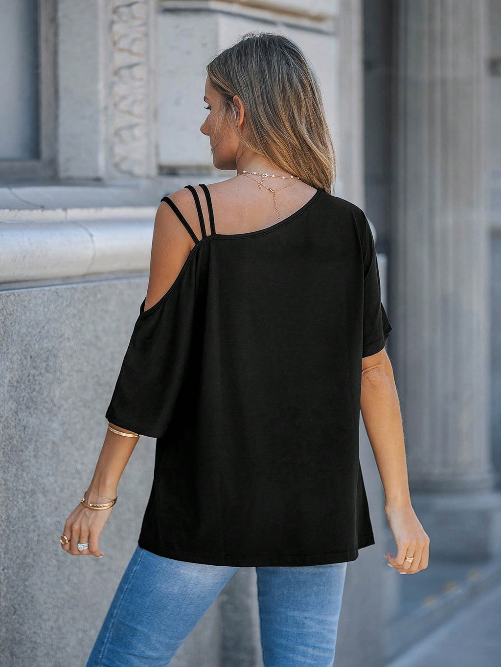 BELLAVOG Wildy Asymmetrical Neck Cold Shoulder Tee
