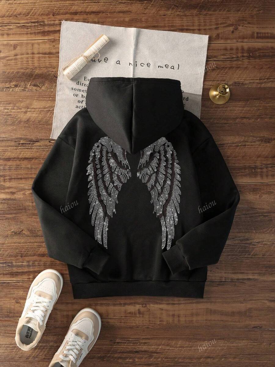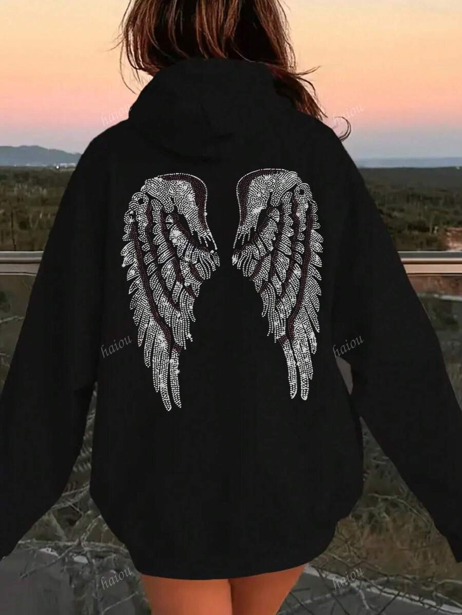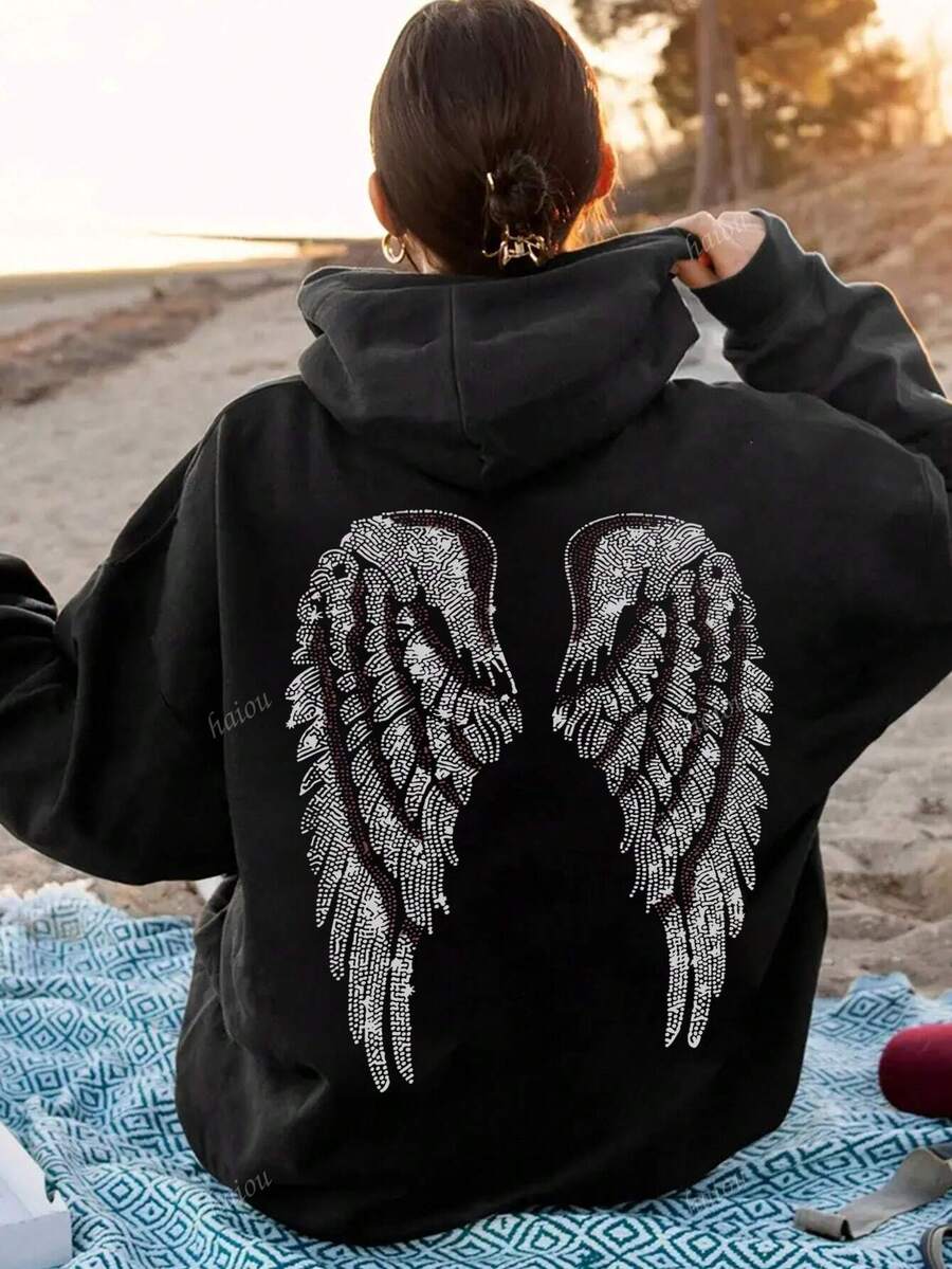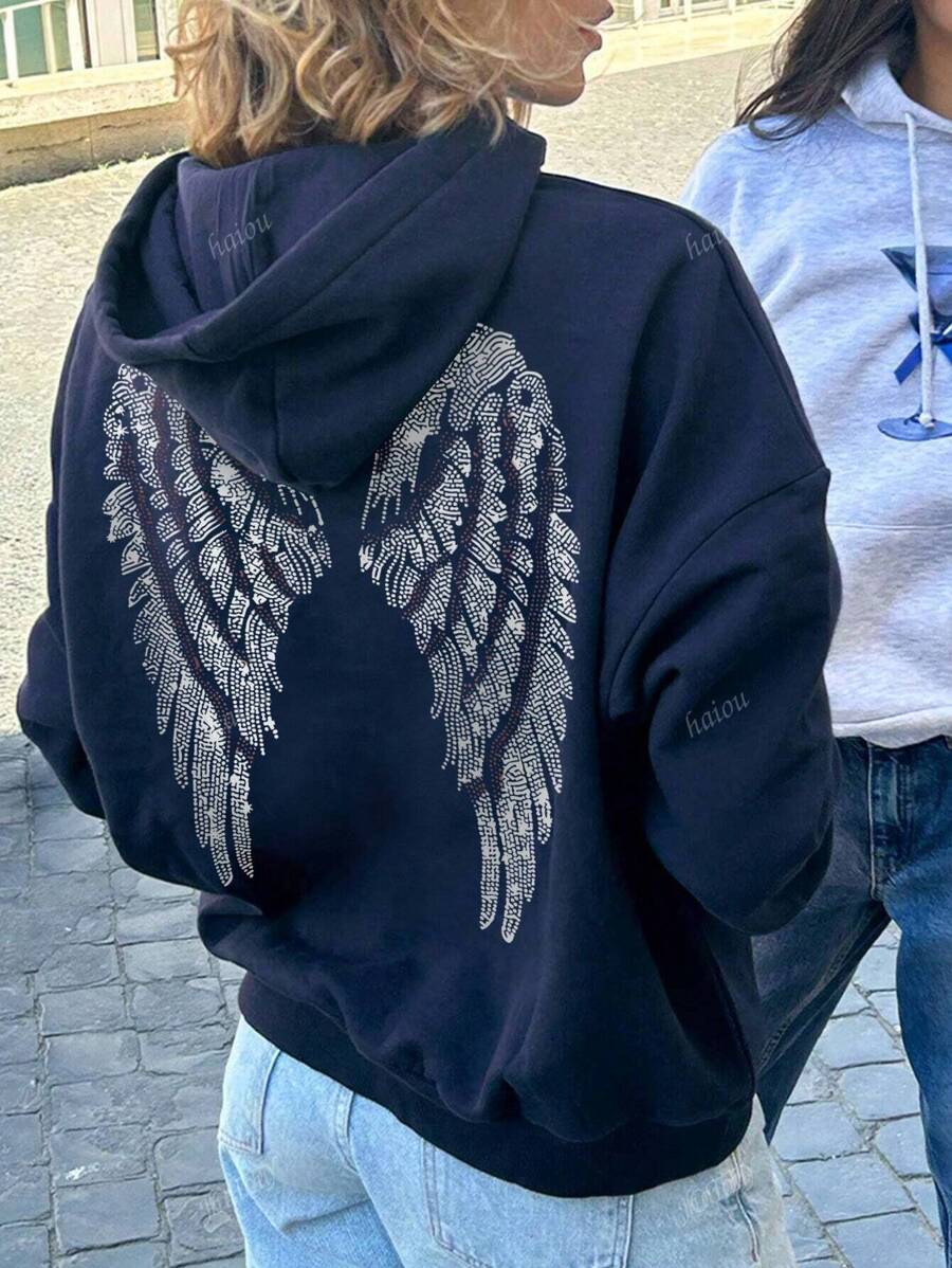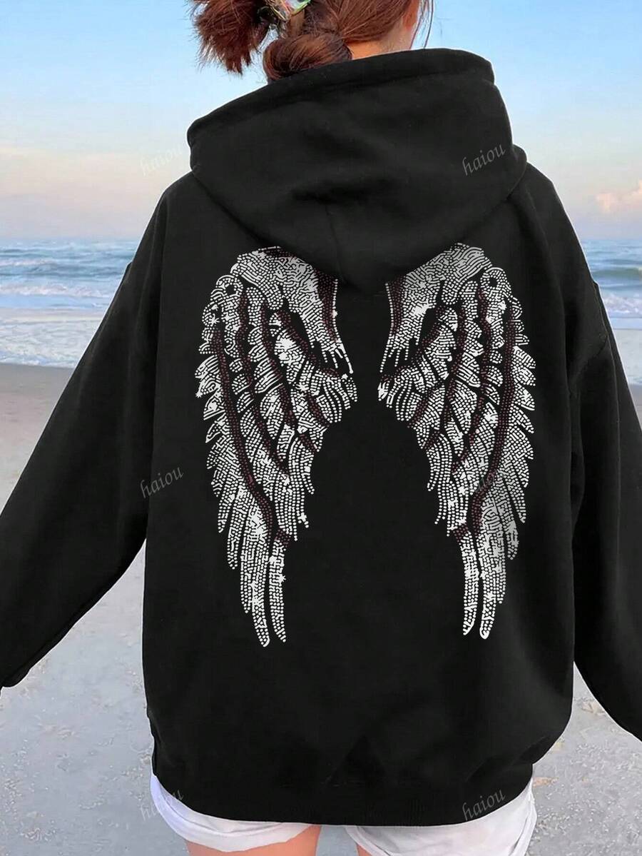 Women's Casual Graphic Print Pullover Thermal Lined Hoodie, Loose Fit Long Sleeve Winter Sweatshirt