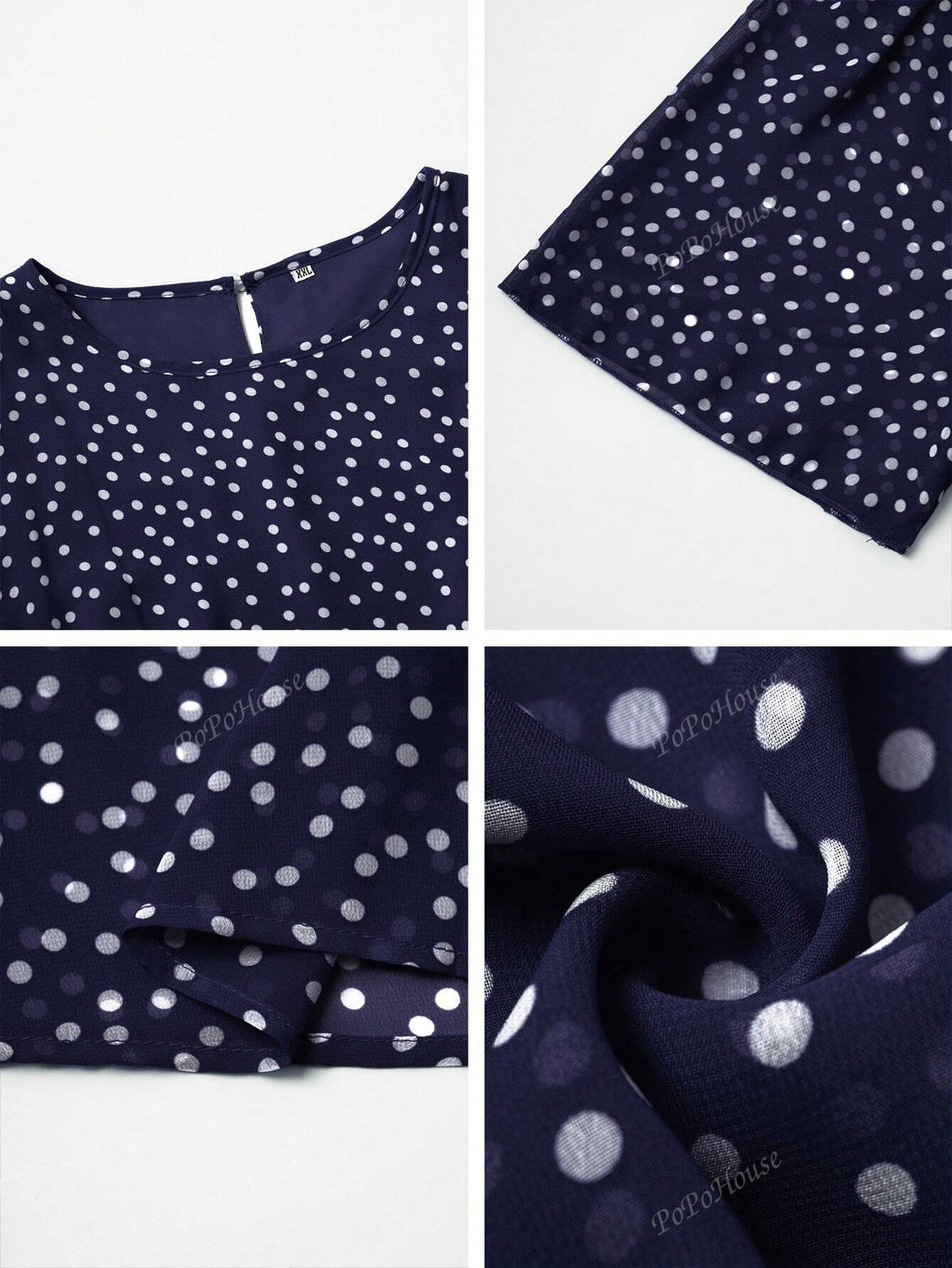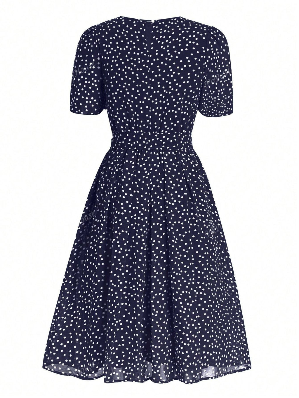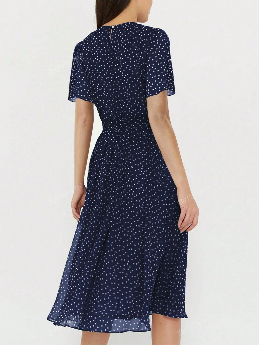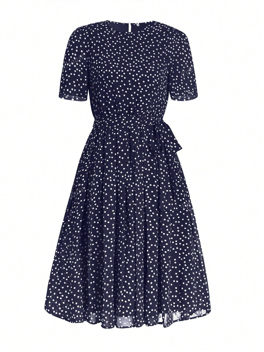BELLAVOG Women's Round Neck Polka Dot Print Short Sleeve Elegant Dress