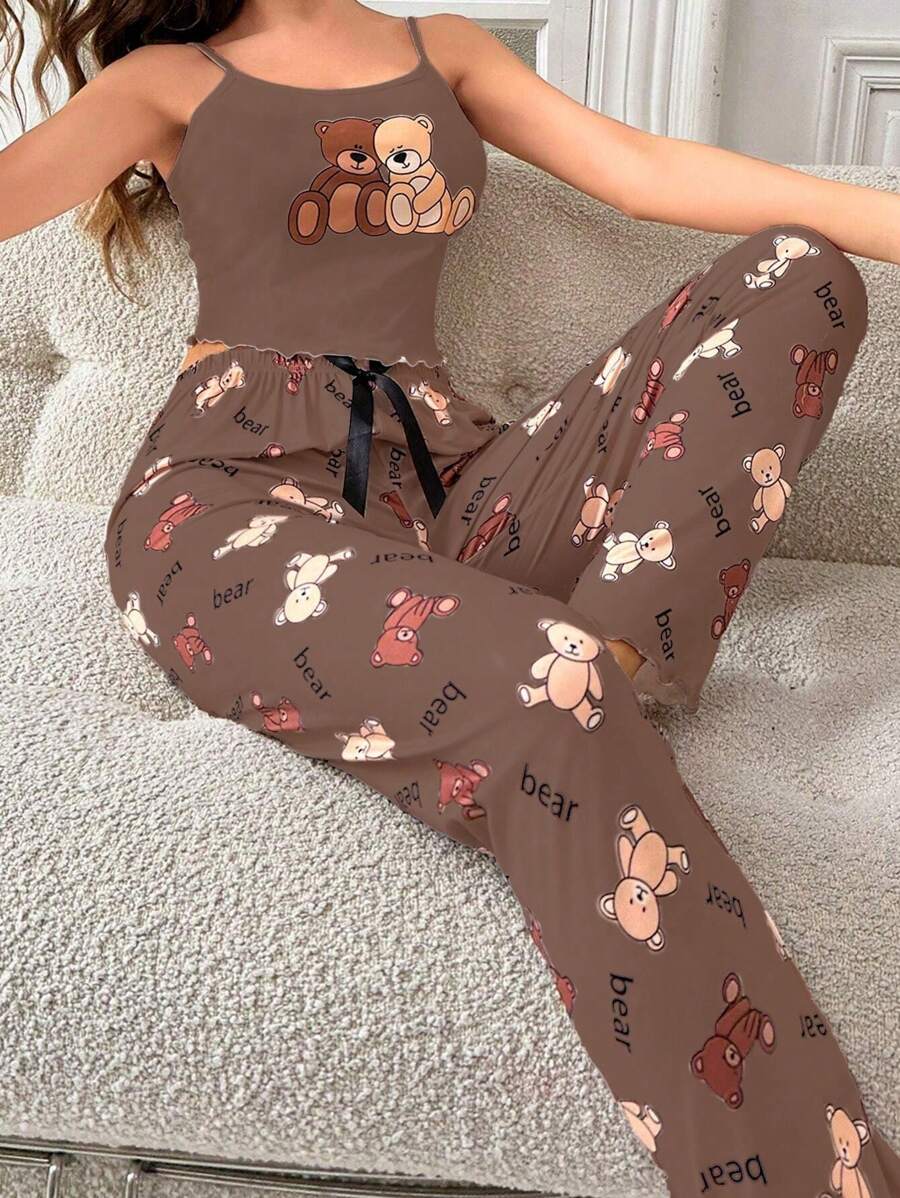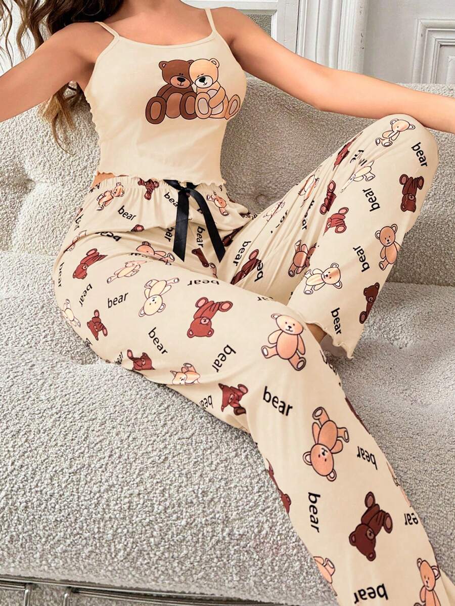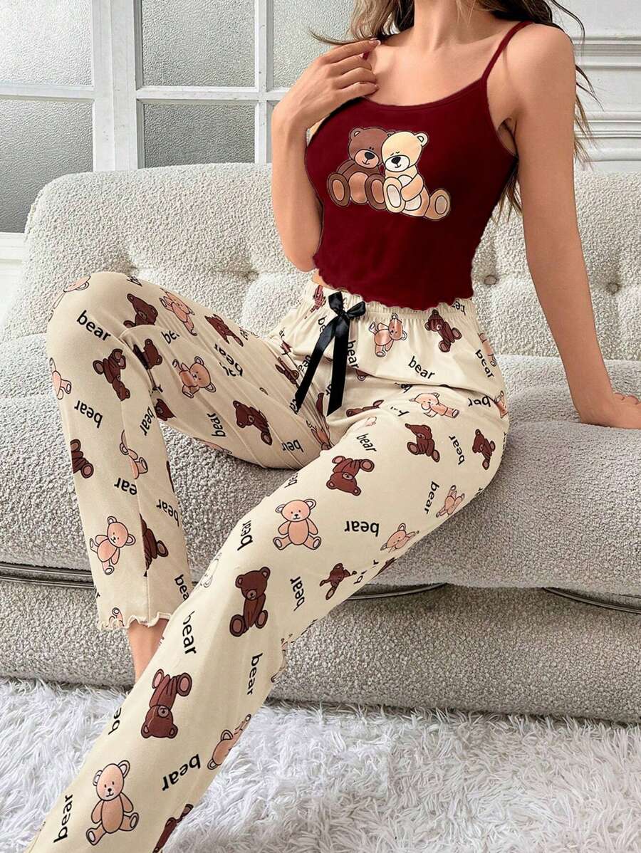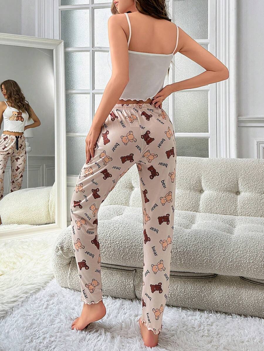 Ženska bijela kamisela s mašnom sa tankim trakama i dugim hlačama za kućne pidžame