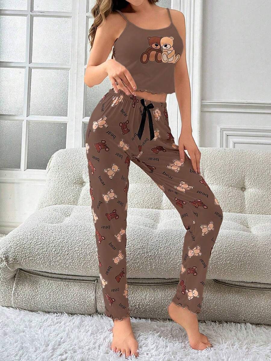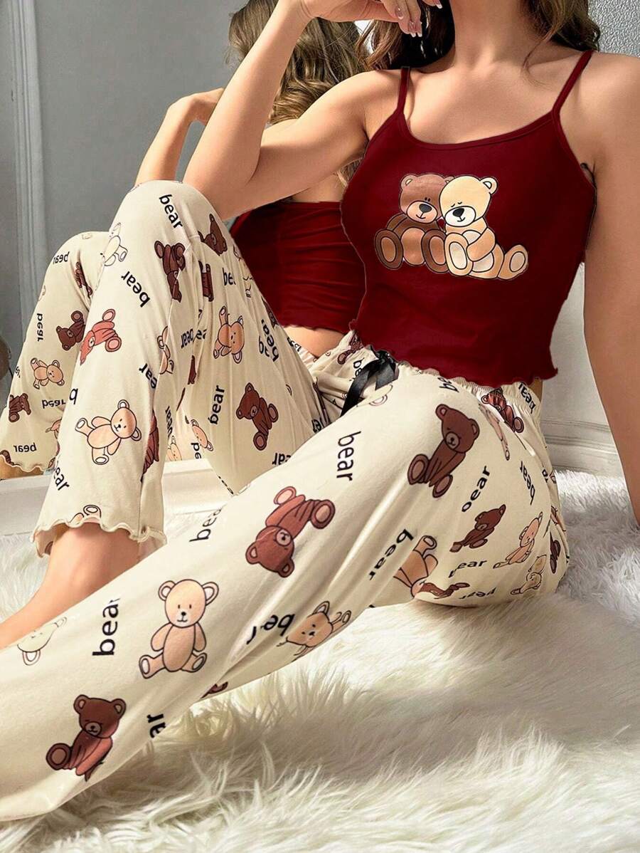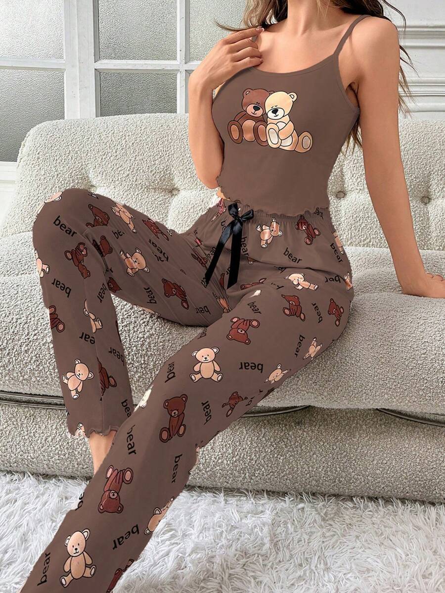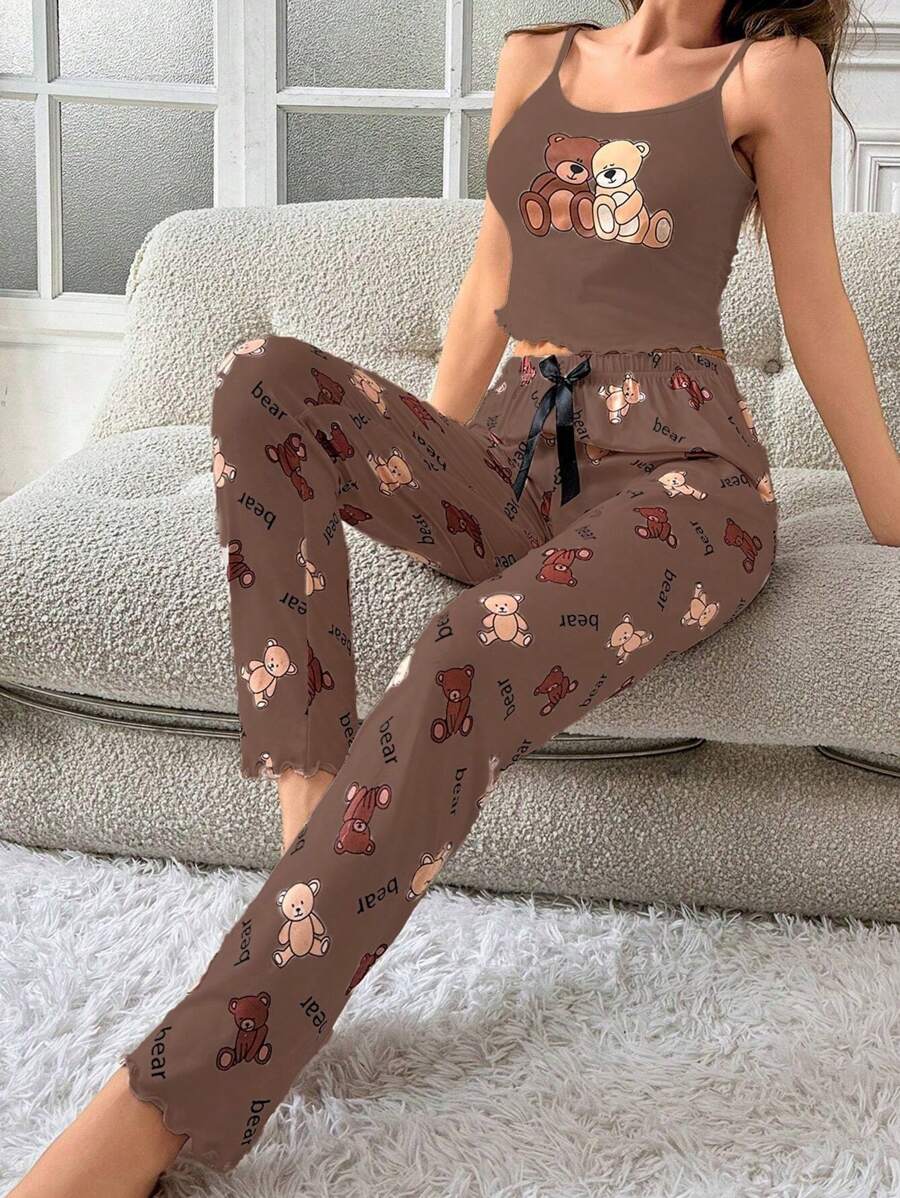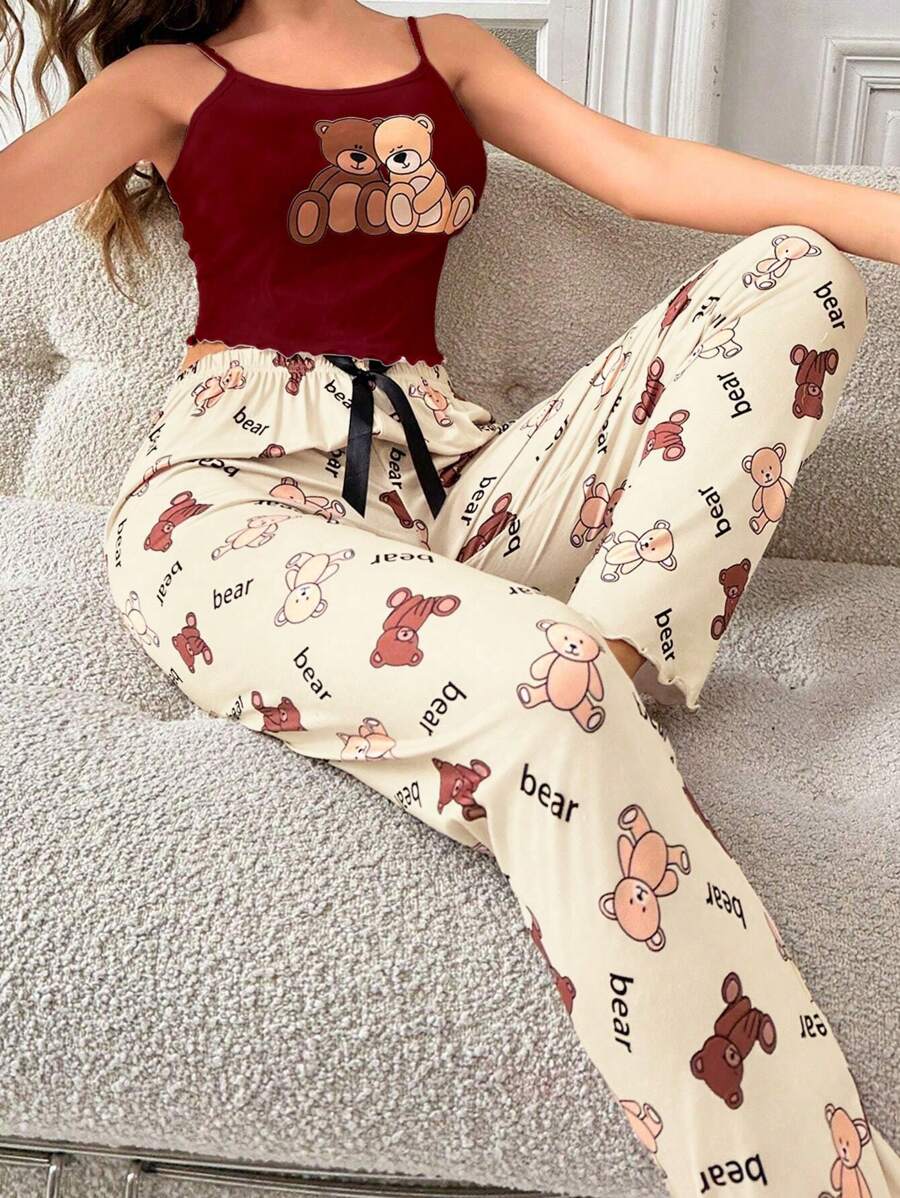 Ženska bijela kamisela s mašnom sa tankim trakama i dugim hlačama za kućne pidžame