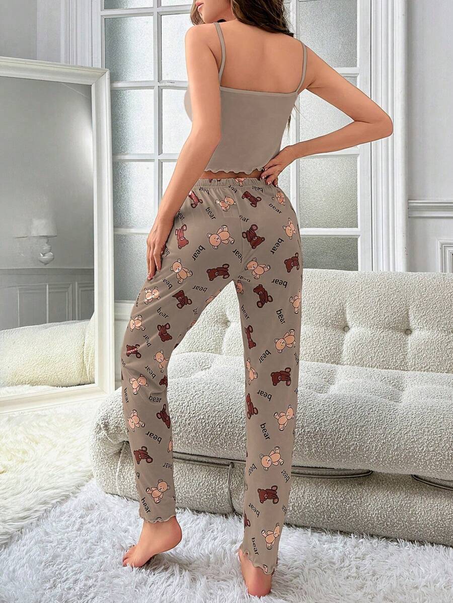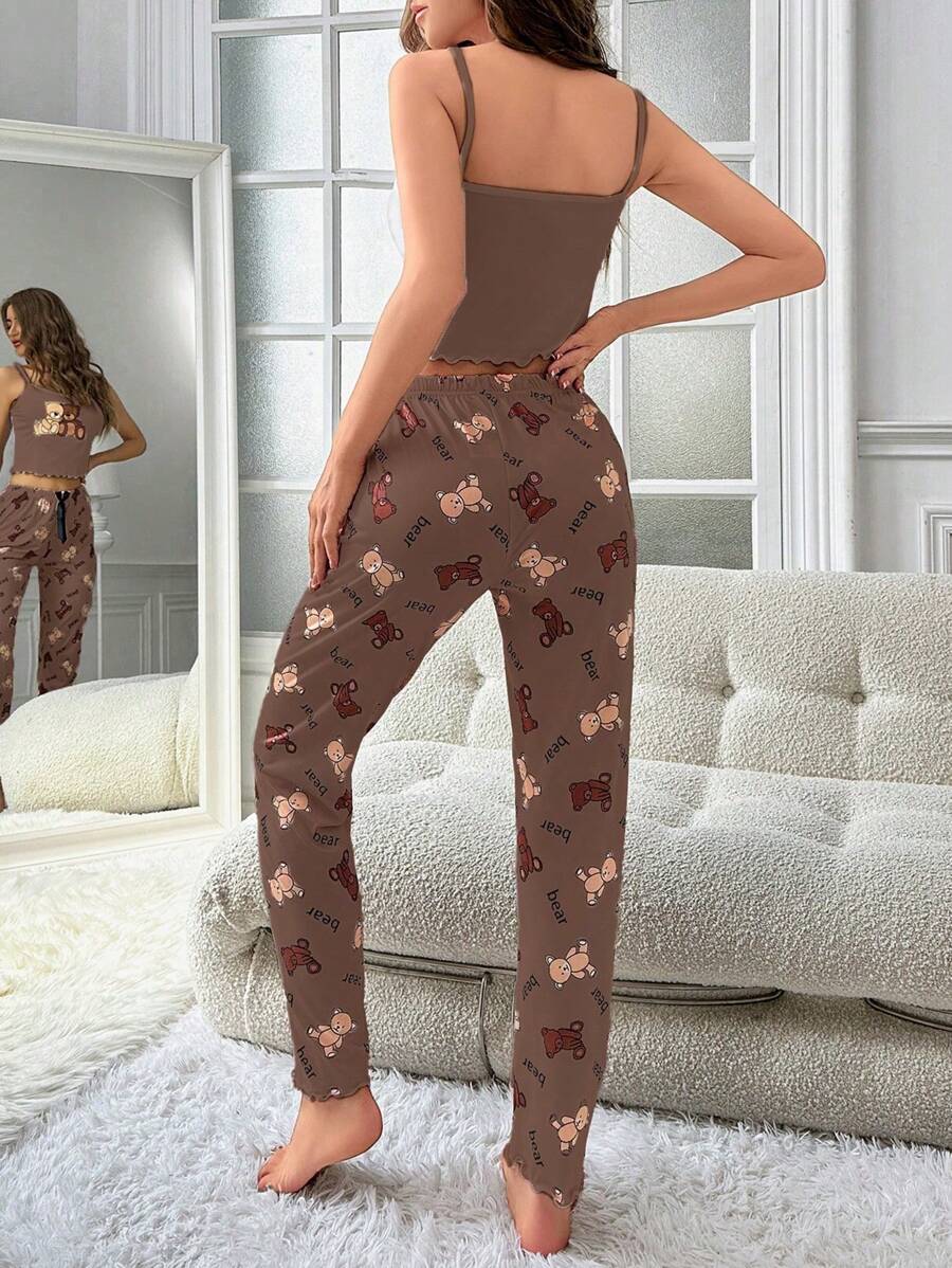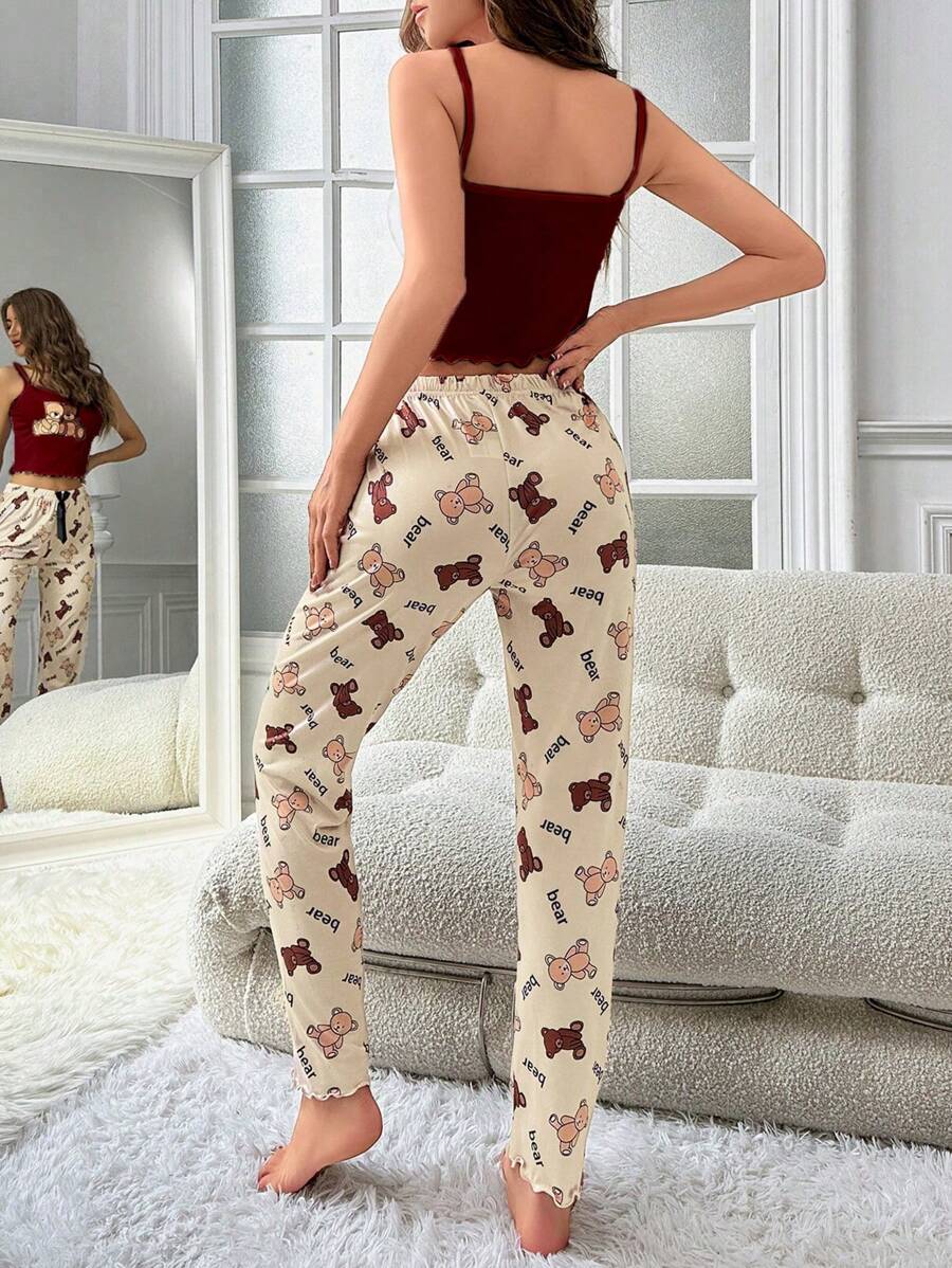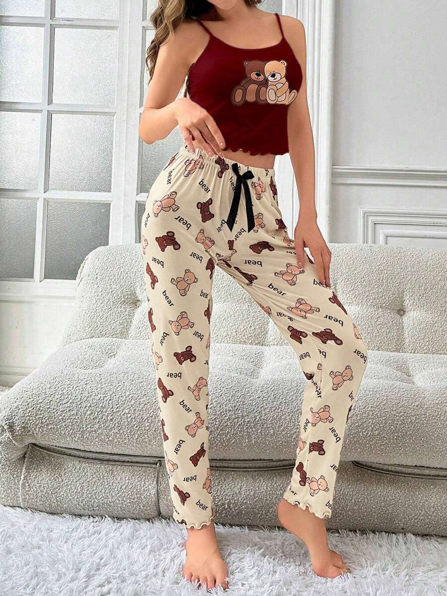 Ženska bijela kamisela s mašnom sa tankim trakama i dugim hlačama za kućne pidžame