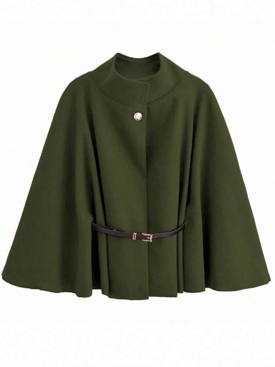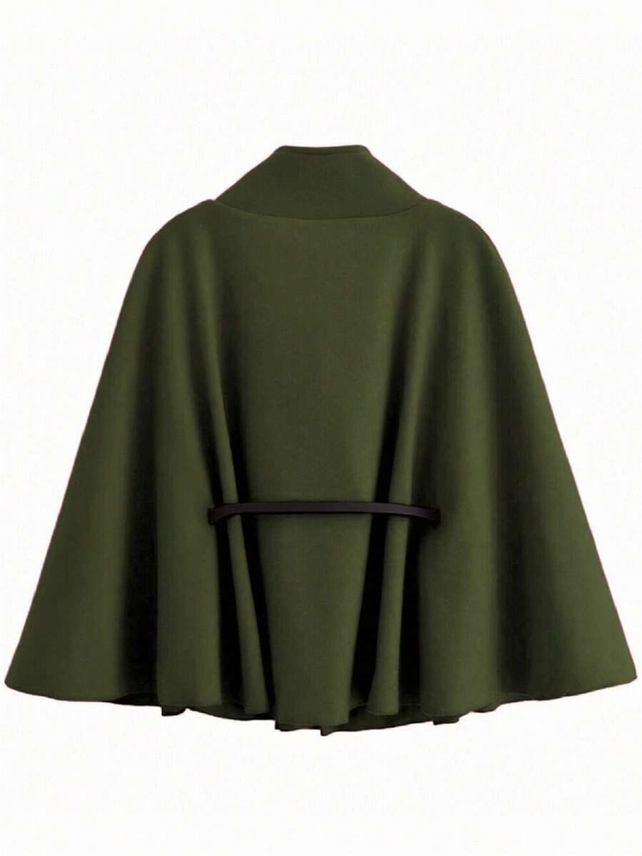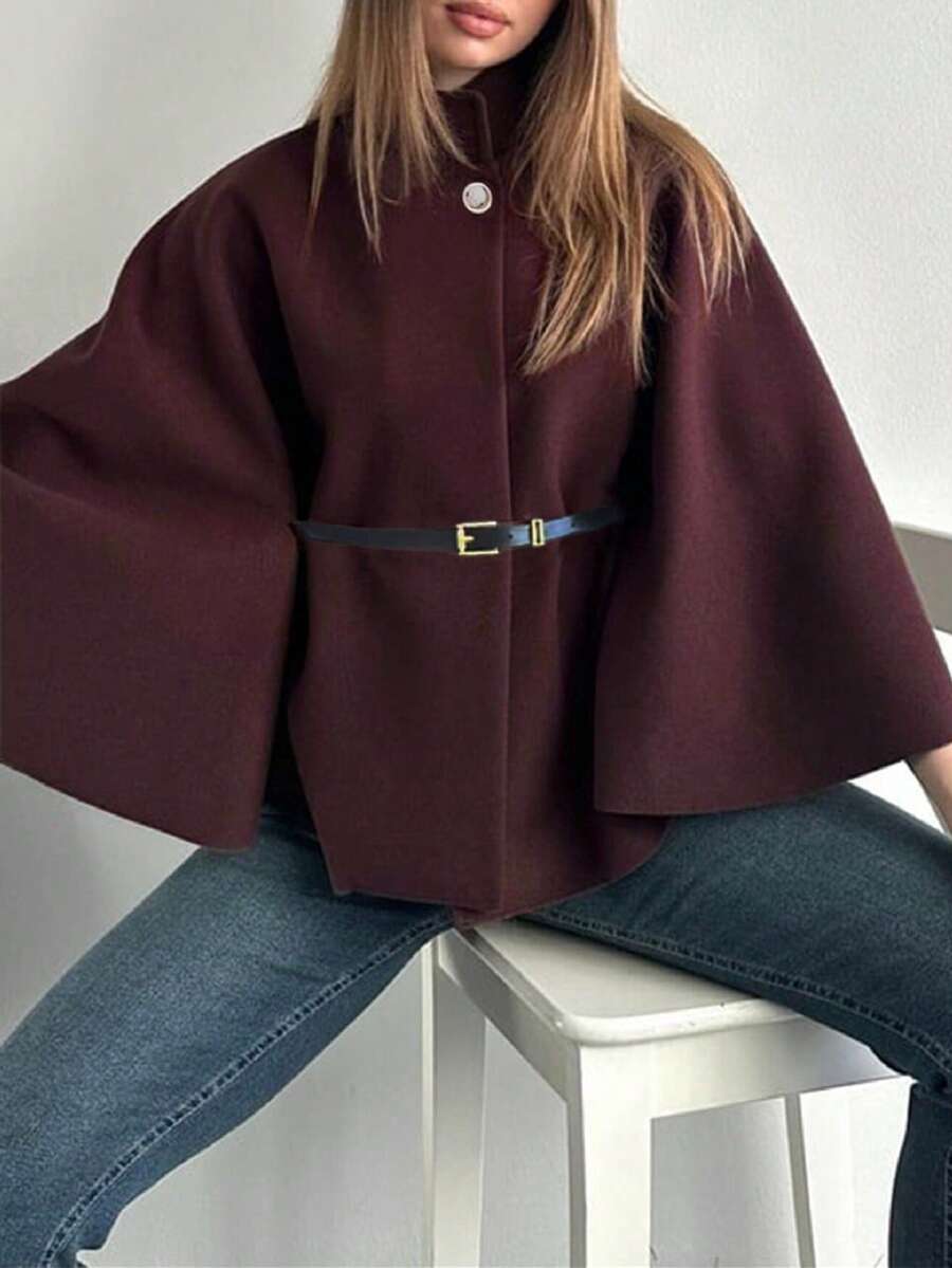 Ženska moda elegantna kratka rukava stajaća ovratnik labava pončo plašt kaput s remenom, zima