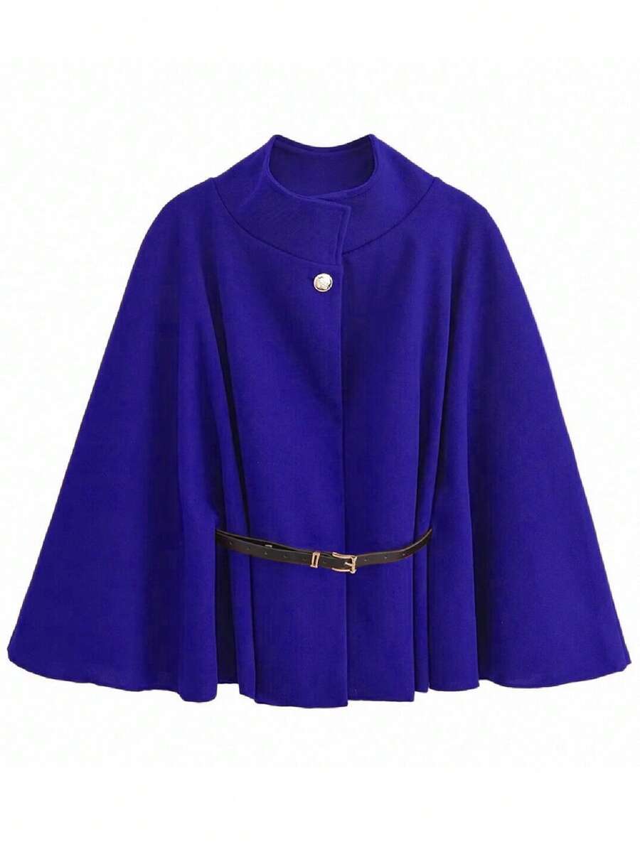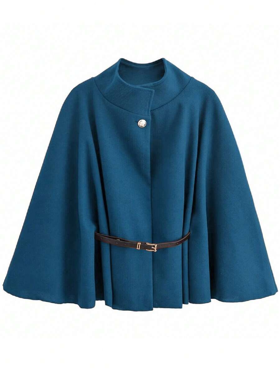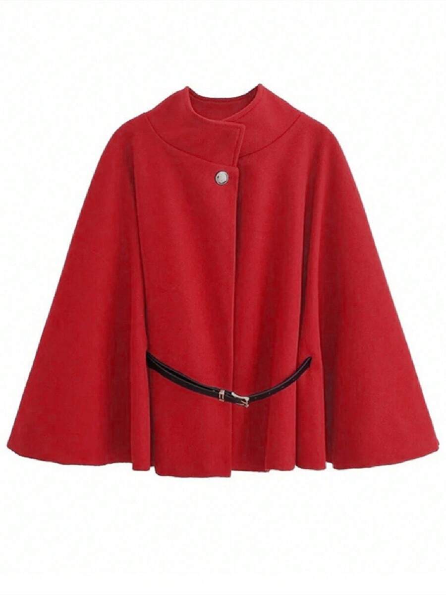 Ženska moda elegantna kratka rukava stajaća ovratnik labava pončo plašt kaput s remenom, zima