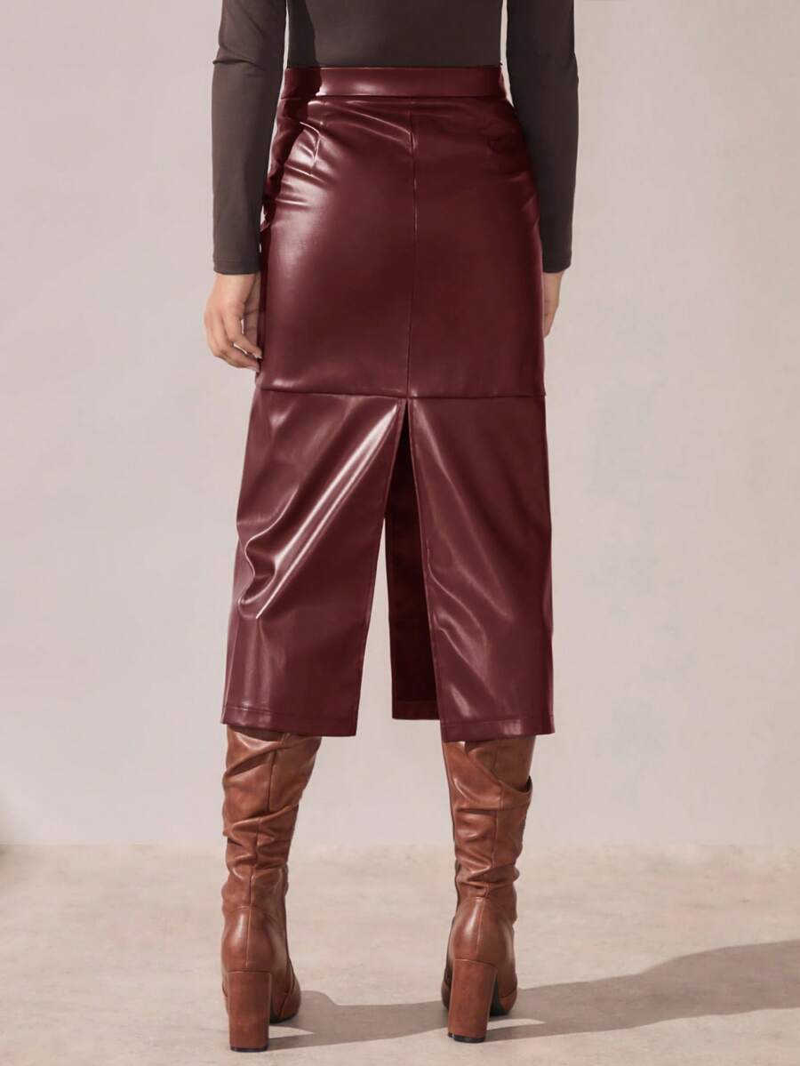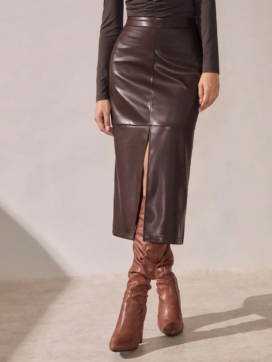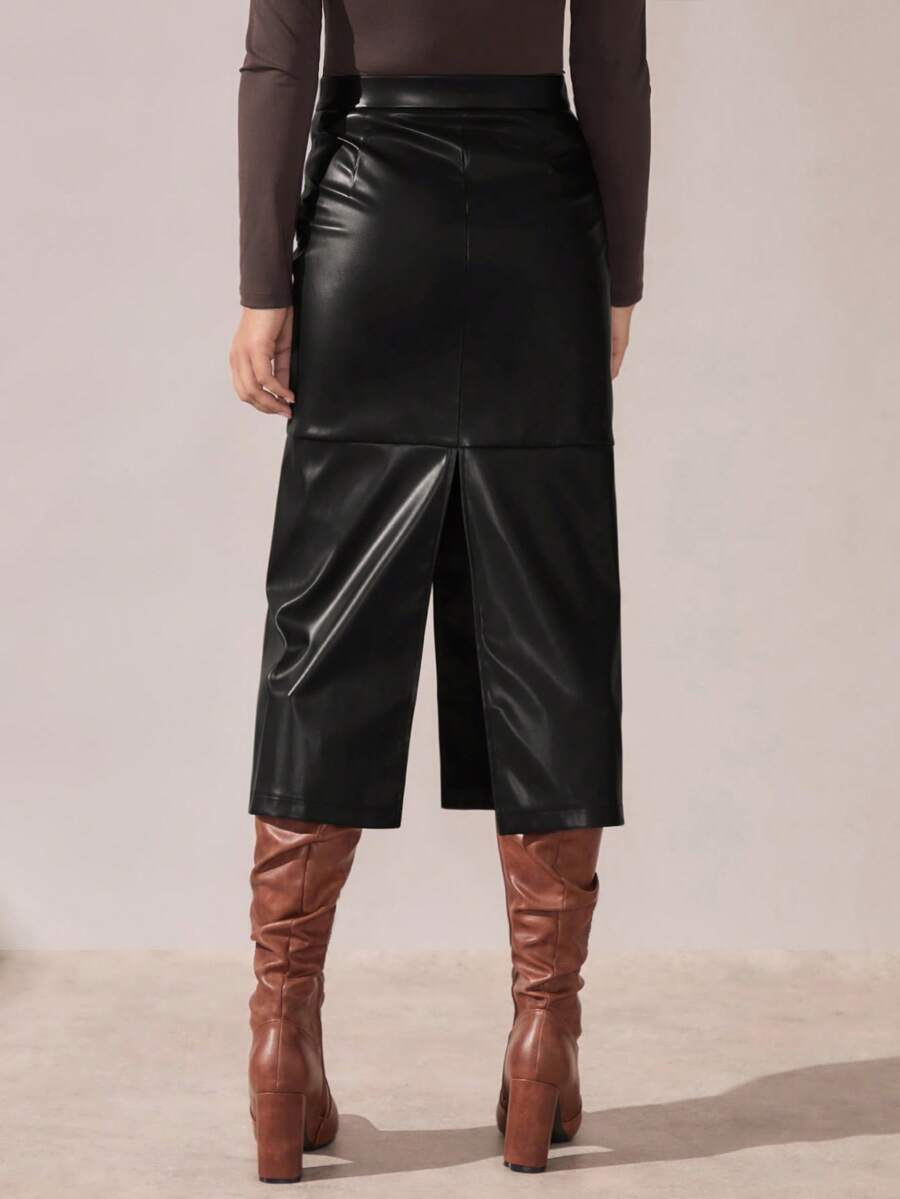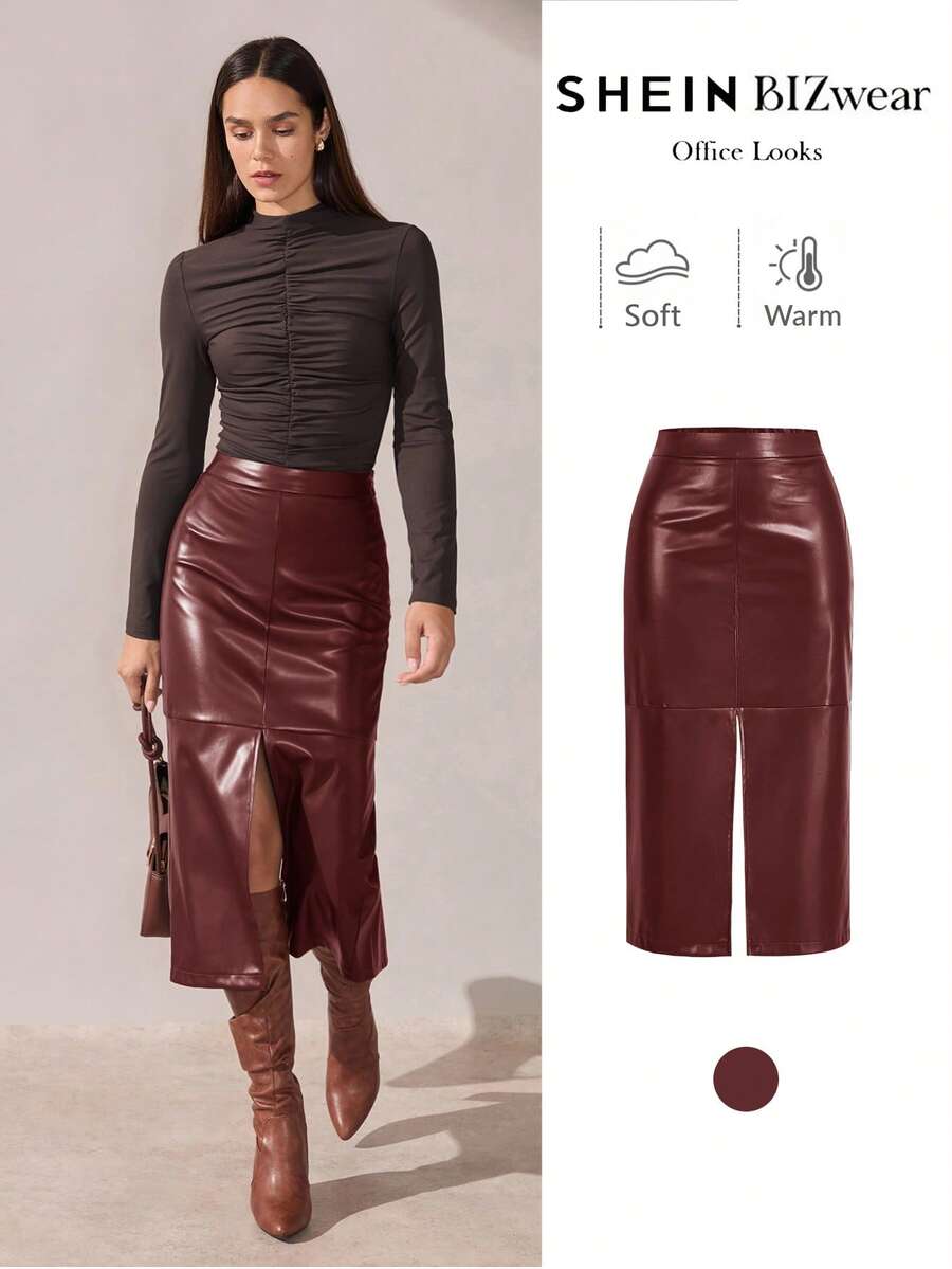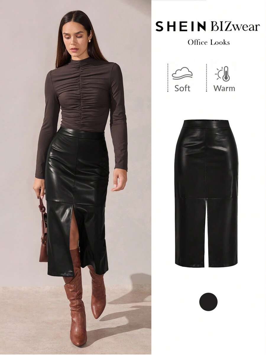 Ženska suknja s visokim prorezom, Urban commuting poslovna ležerna odjeća za ured, Elegantan ženski formalni outfit