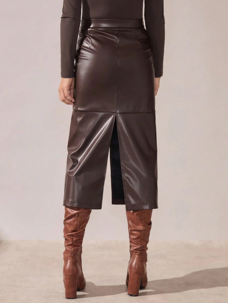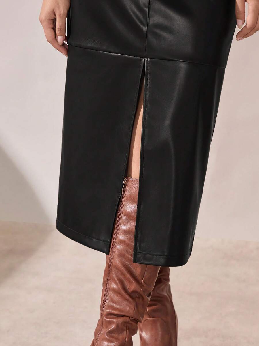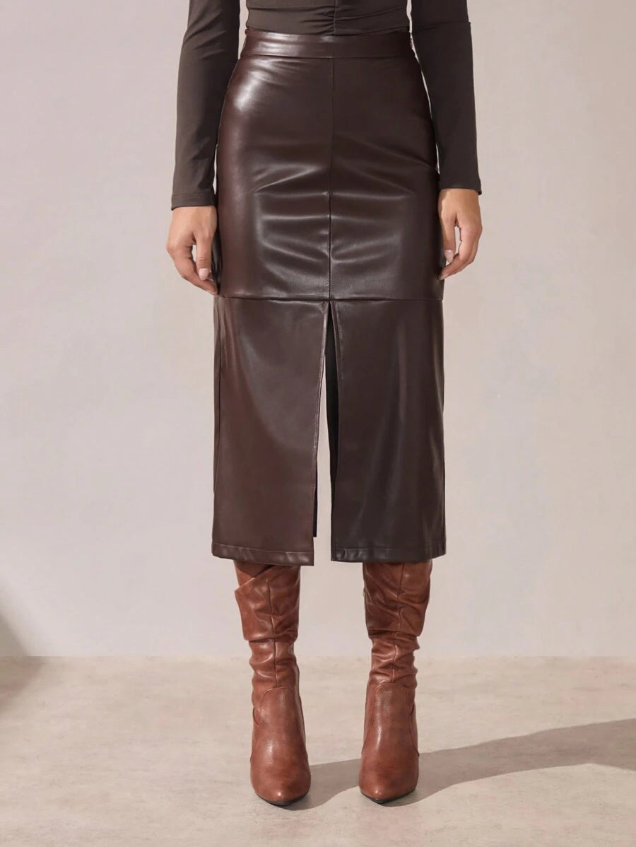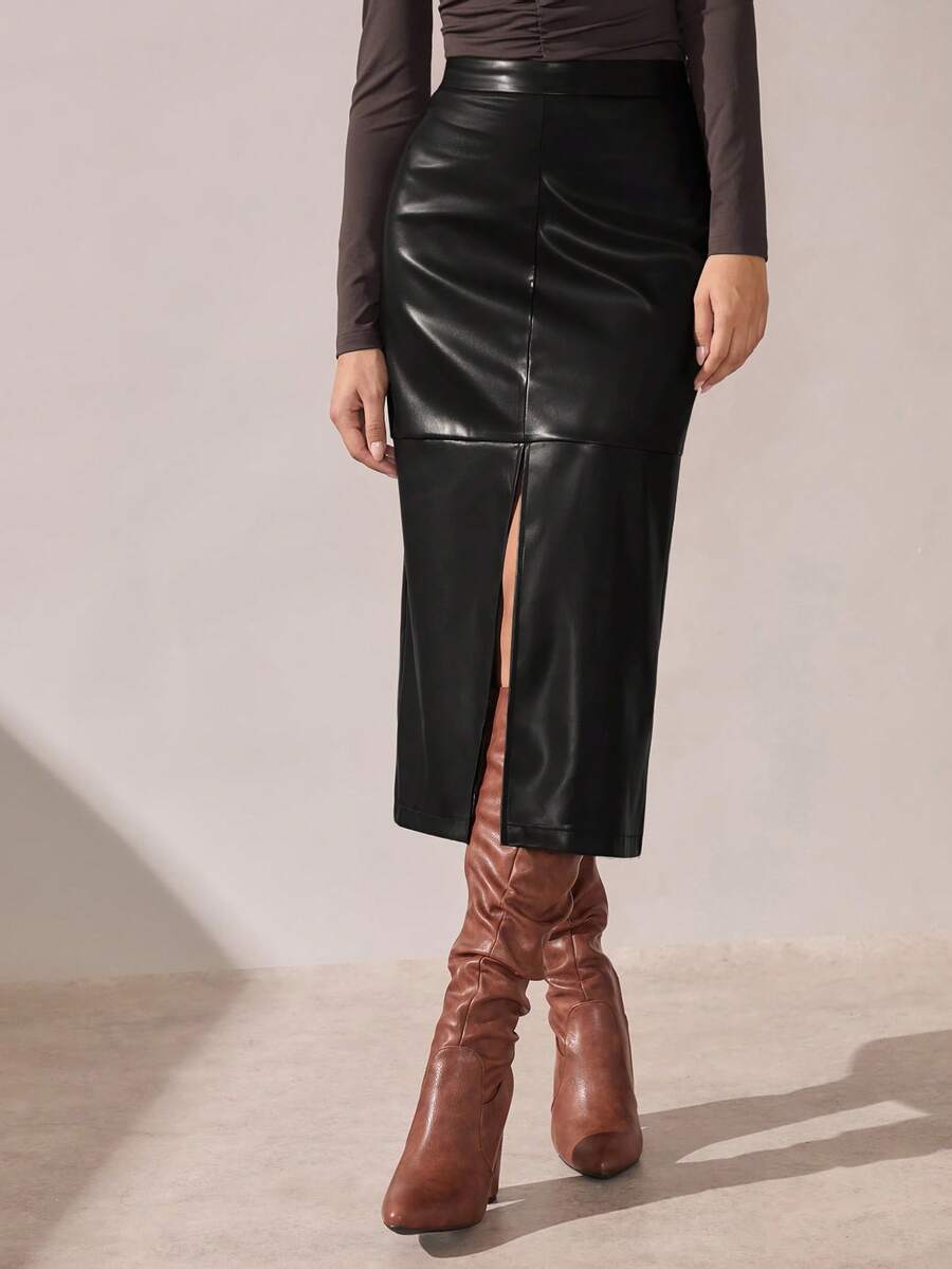 Ženska suknja s visokim prorezom, Urban commuting poslovna ležerna odjeća za ured, Elegantan ženski formalni outfit