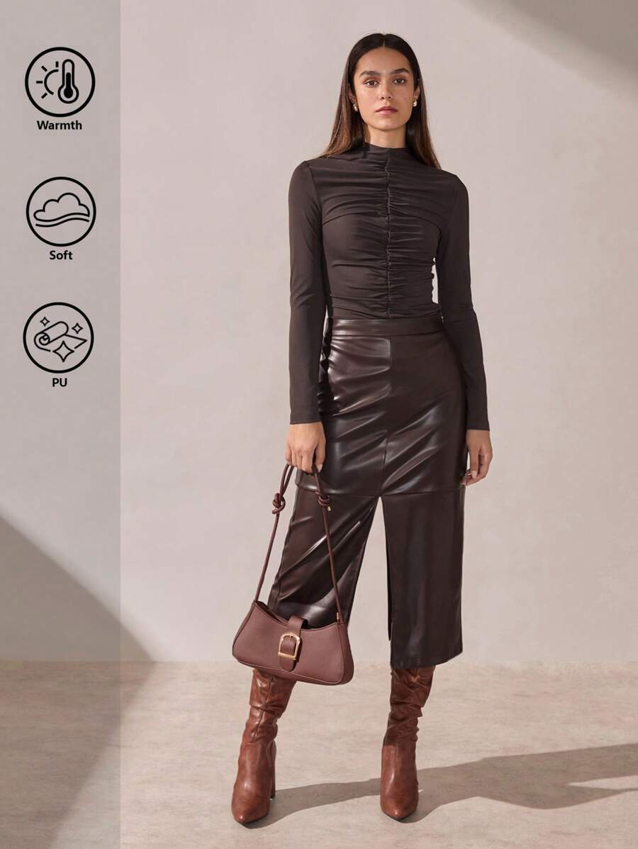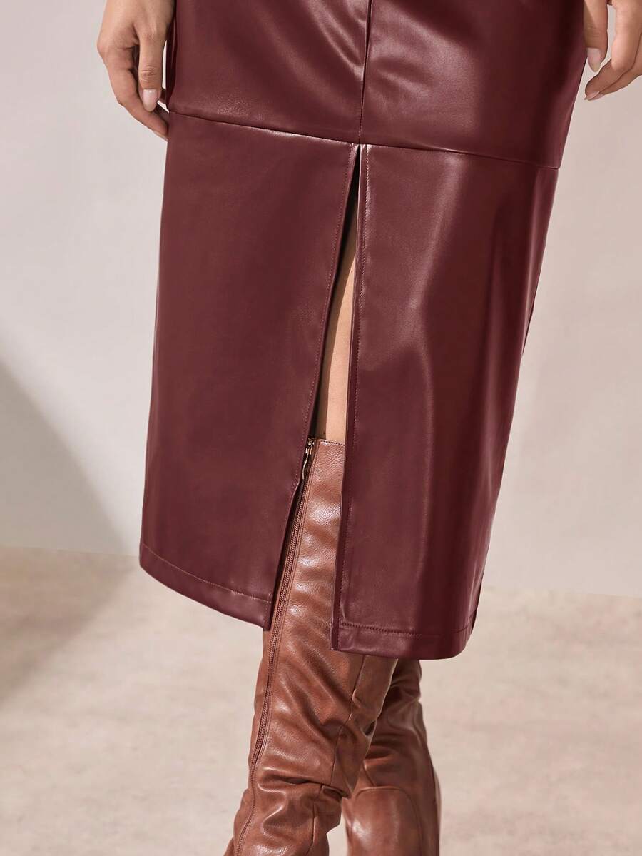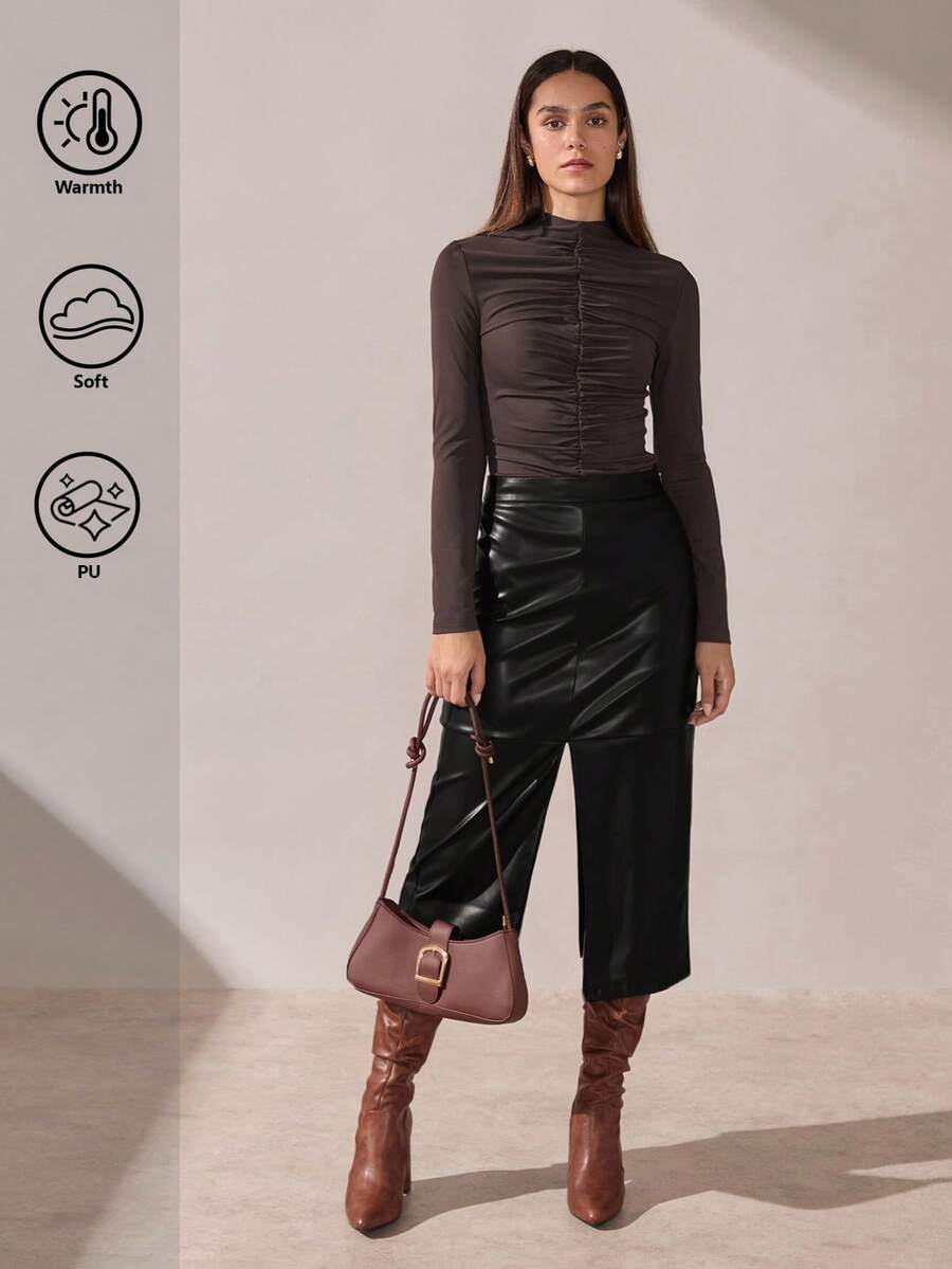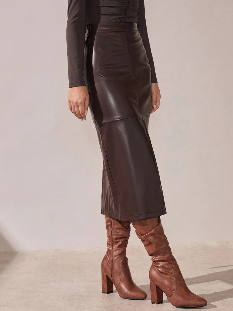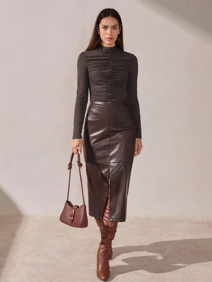 Ženska suknja s visokim prorezom, Urban commuting poslovna ležerna odjeća za ured, Elegantan ženski formalni outfit