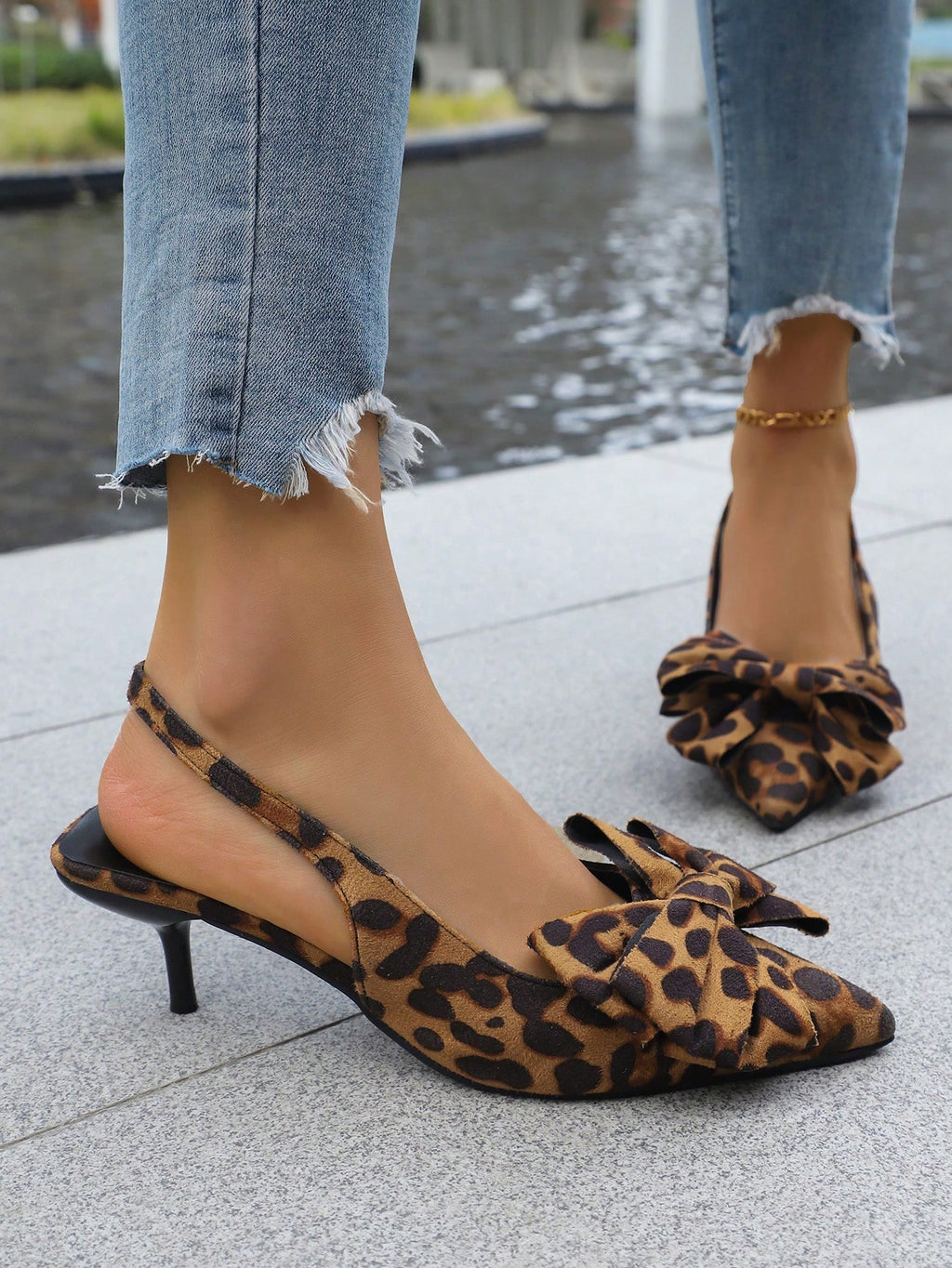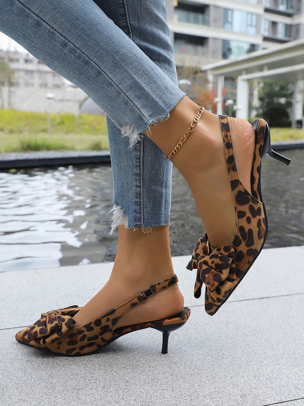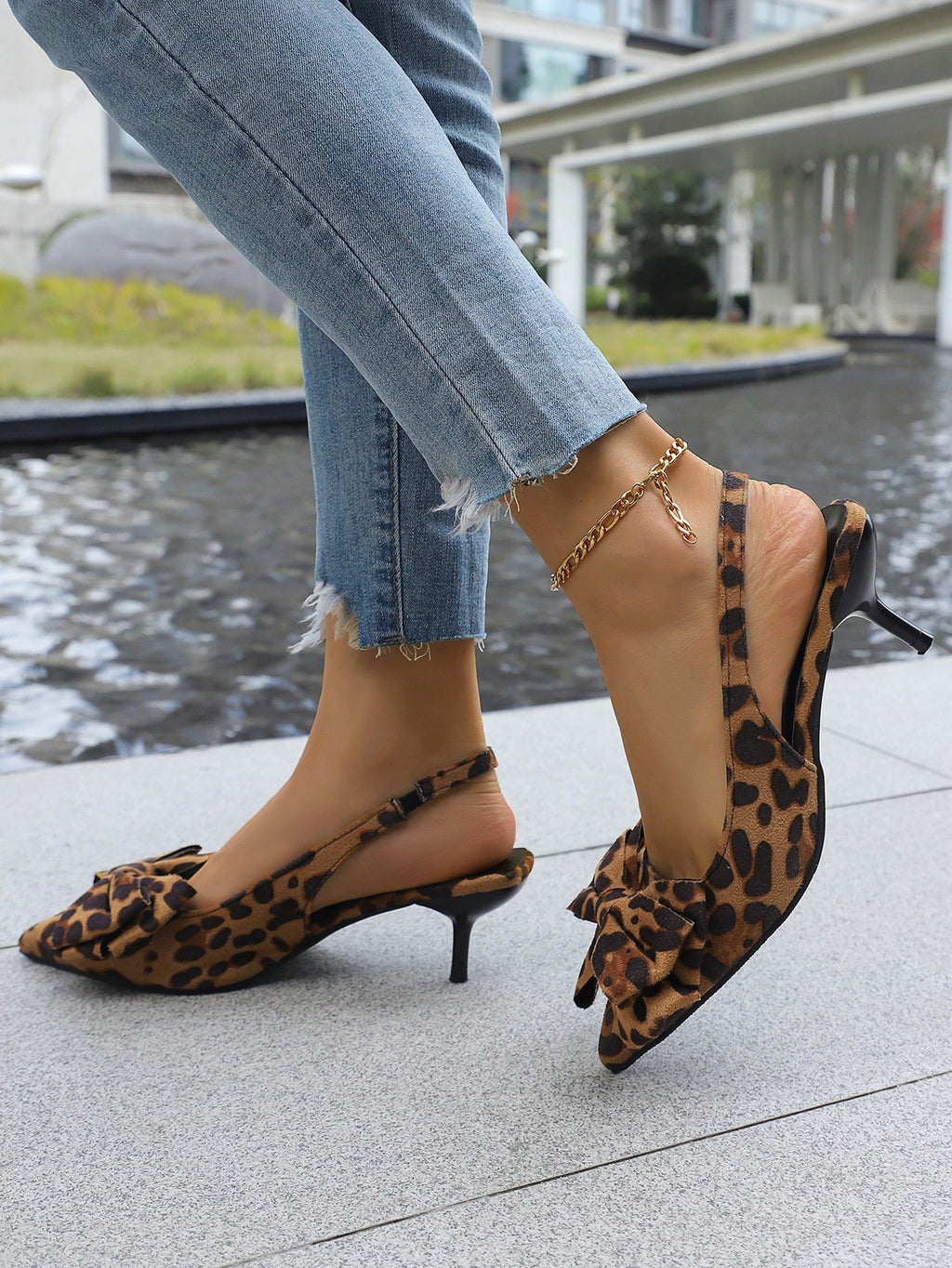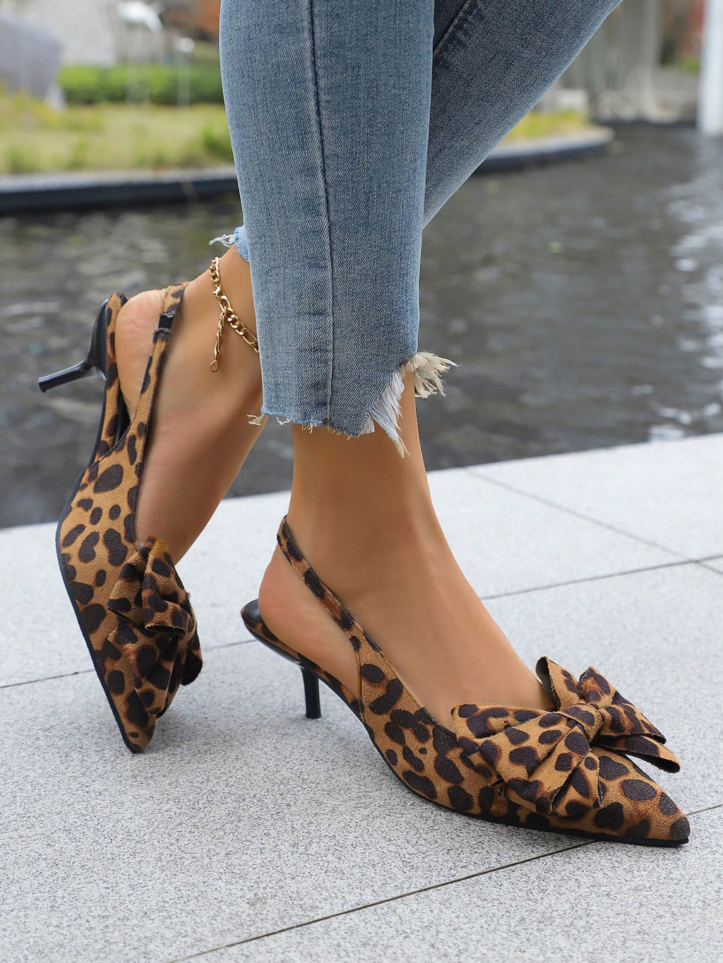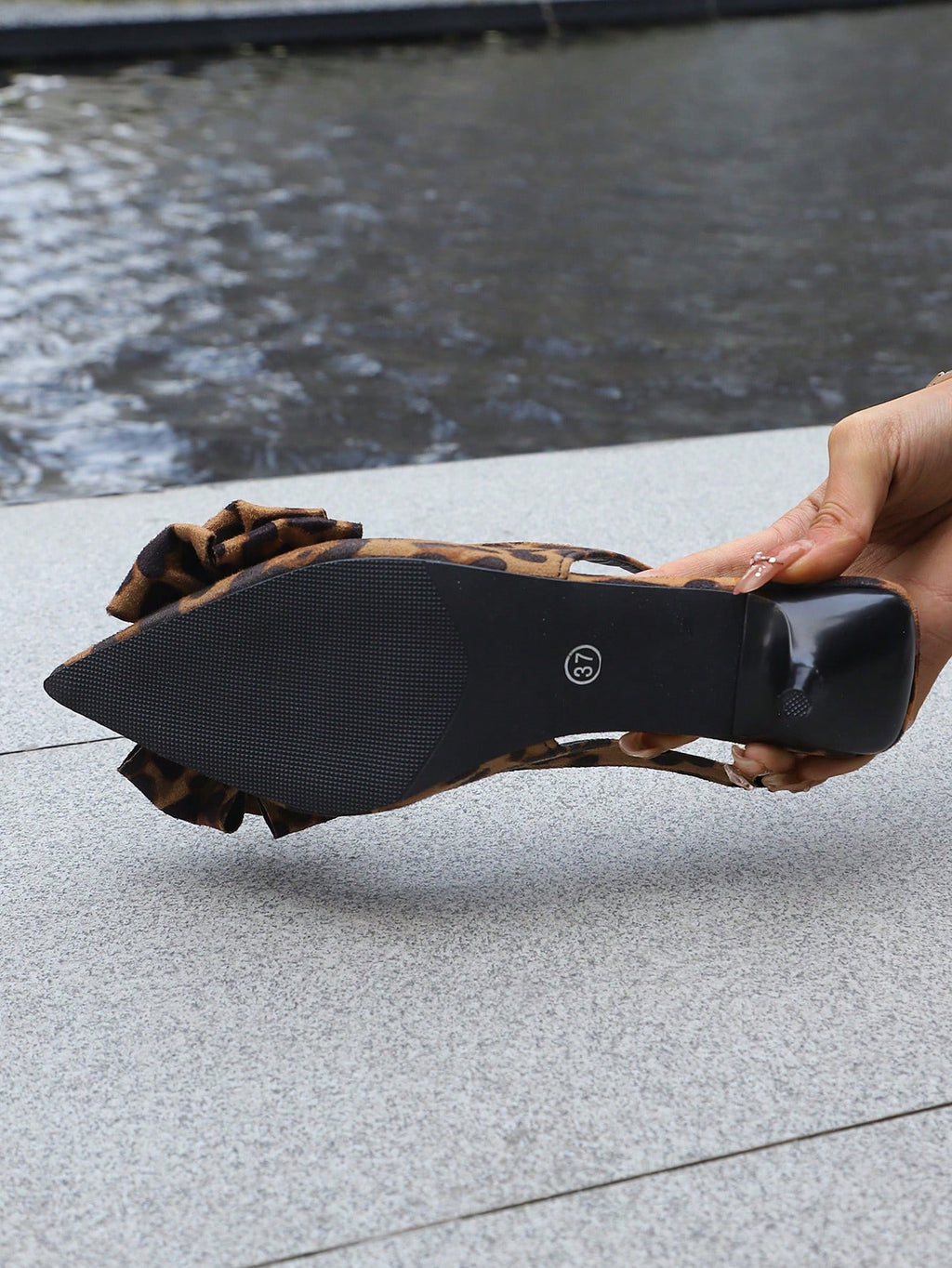 Ženske modne sandale sa zakovicama, leopard print, sa mašnom