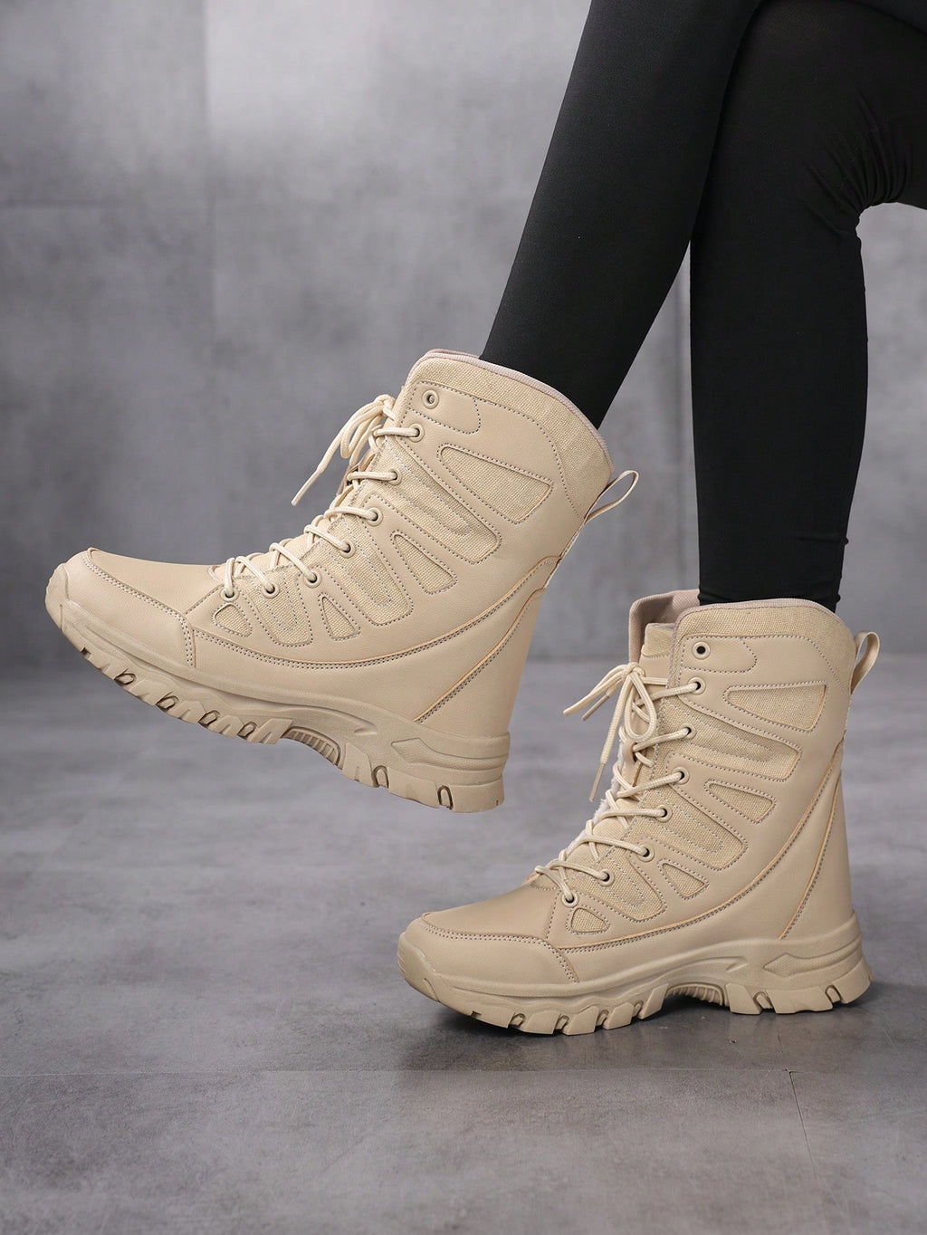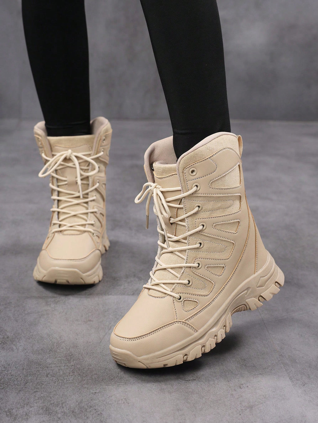 Ženske vanjske ležerne sportske čizme, čizme do članaka sa vezicama i patchwork dizajnom